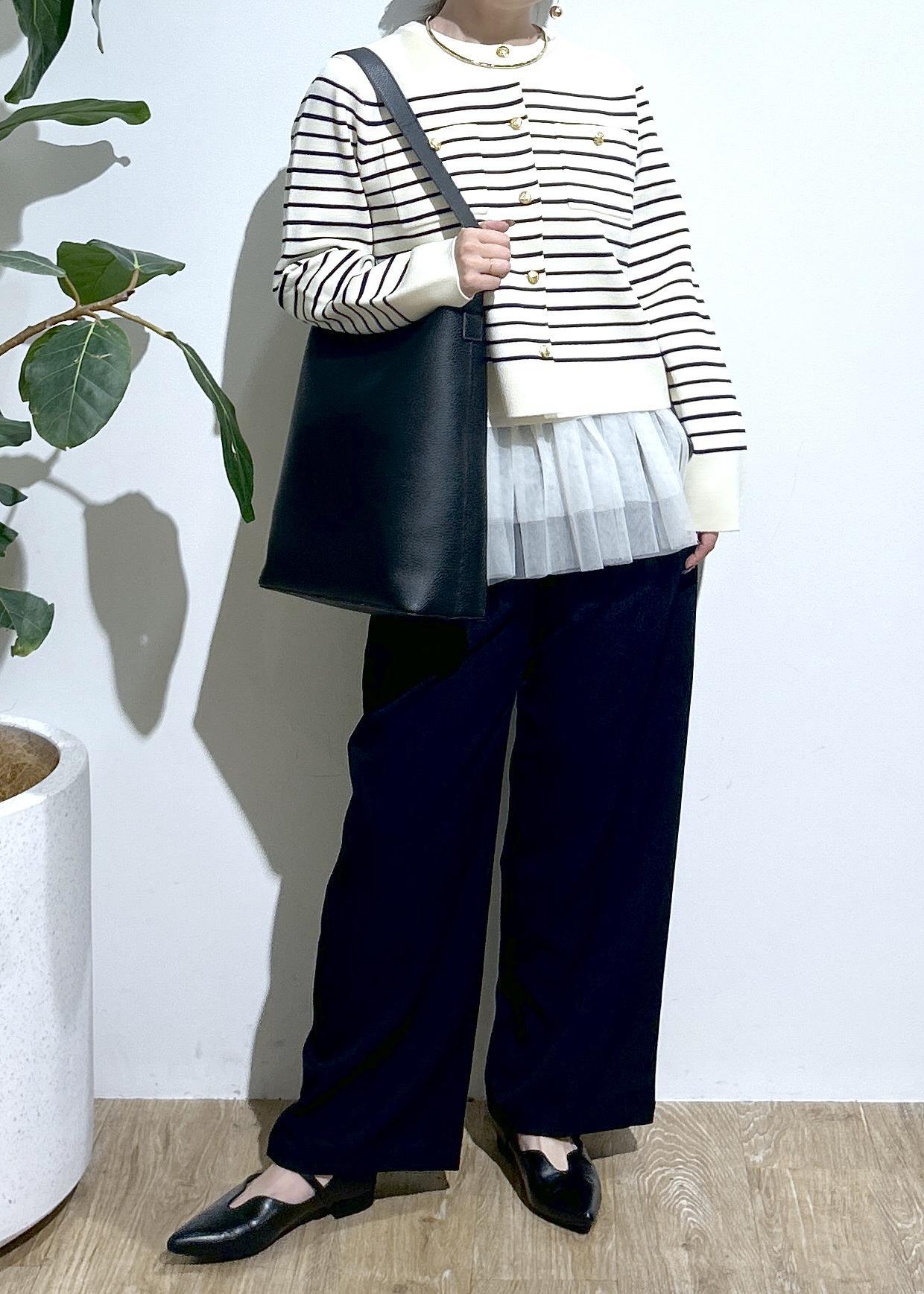 白×ボーダーでシンプルにもカジュアルにも合わせかた次第でコーデの幅が広がります!