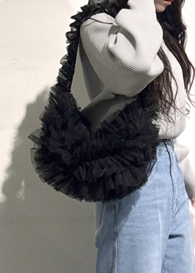 アウトレットVISCASUAL チュールフリルショルダーブラック / F¥2,076レビュー大容量で500mのペットボトルや長財布が入ります!