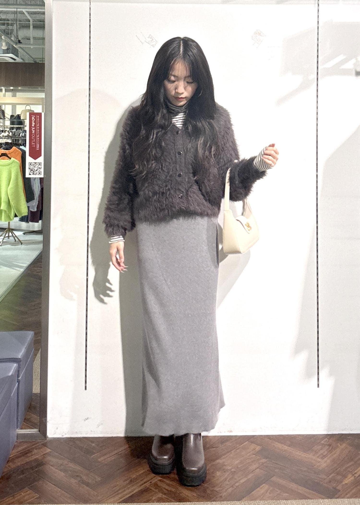 アウトレットVISWジップハイネックニットカーディガンライトグレー / F¥2,636レビュー裾に向かって細くなるシルエットなので、ブラウジングして着用して頂くのがおすすめです!