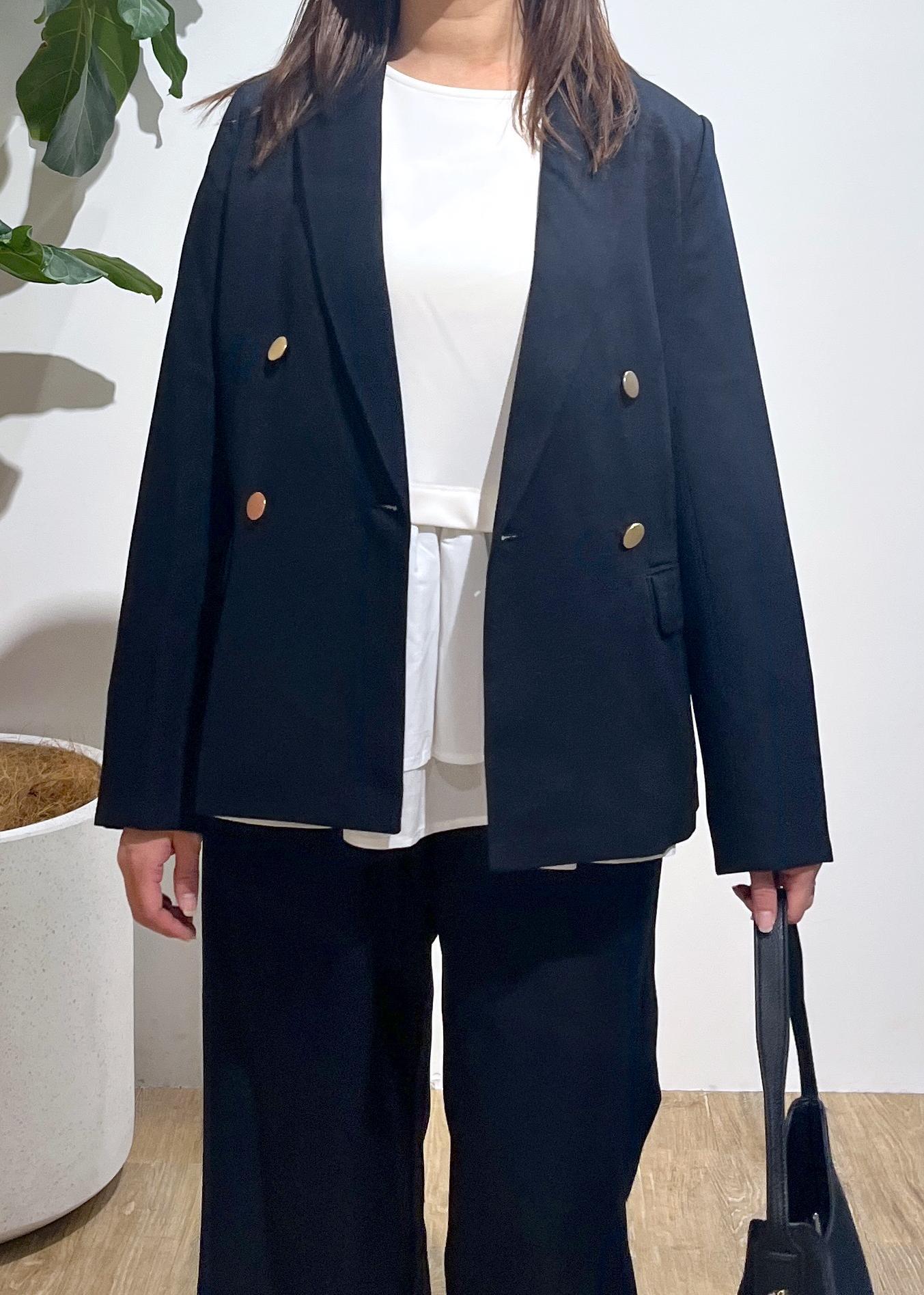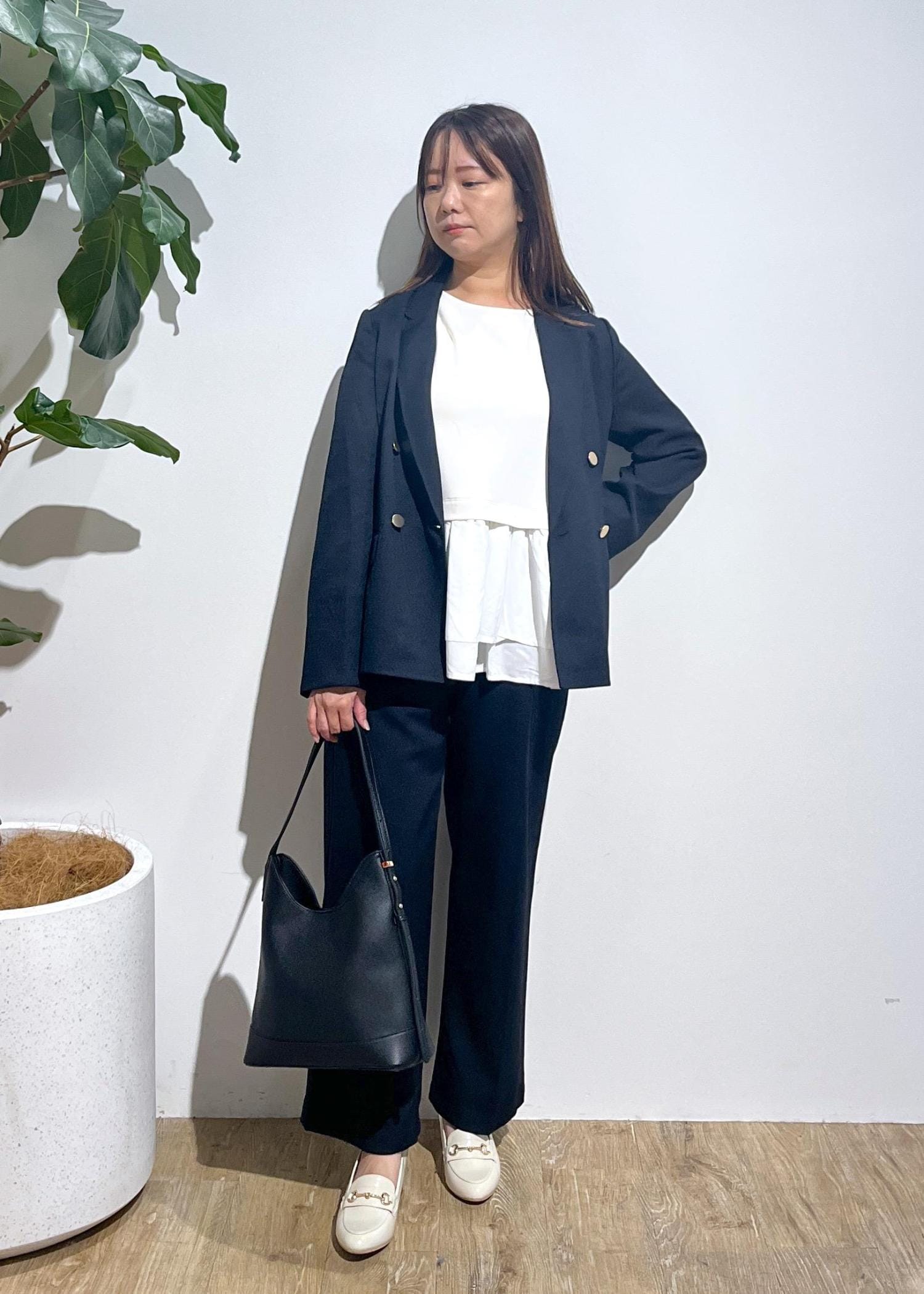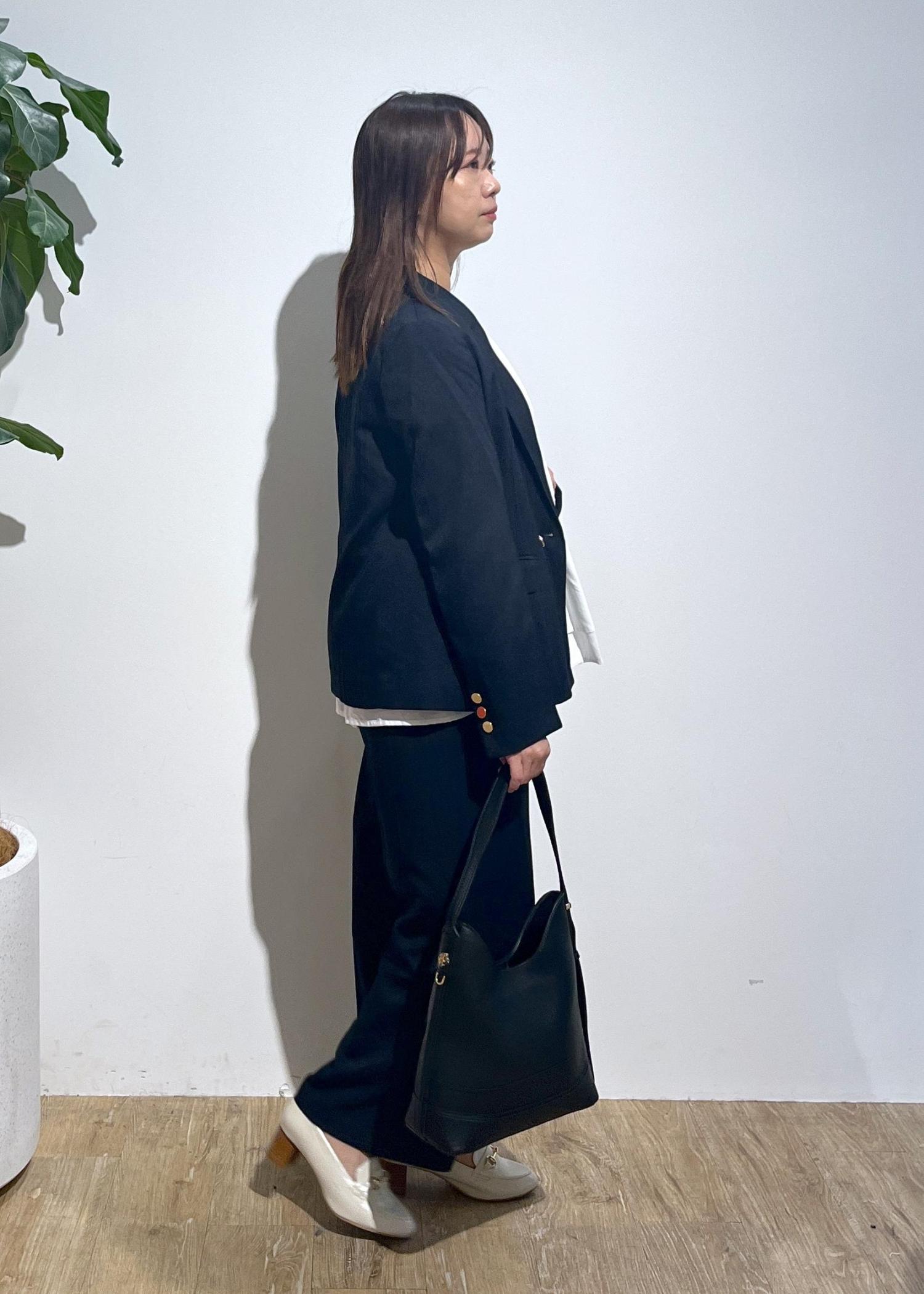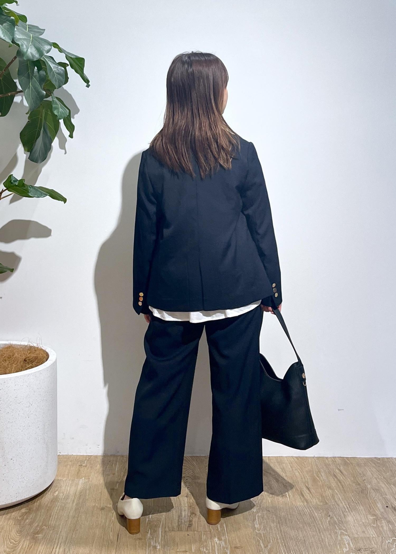 ROPÉ PICNICレディハンサムシリーズ ウールライク金ボタンジャケット(半裏地)/セットアップ・通勤対応ネイビー / L¥8,098レビューシルエットがきれいな金ボタンジャケット。今回は大きめがよくてLサイズ着用しました。長さはお尻が隠れるくらいでした。肩幅が少し大きめに見えたのでMサイズ着用だとよりスッキリ見えます。