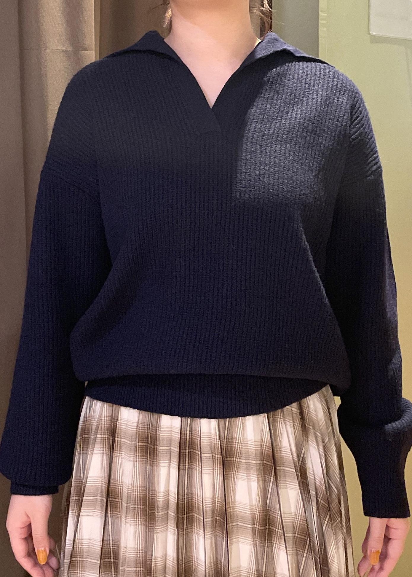 トップスの【スキッパーニットプルオーバー】はふんわりニット素材で肌触りもよくチクチクしない快適な着心地です!
