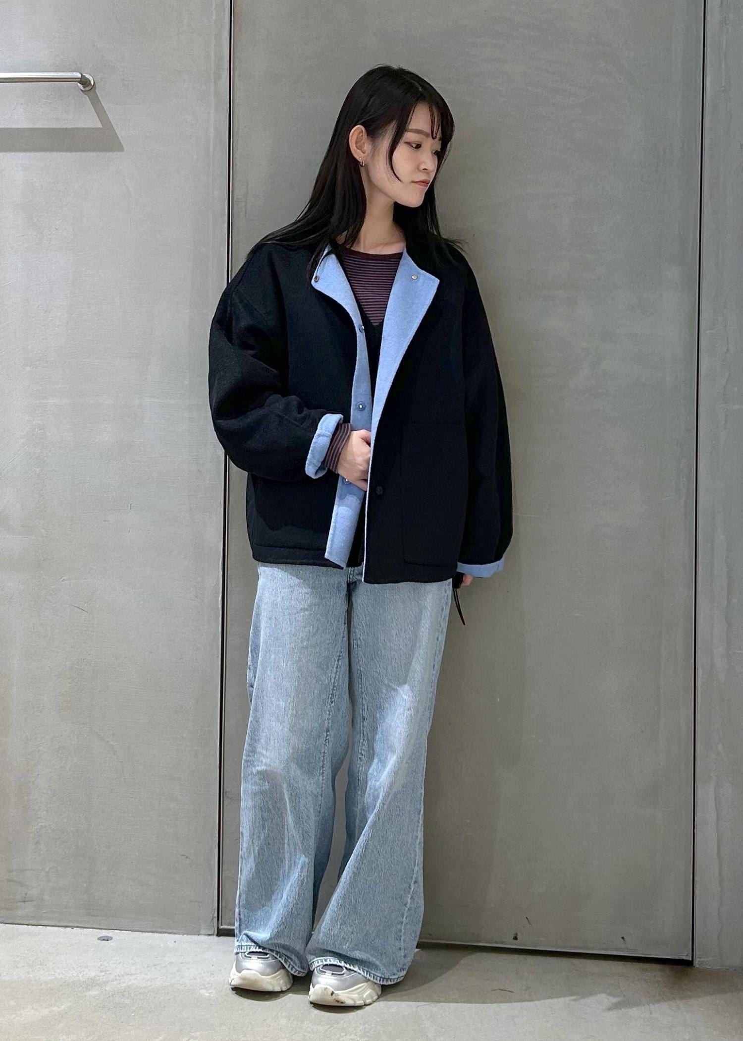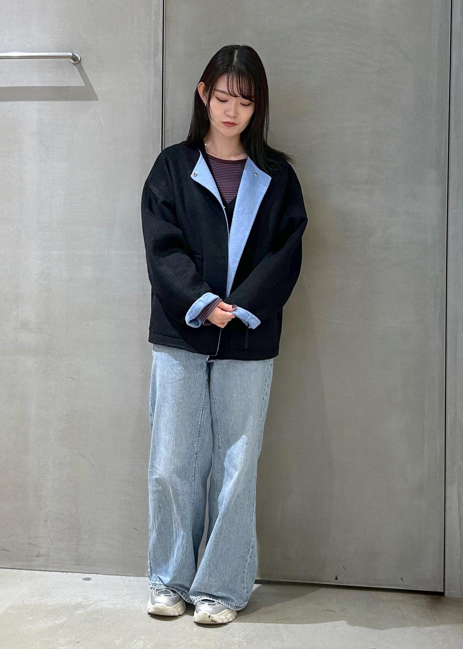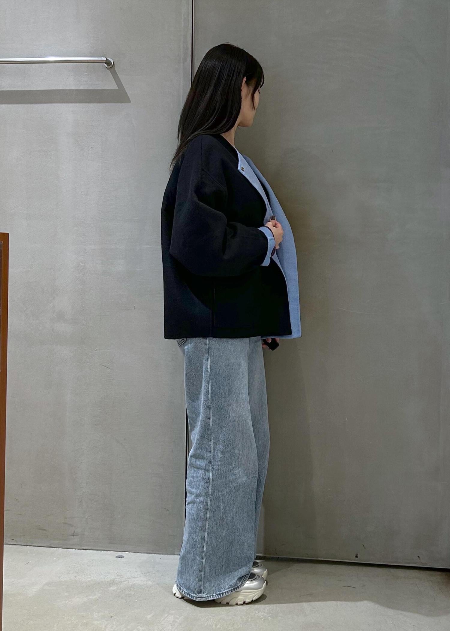 LE CERCLE par ropéダブルフェイスショートコートブラック系 / F¥13,860レビュー生地感もしっかりしていて丈感はショートコートなので短めですが、袖や襟元からチラッと見えるバイカラーのデザインがポイントです!