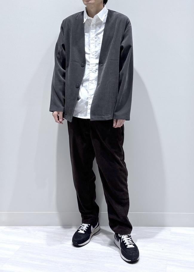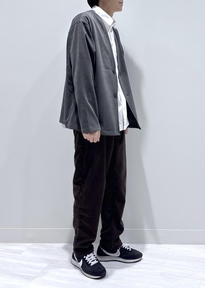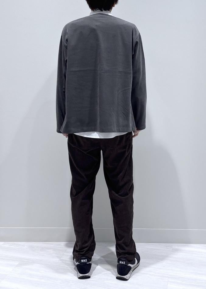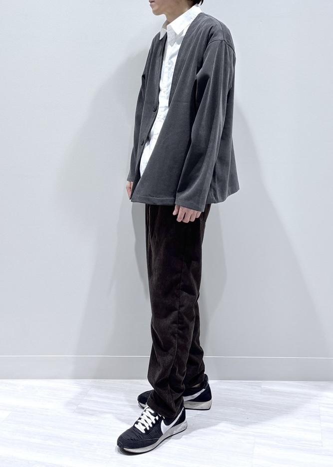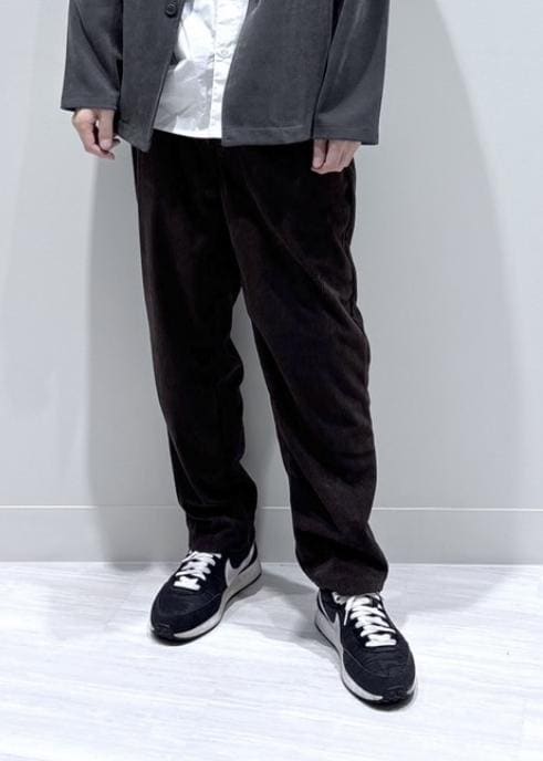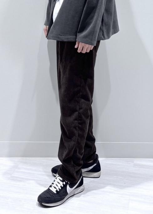 合わせのボトムスはカジュアルテイストで季節感のあるコーデュロイパンツを合わせました。