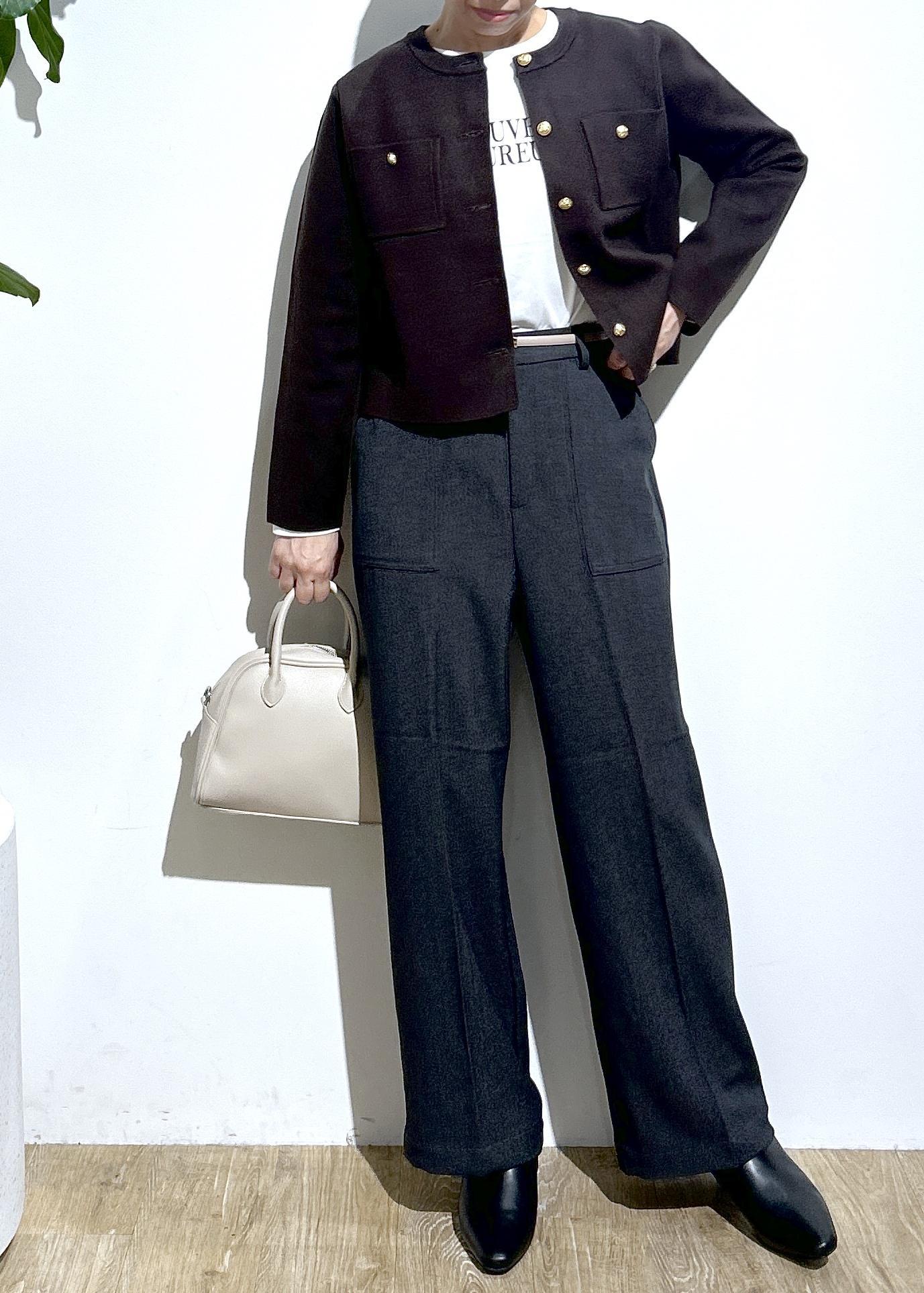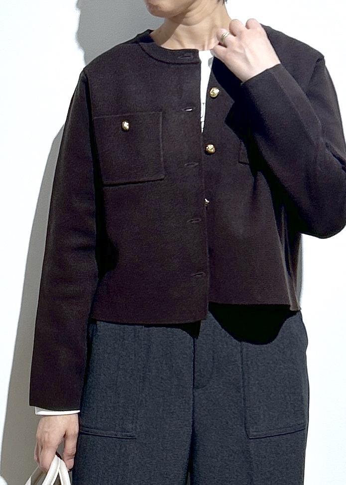 シャツや、薄手のニットは下にきても着膨れしないサイズ感です。