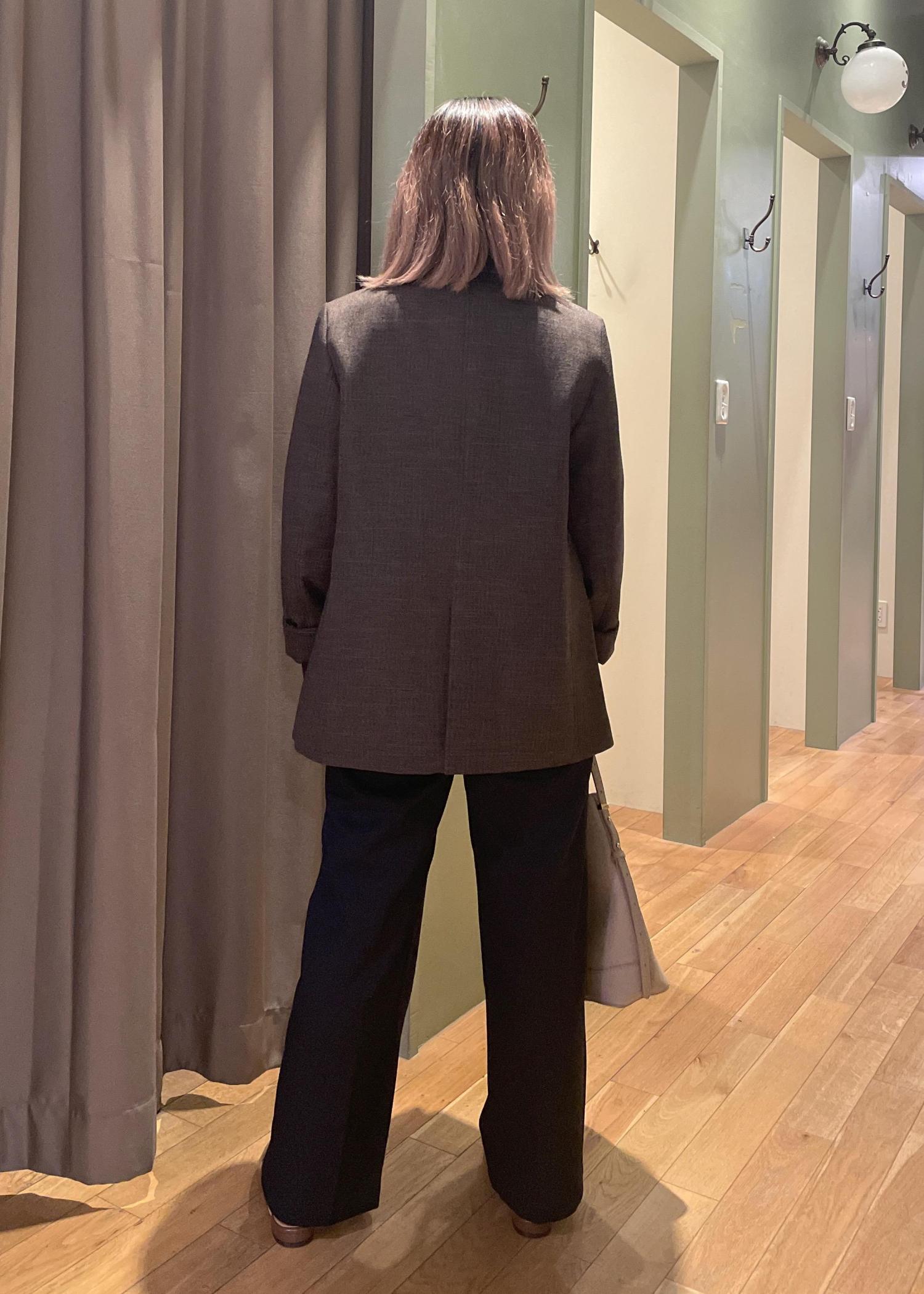 また、キッチリとしたジャケットですがデニムや柄物のタイトスカートなど、ボトムスを変えるだけでカジュアルな印象も演出してくれます!!