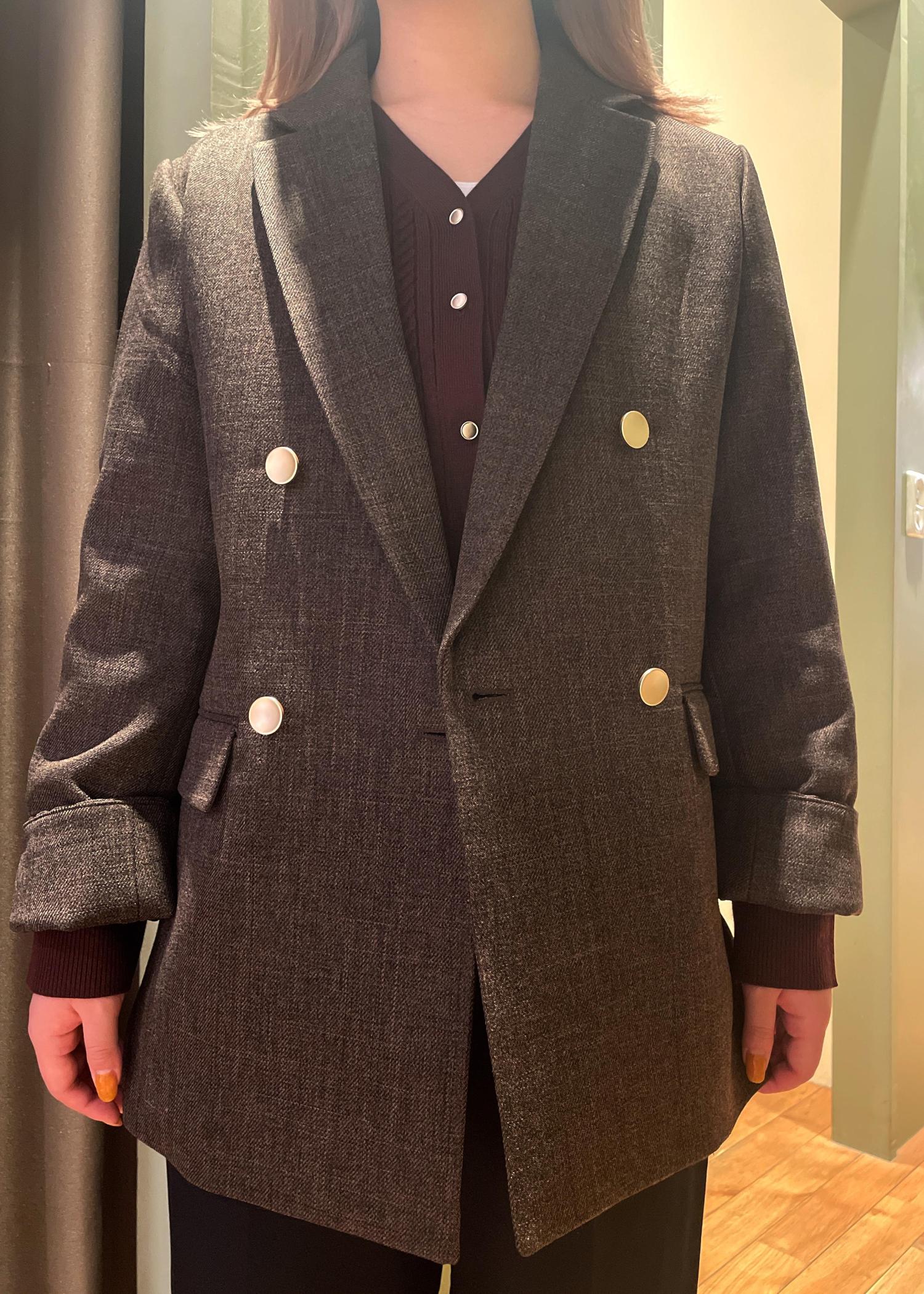 アウターの【スリートーンツイードジャケット】は高級感のある上品な見た目ですが暖かく軽いエアリーな素材を使用しているためストレスフリーな着心地です!