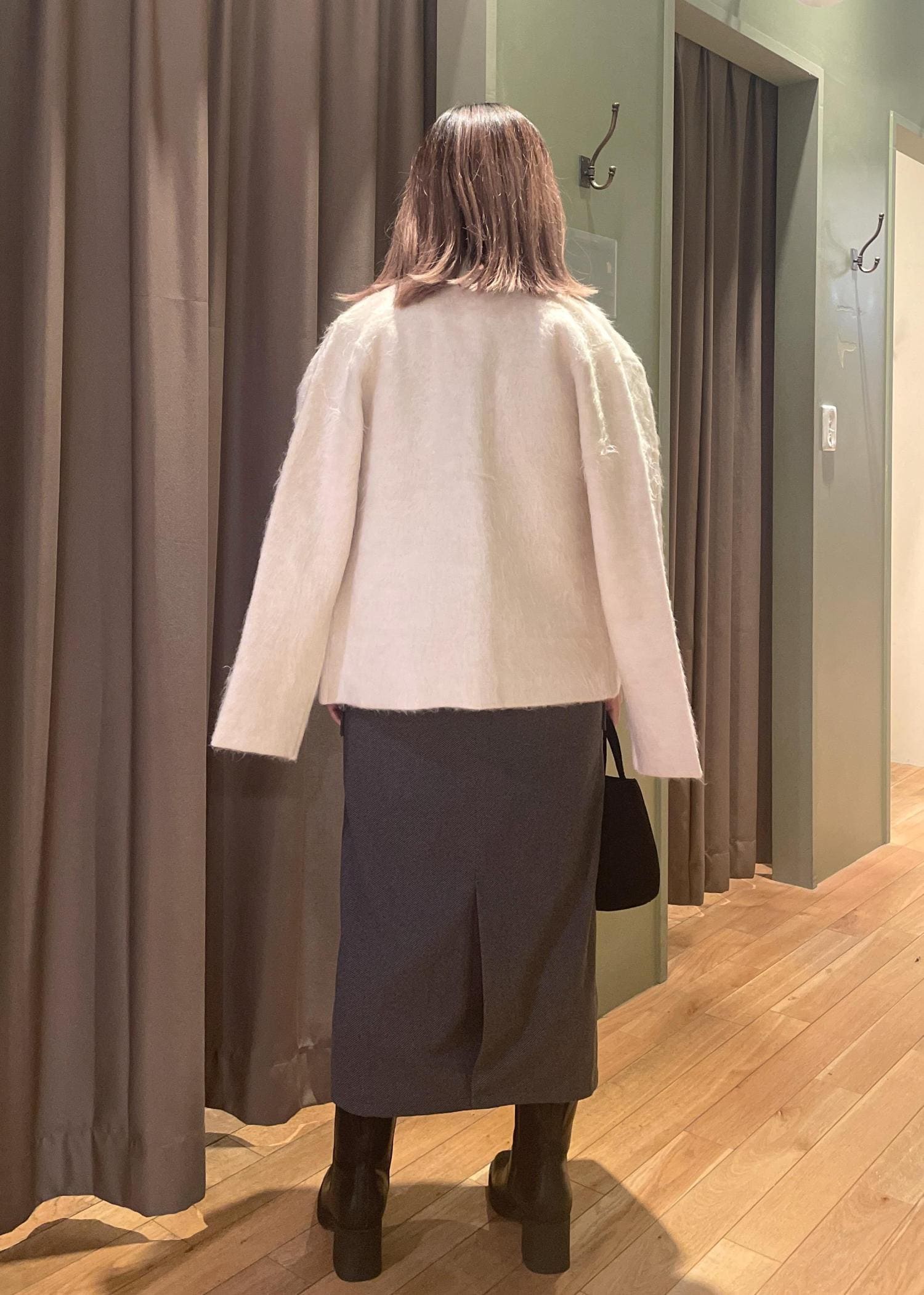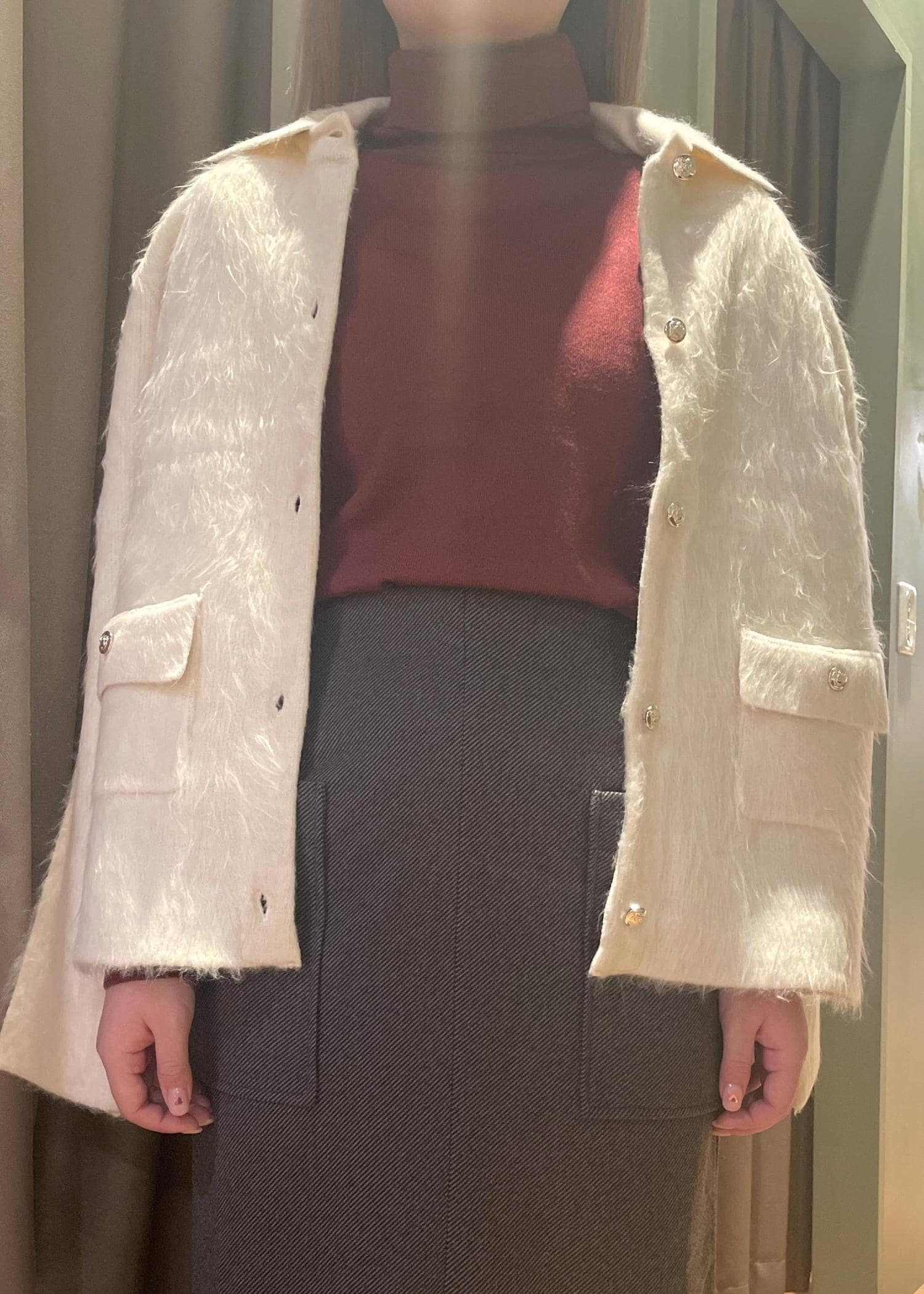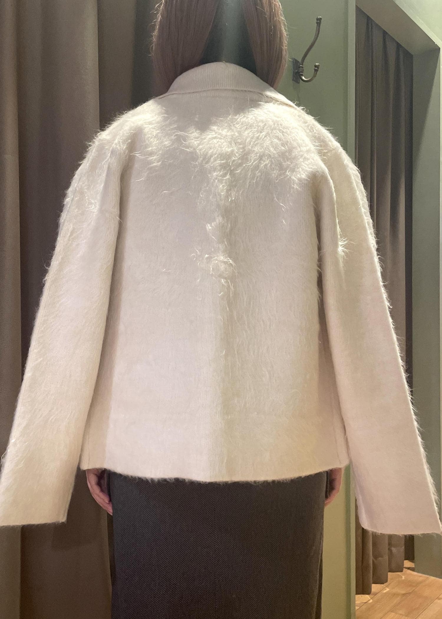 アウターの【ダブルフェイス襟取り外し起毛カーディガン】はふんわりと暖かみのある、柔らかな起毛素材を使用しています!!