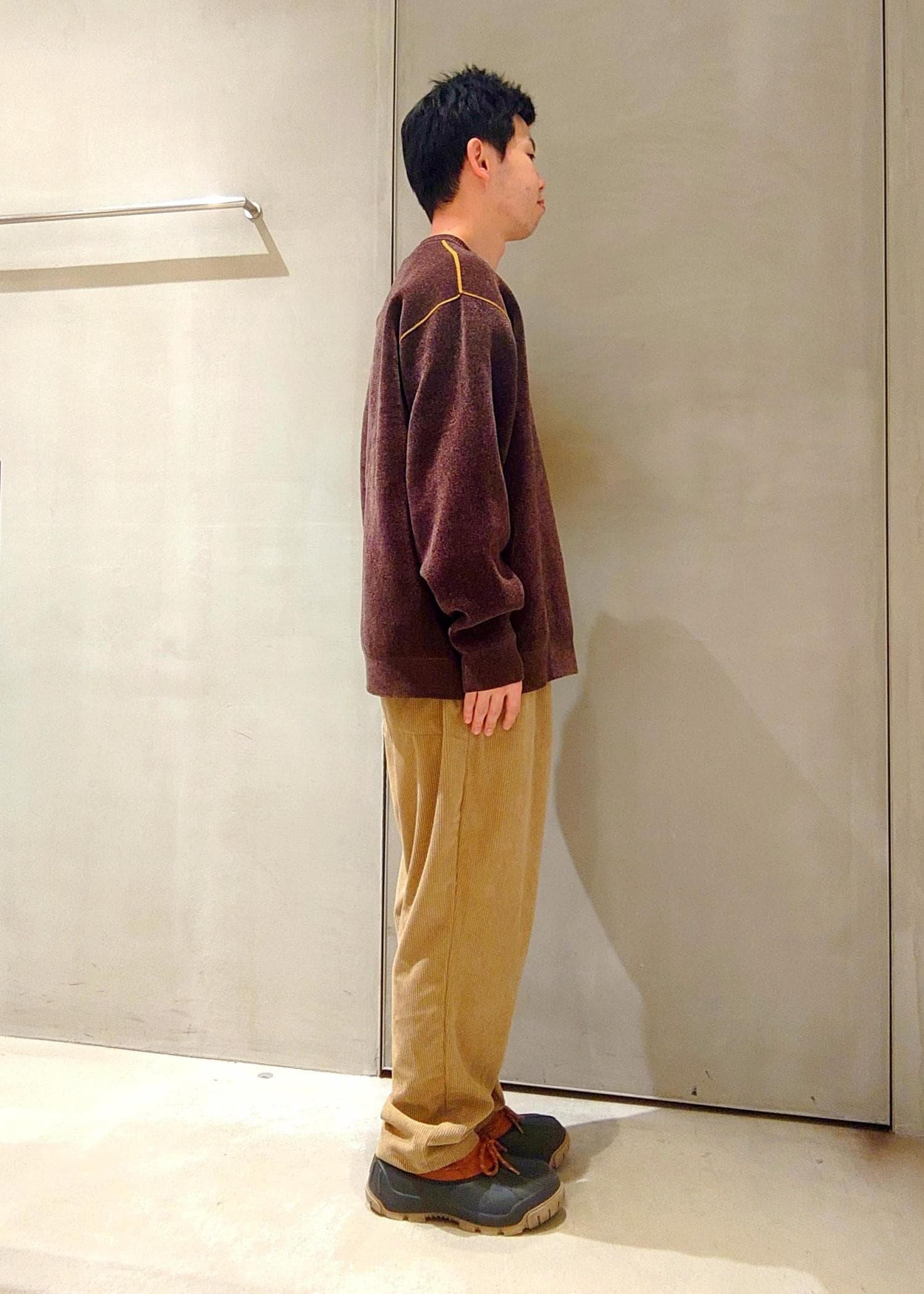 シンプルなニットにテーパードパンツを合わせました。暖かい日は1枚で寒い日にはアウターも合わせられるコーデです。