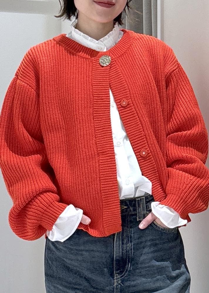 LE CERCLE par ropéメタルボタン片畔ニットカーデレッド系 / F¥6,083レビュー金ボタンが目を引くカーディガン