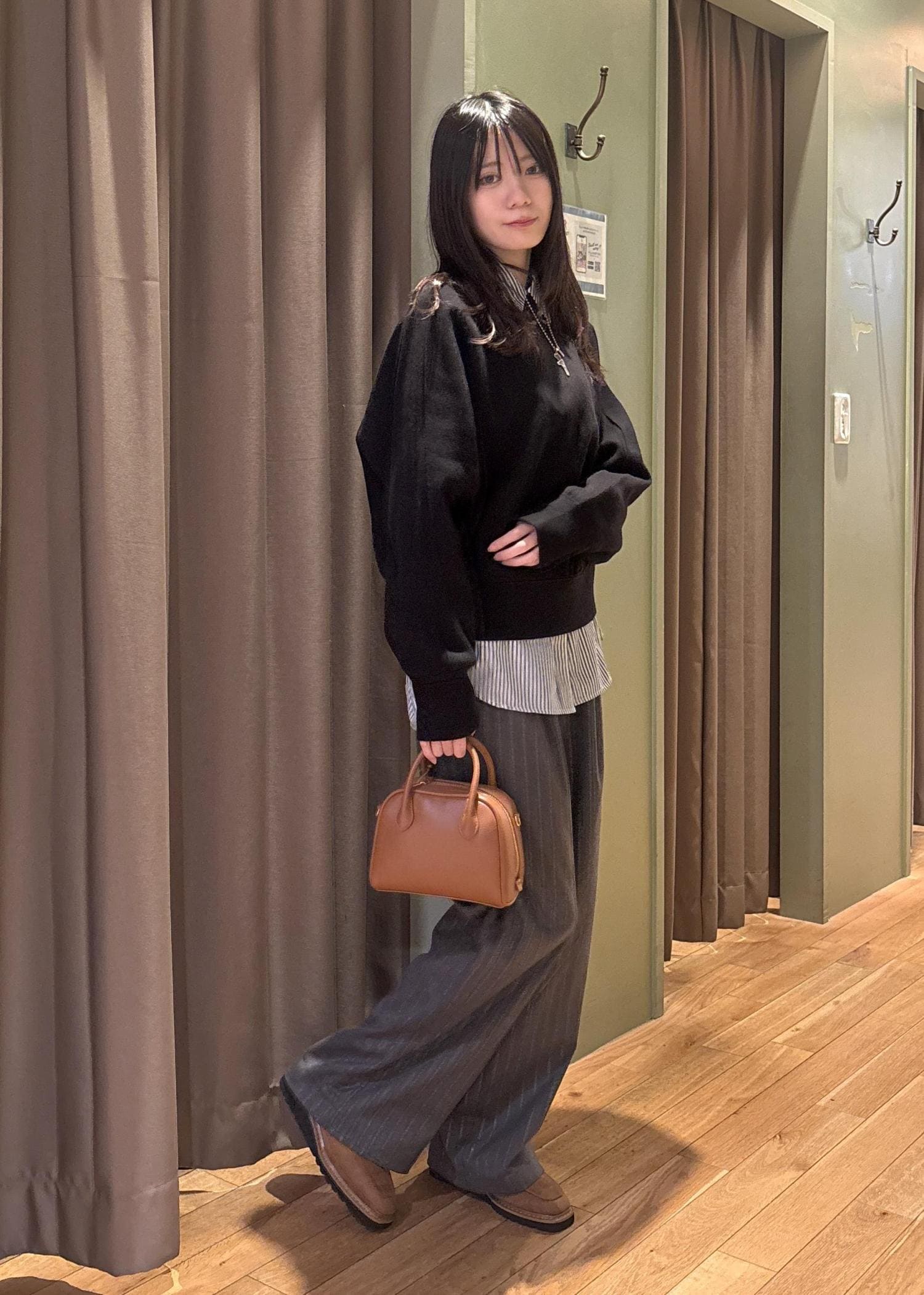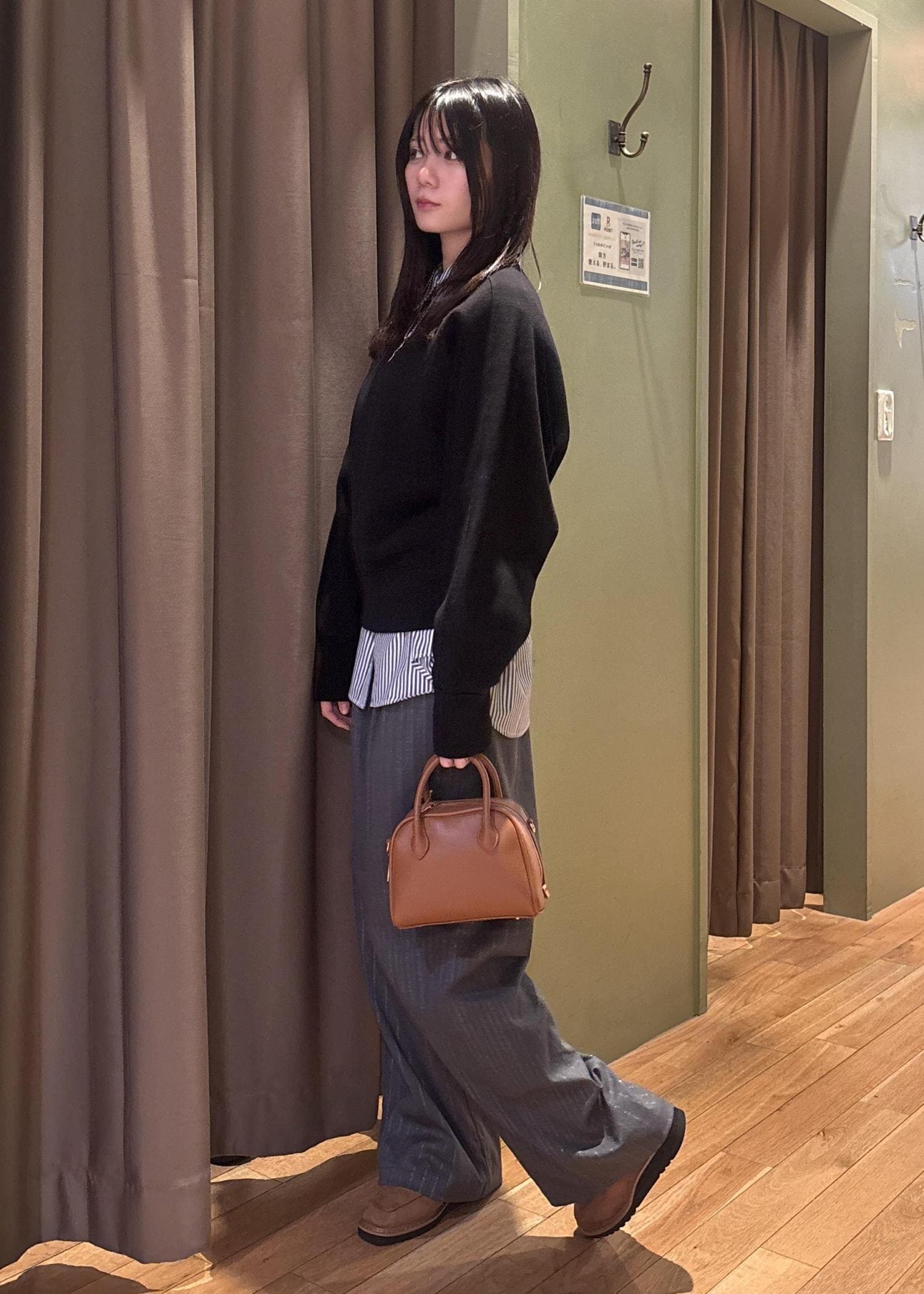 トップスがオーバーすぎないサイズ感なのでワイドパンツと合わせることでAラインのバランスができてスタイルアップも出来ちゃいます✨️ニットも3色展開なのでお好みの色で重ね着も楽しめます