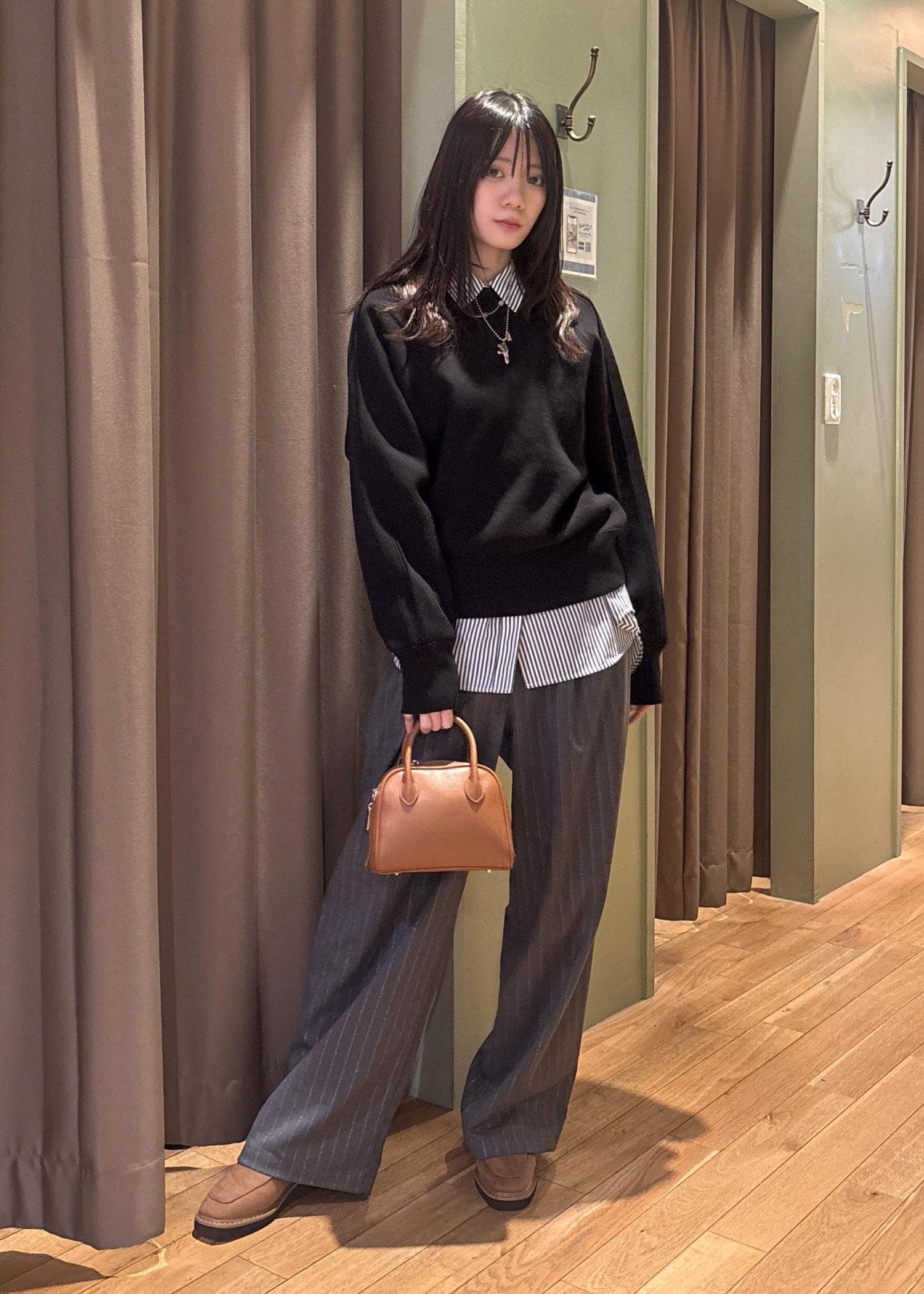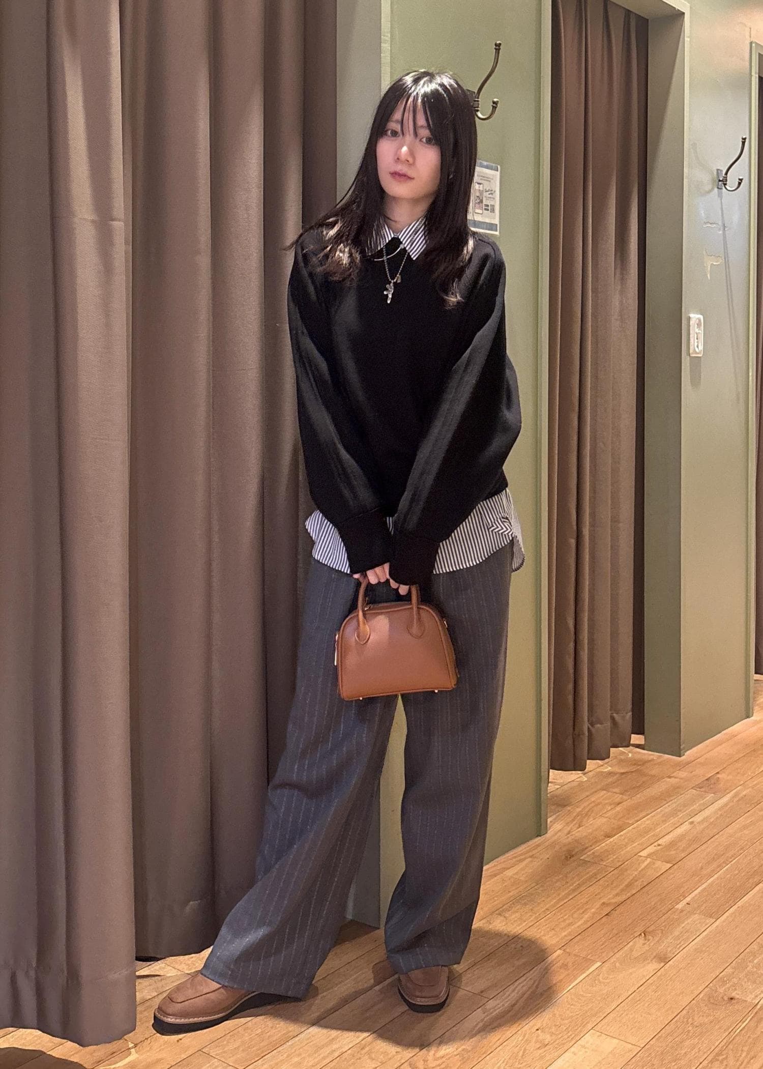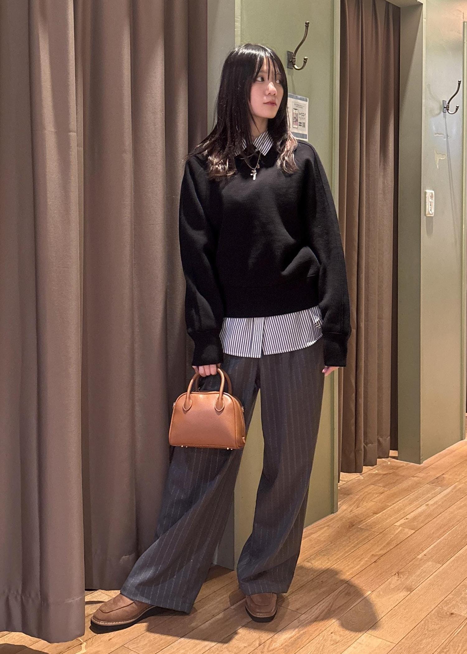 今回のスタイリングはストライプシャツとニットを合わせてラフさも備えつつオシャレカジュアルになるよう組み合わせました✨️