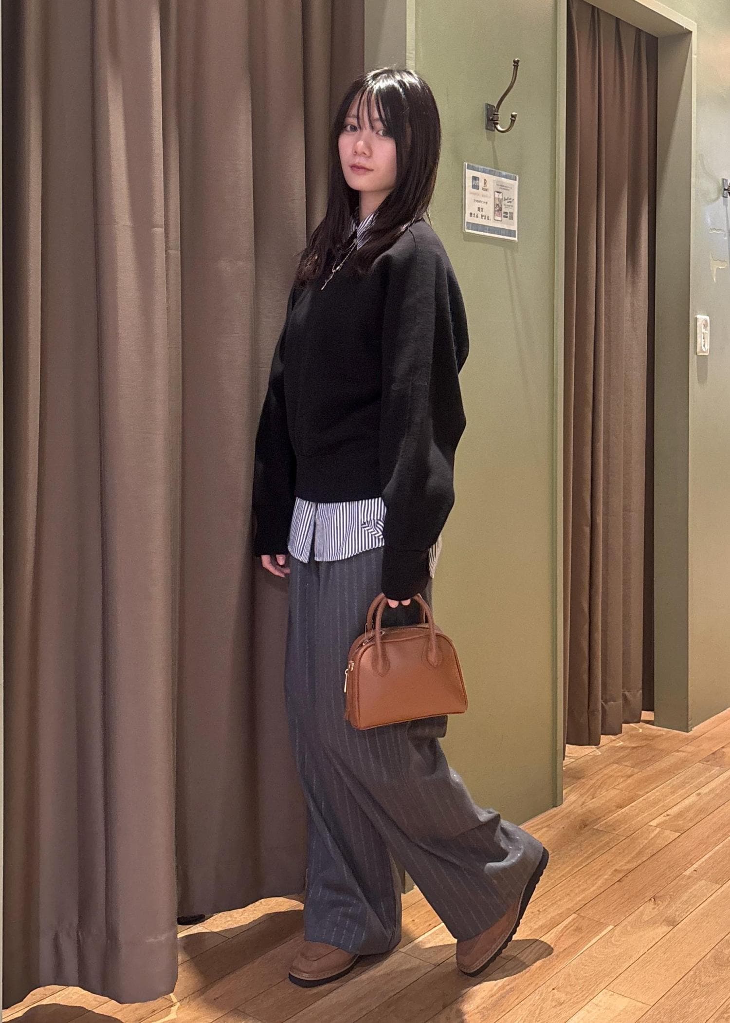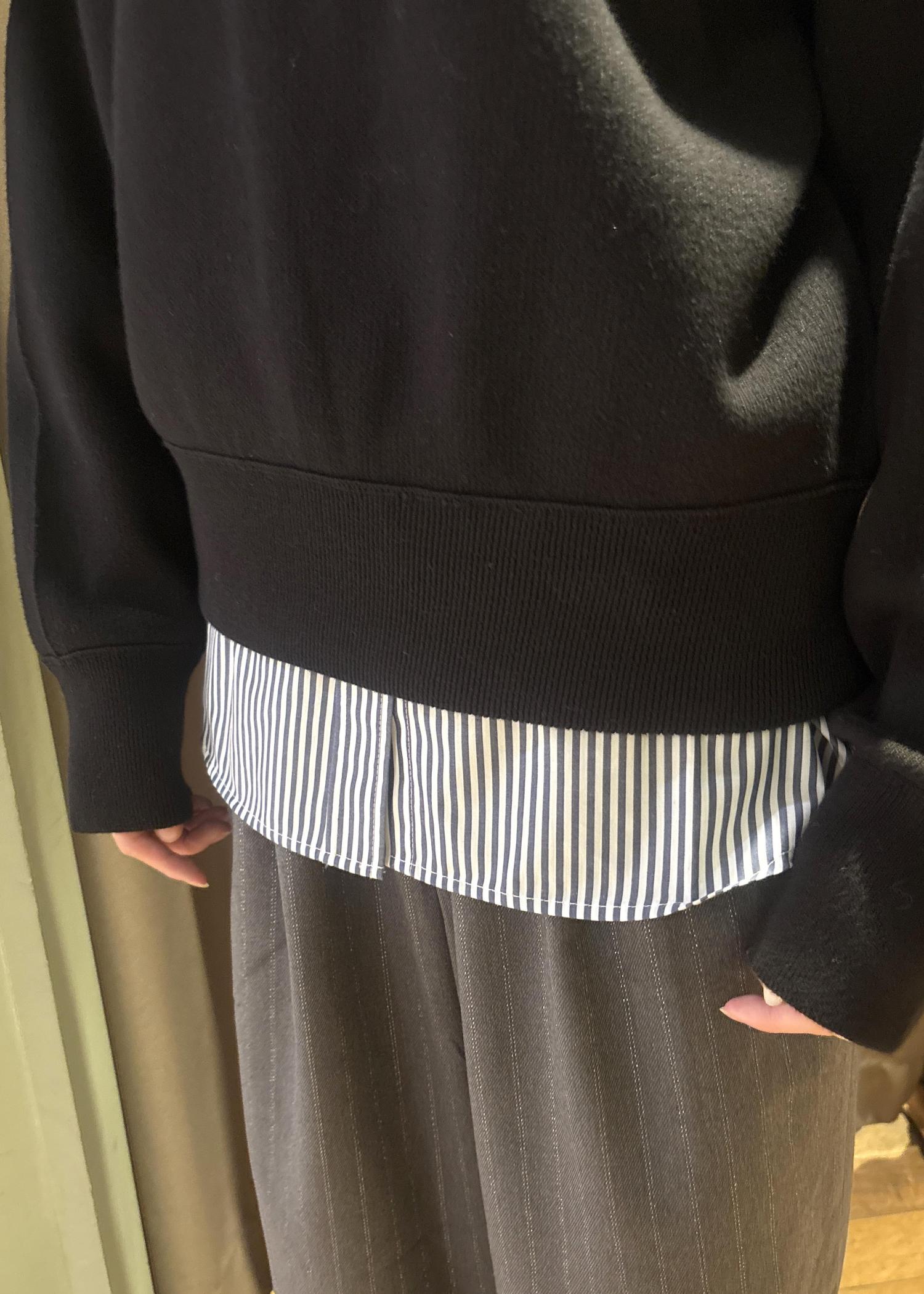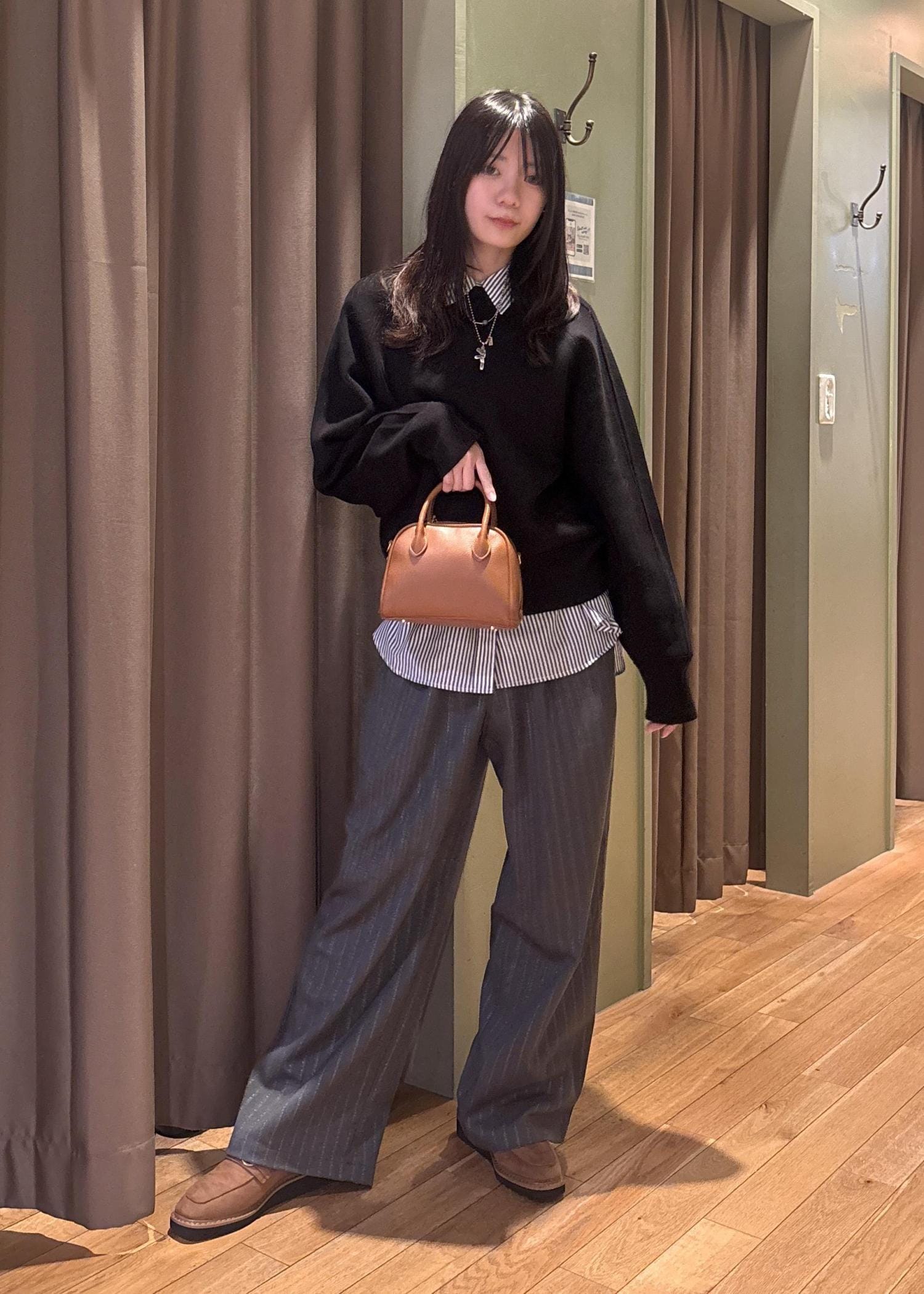 今回のスタイリングはストライプシャツとニットを合わせてラフさも備えつつオシャレカジュアルになるよう組み合わせました✨️