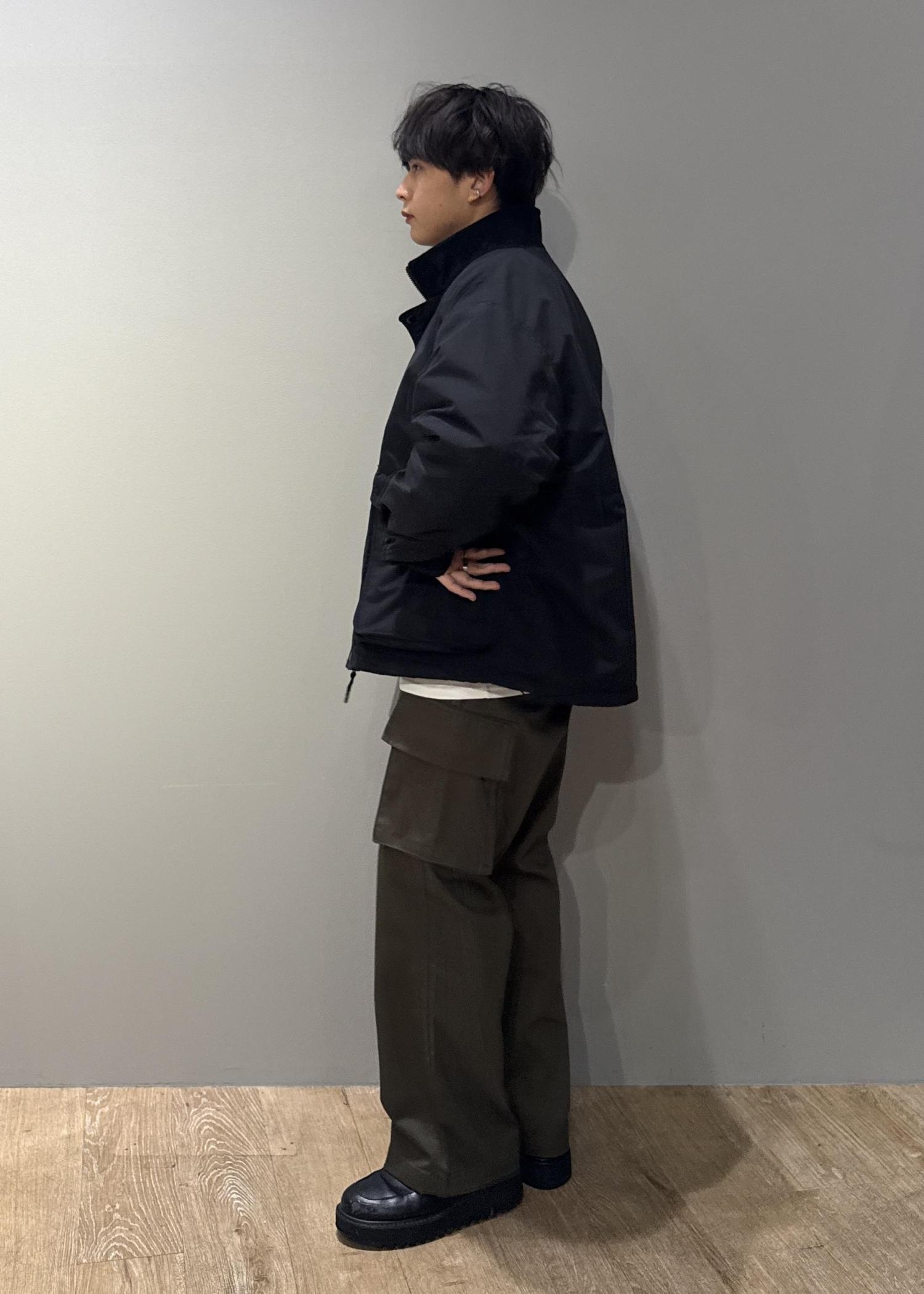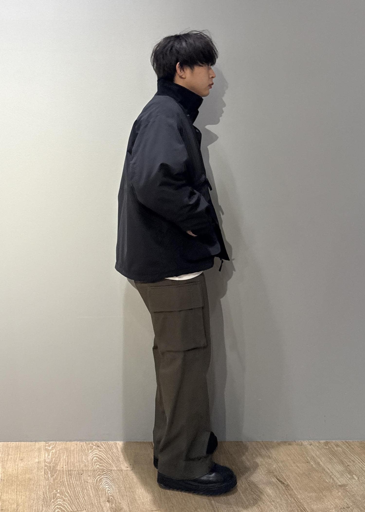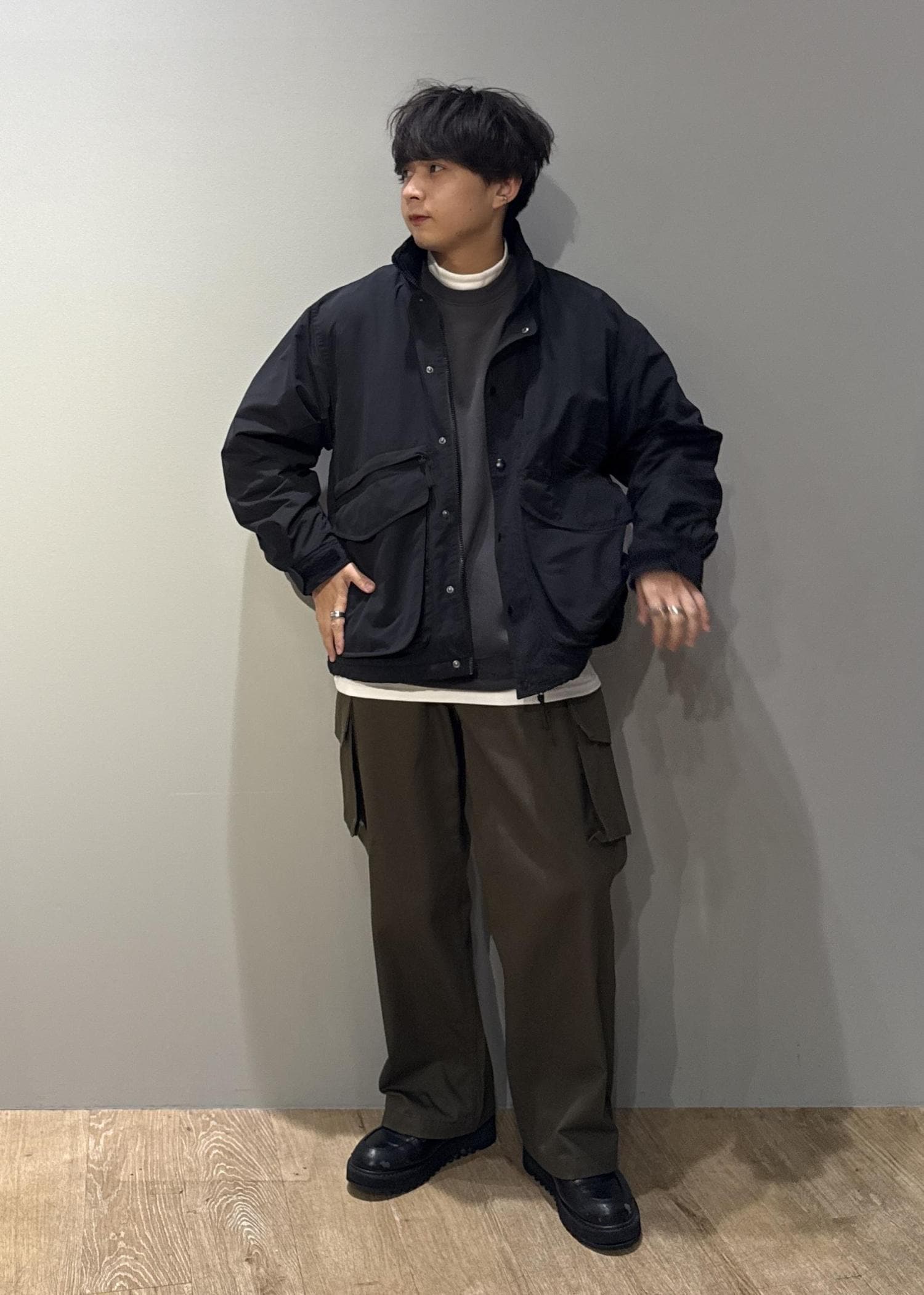 今回はPNピーチ裏フリースフィールドブルゾンを使ったコーデです。ミリタリーでスポーティな雰囲気もありつつ、綺麗めな印象のアウターなので多様なスタイリングに対応できます。