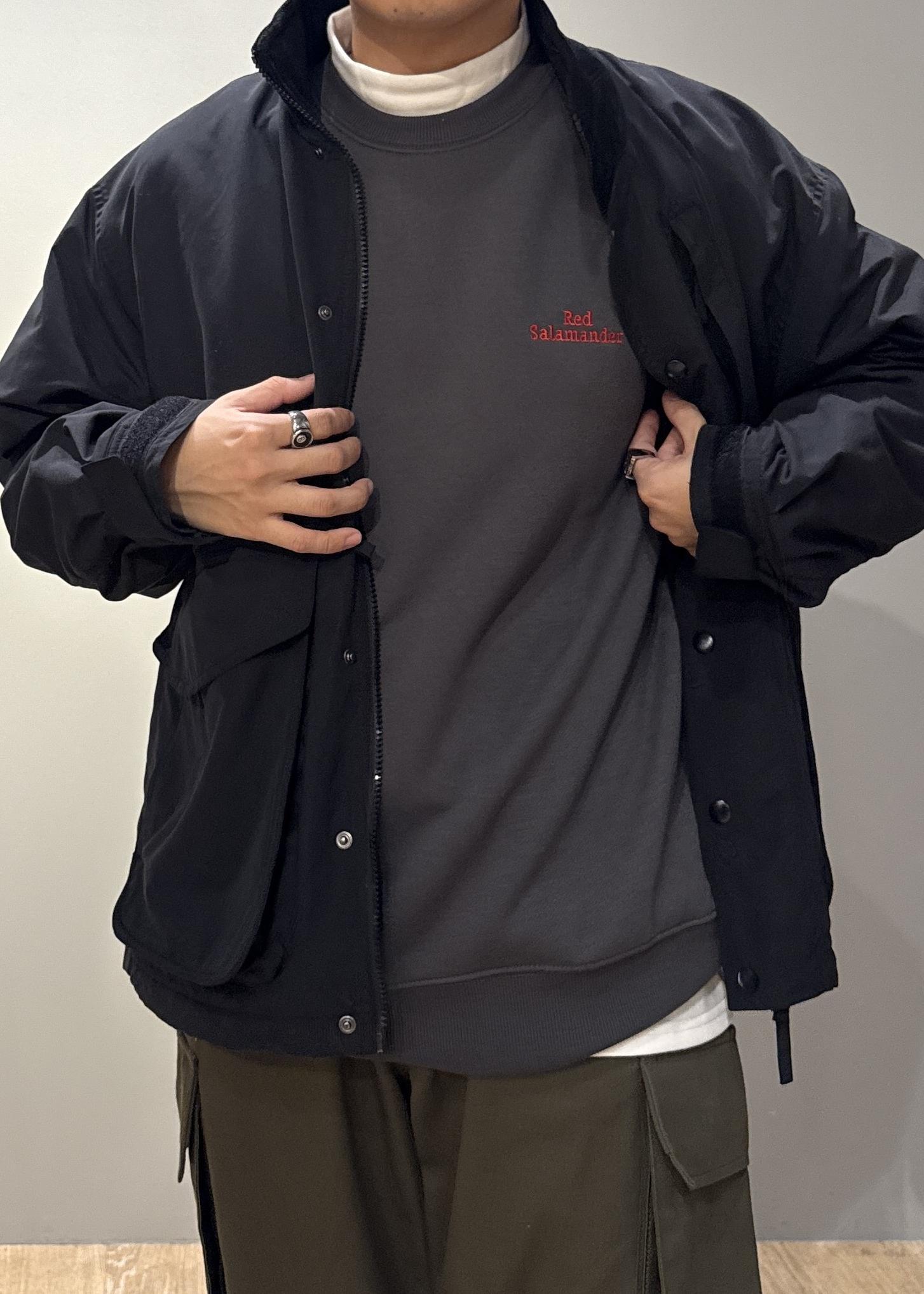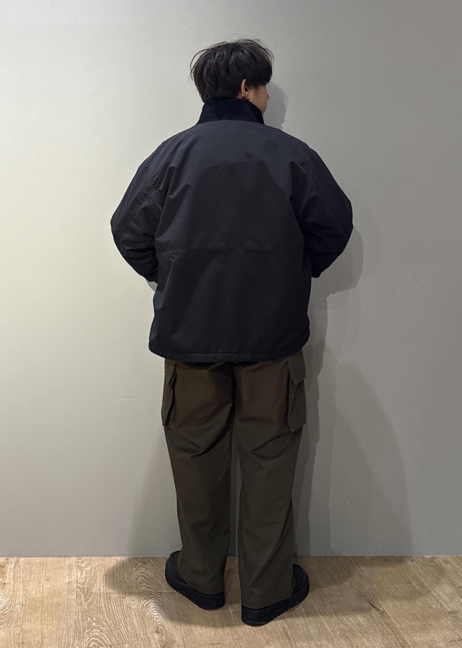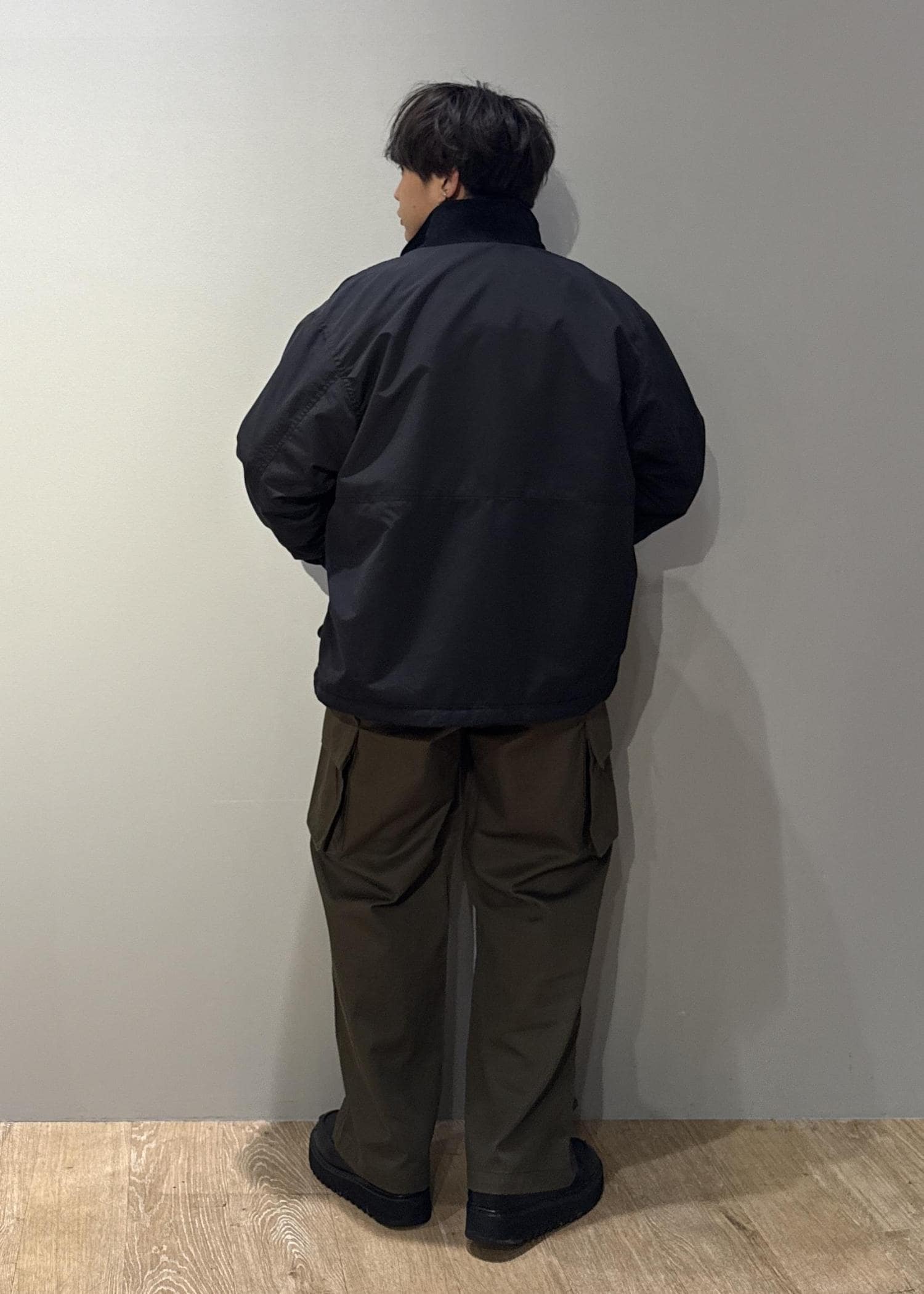 今回はPNピーチ裏フリースフィールドブルゾンを使ったコーデです。ミリタリーでスポーティな雰囲気もありつつ、綺麗めな印象のアウターなので多様なスタイリングに対応できます。