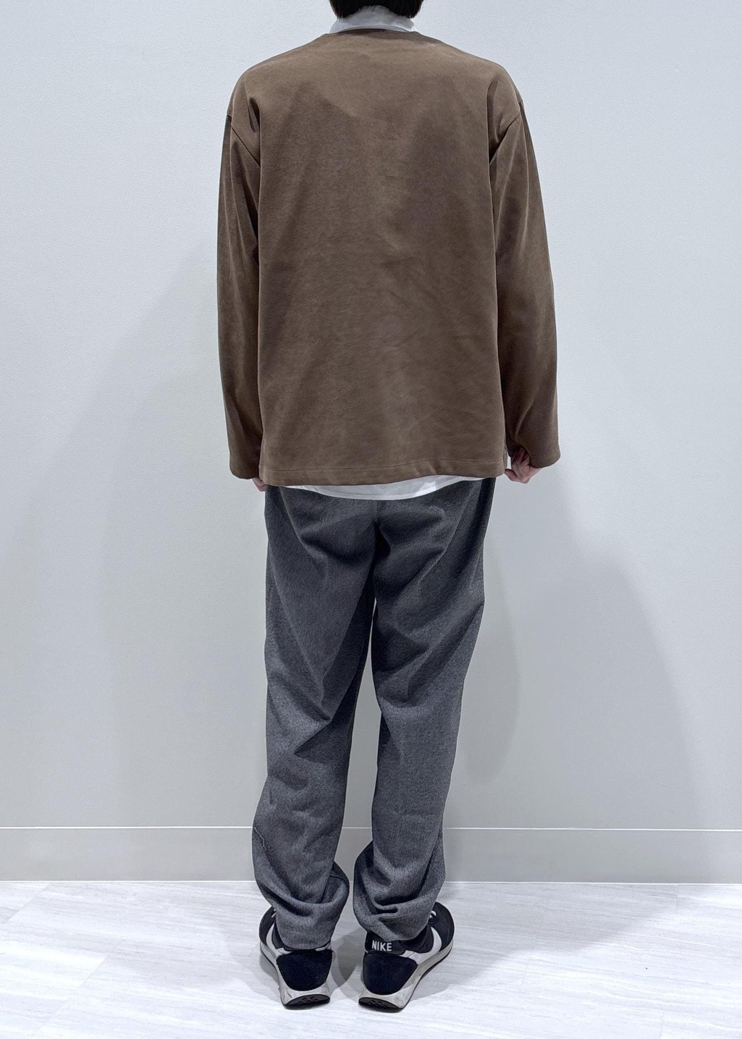 ボトムスは、ややスリムテーパードのパンツを合わせております。