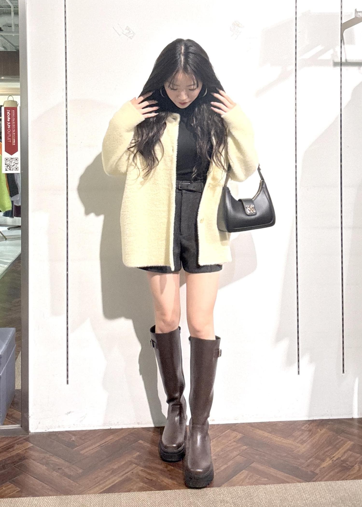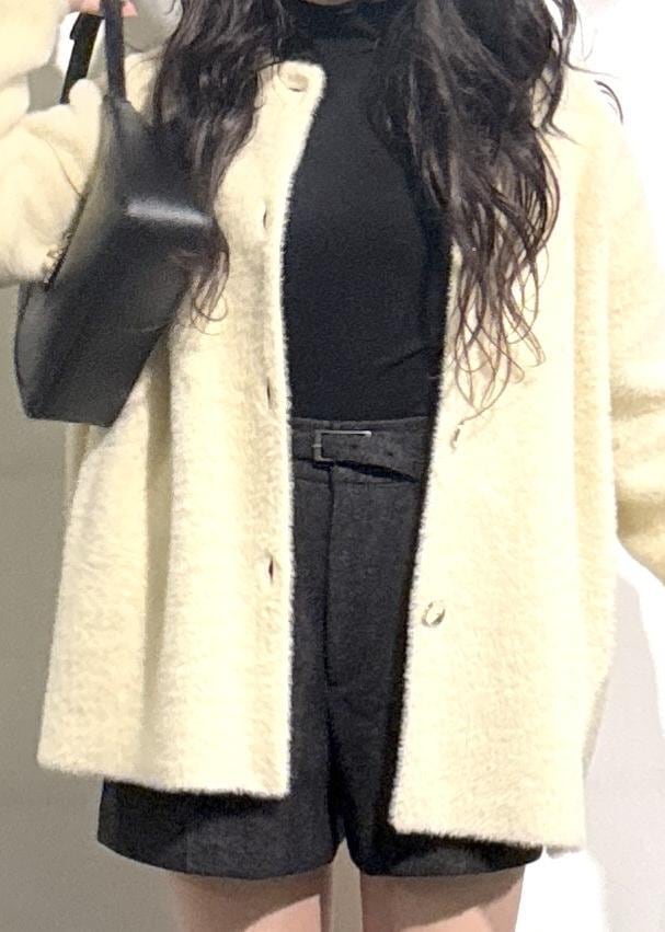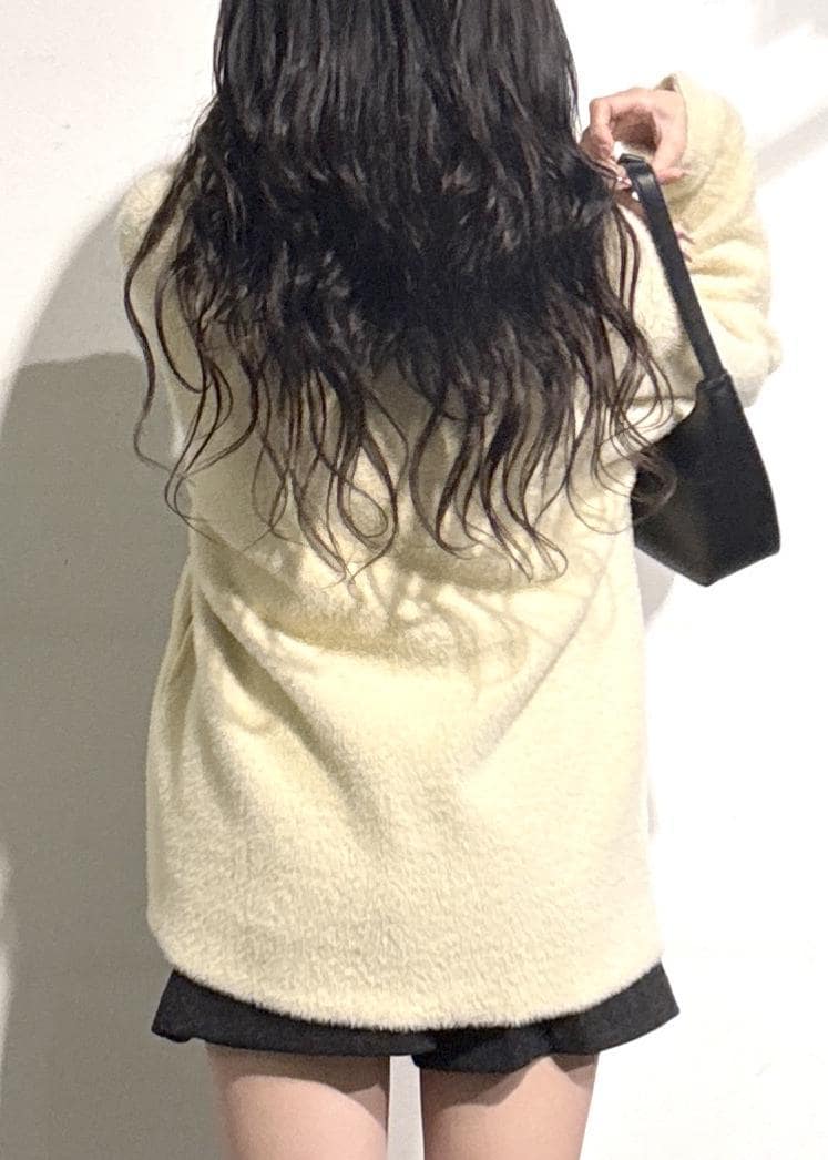 VIS接結メタルボタンミニフェザーニットコートイエロー / F¥9,999レビュー表地は程よい起毛感のニット、裏地は肌当たりのよい素材のニットコートです!