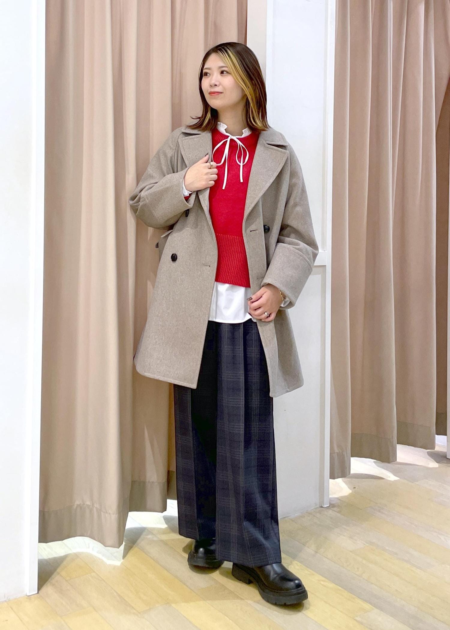 ニットは着丈が選べるシリーズで、短いサイズを着用しております。