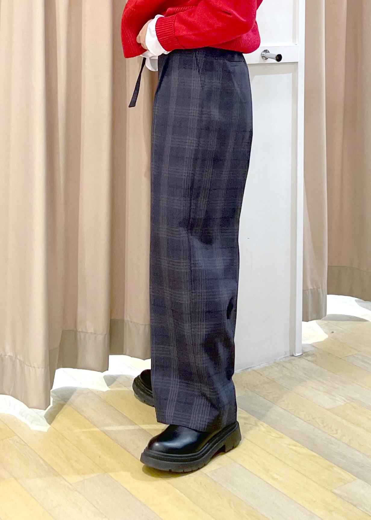 チェック柄はシンプルなトップスと合わせても華やかな印象に◎ -