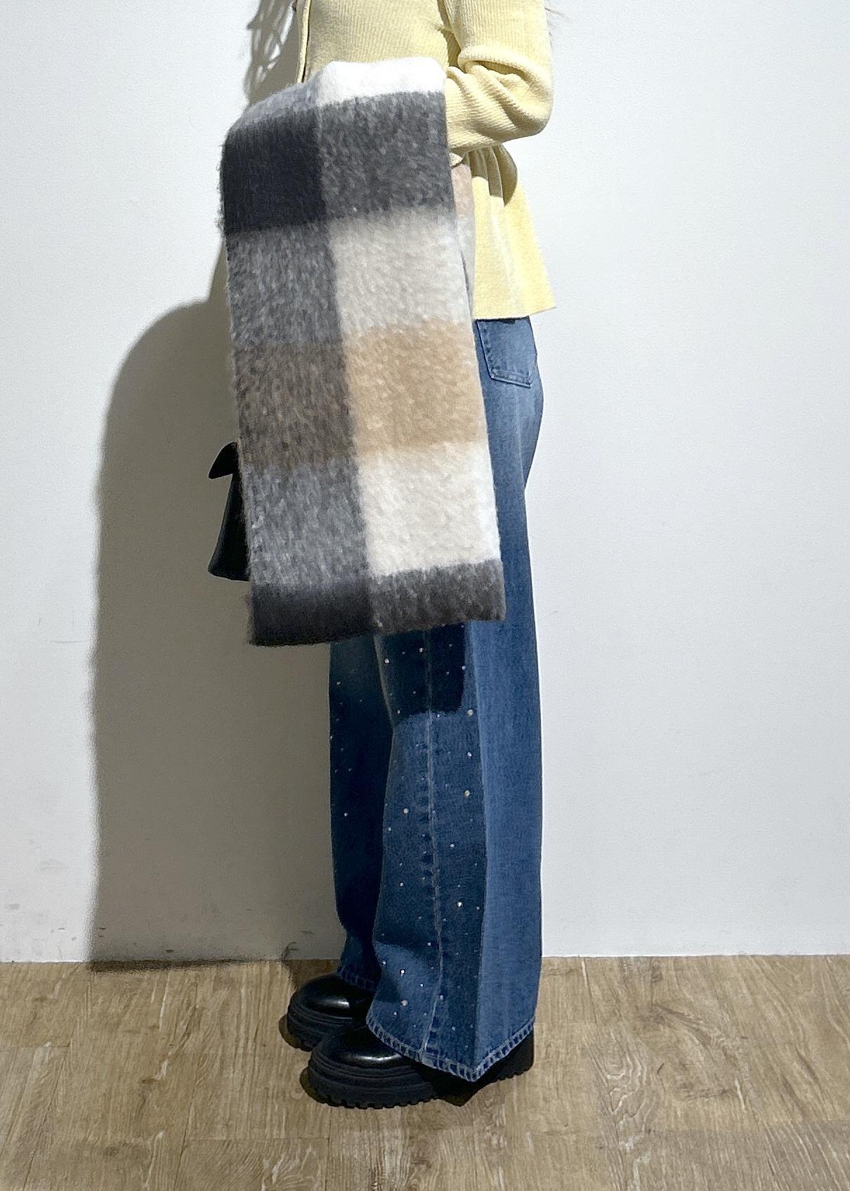 大きめのチェック柄がシンプルなコーディネートのアクセントに◎