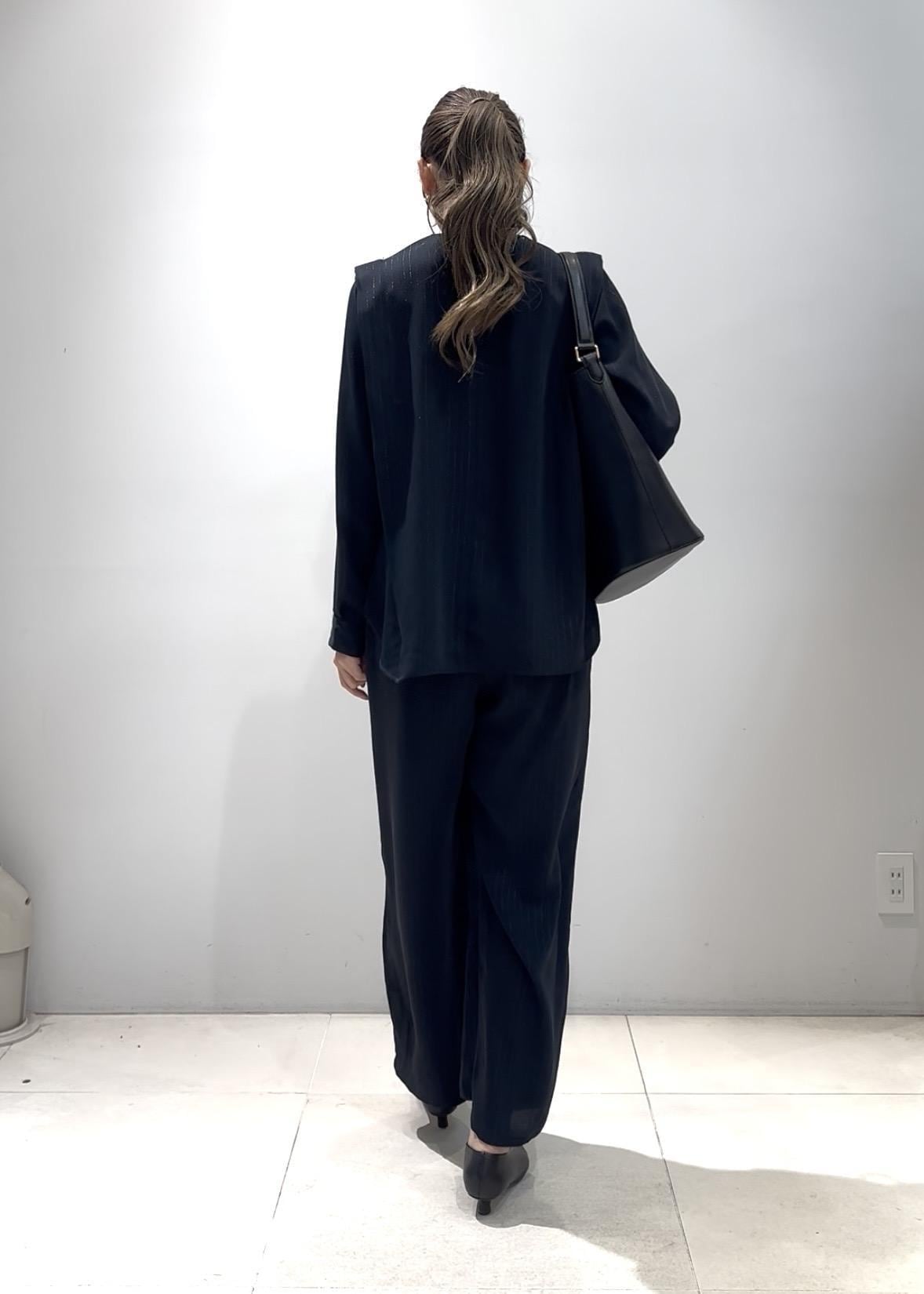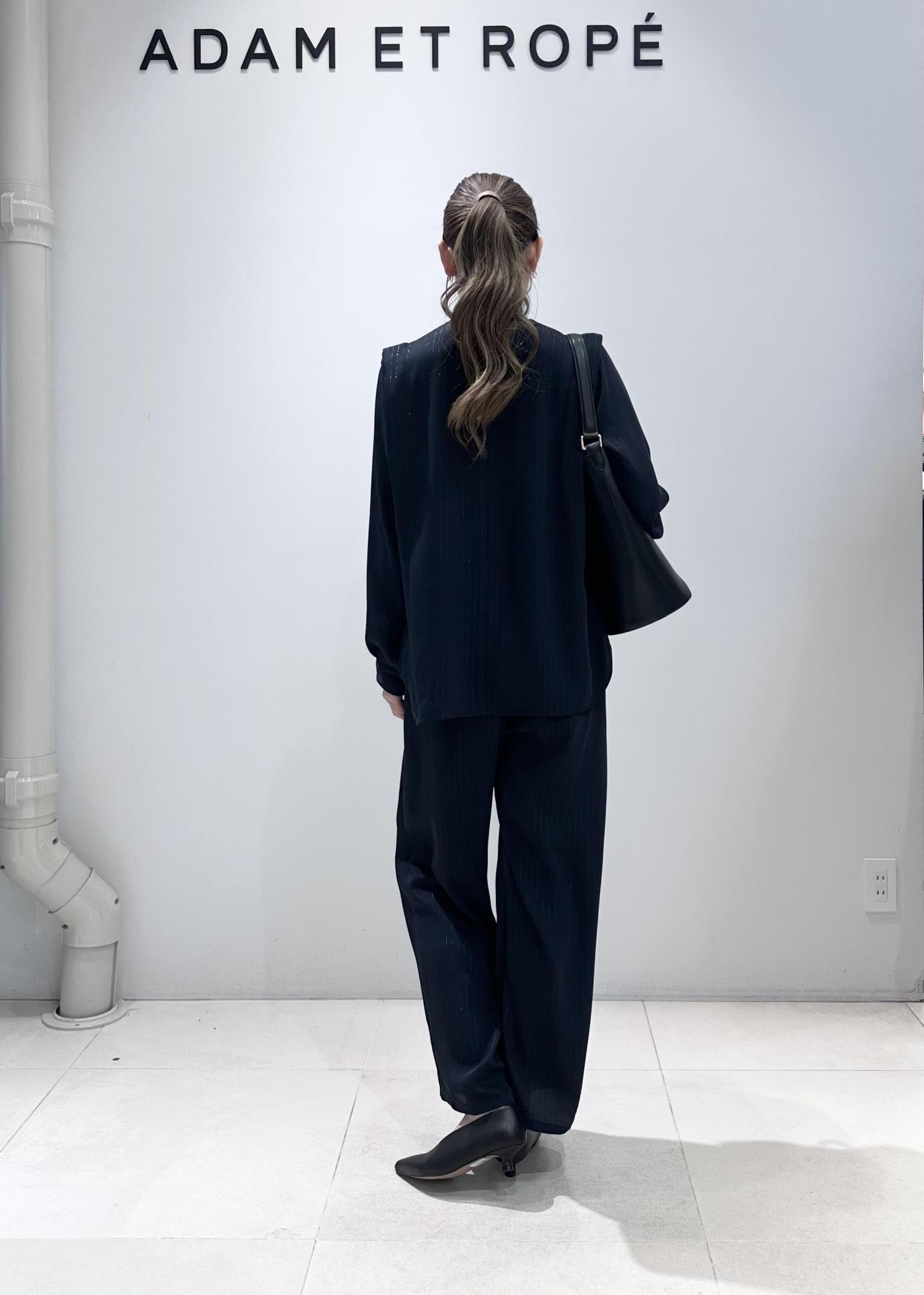 LE CERCLE par ropéラメストライプ2WAYヘムタックブラウス/セットアップ対応チャコール / F¥9,350レビュー襟元がファスナーなので