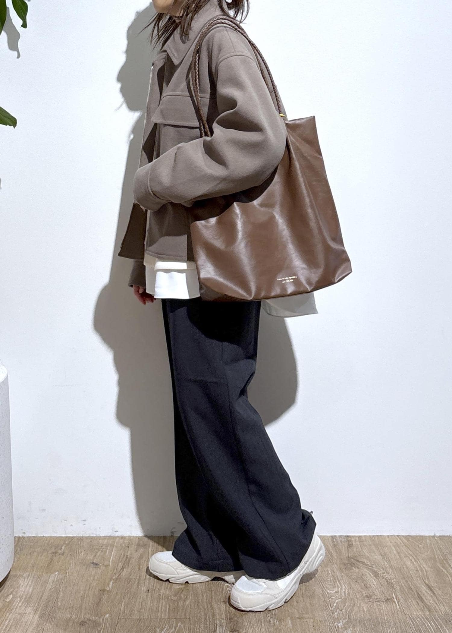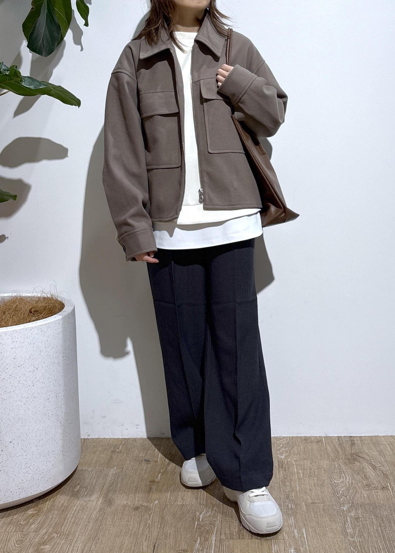オーバーサイズで自然に体型カバーしながら、インナーにハイネックニットなども着用できるので、寒い日も長い間楽しめます。 -