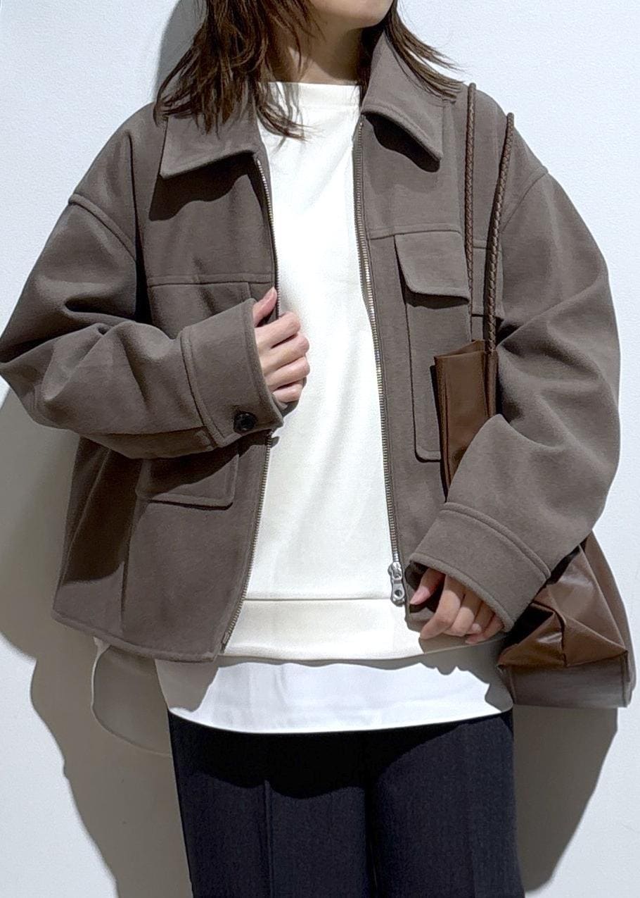 暖かみのあるジャージメルトン素材のジップブルゾン。