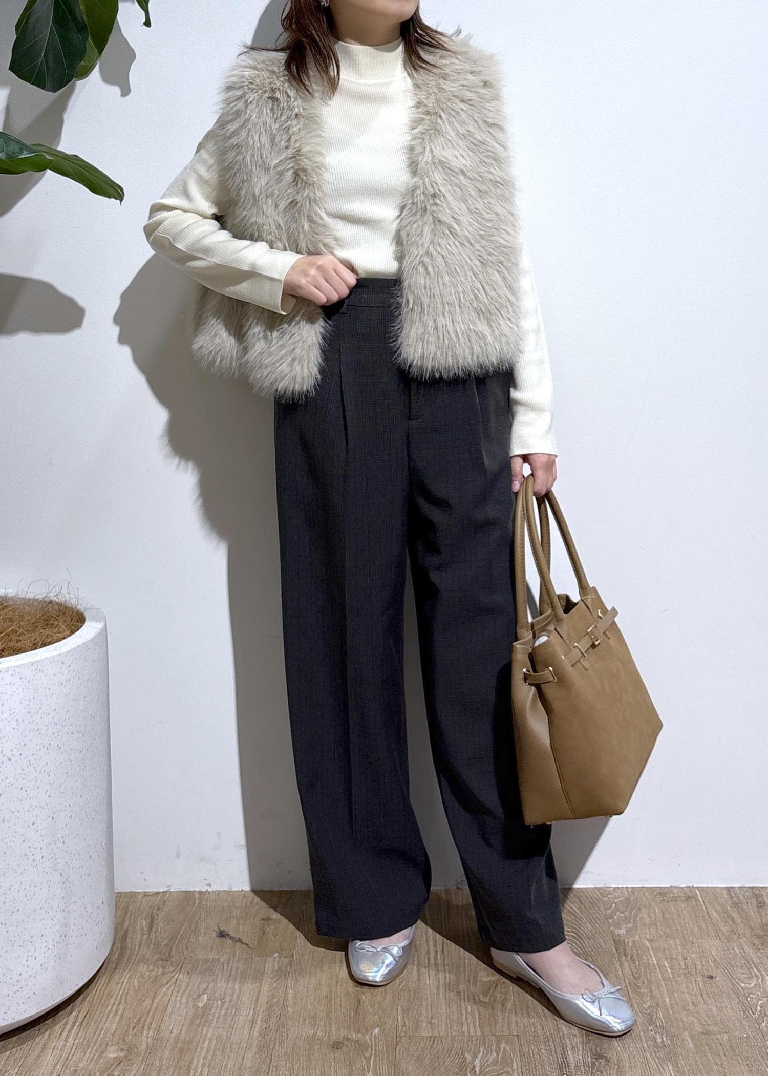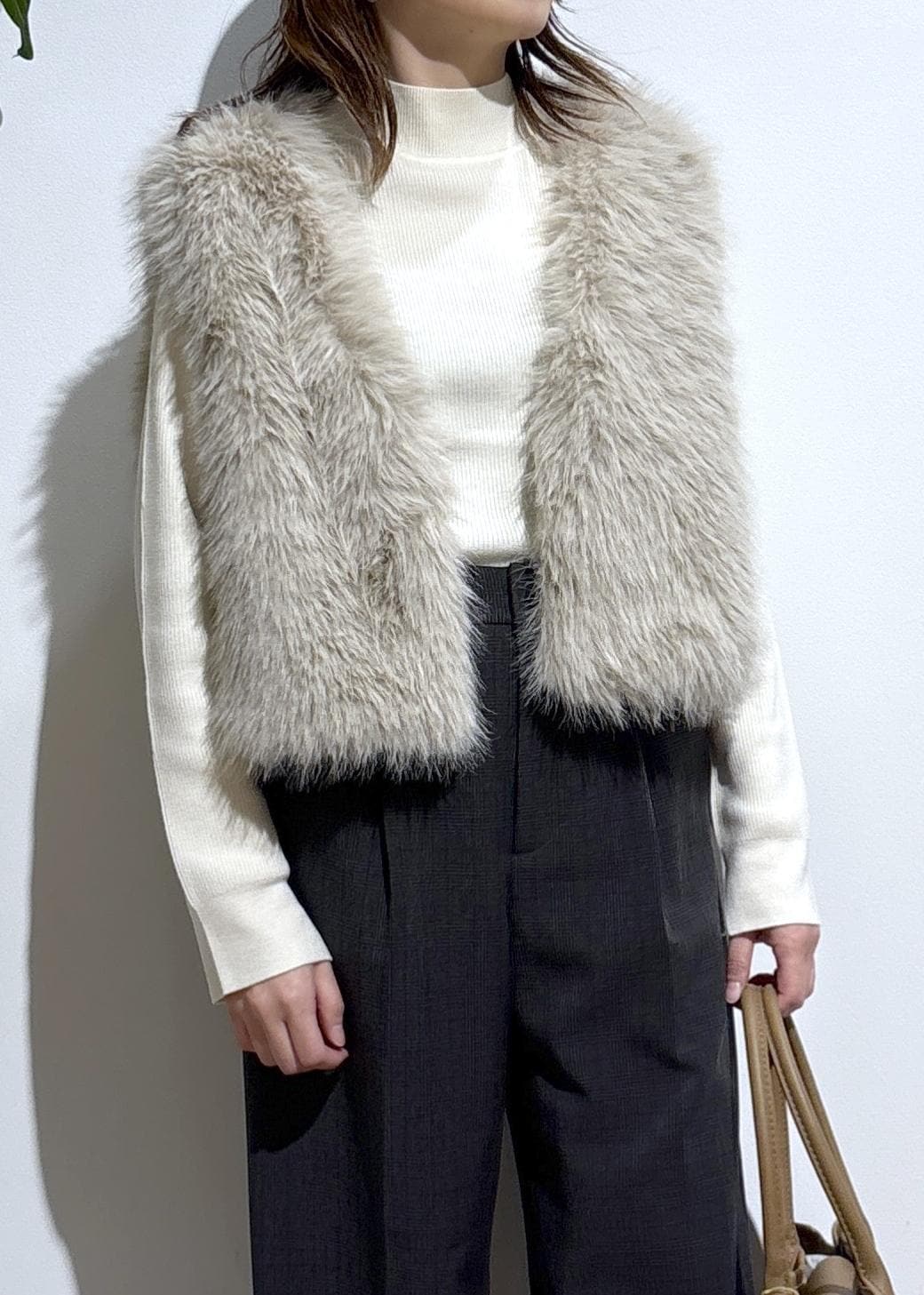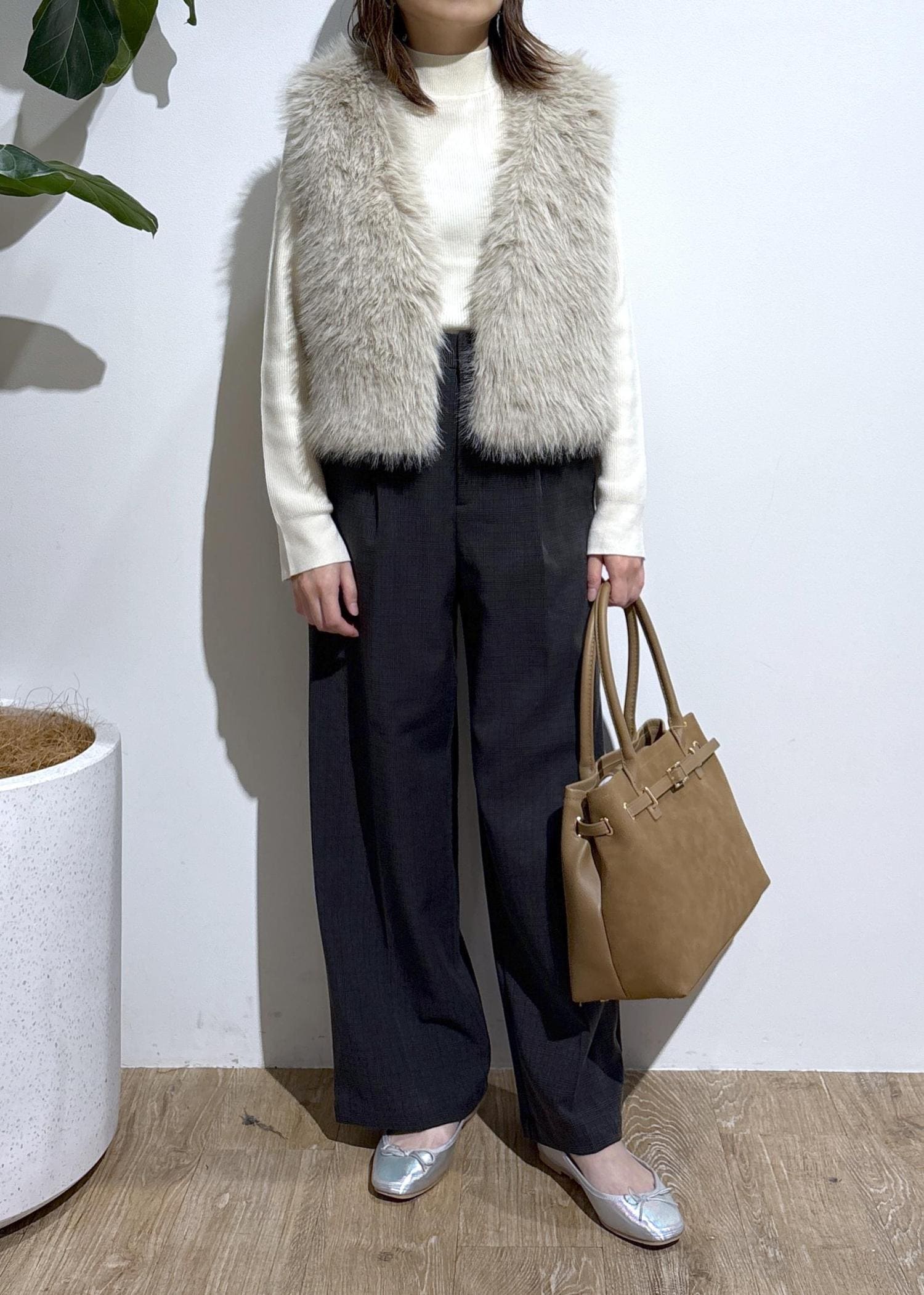ふわふわのフェイクファー素材のベストを使って、大人きれいめコーデにしてみました♩