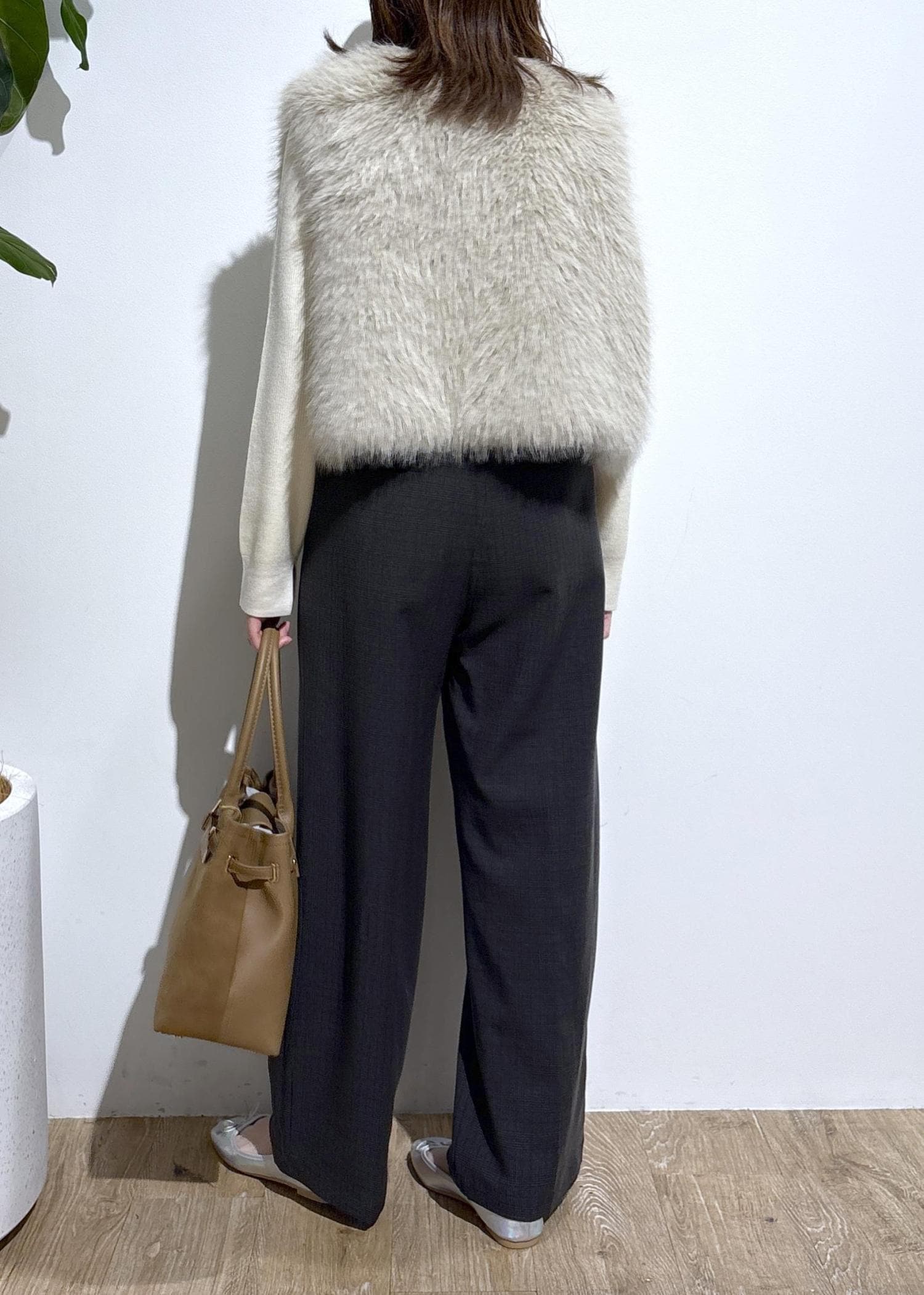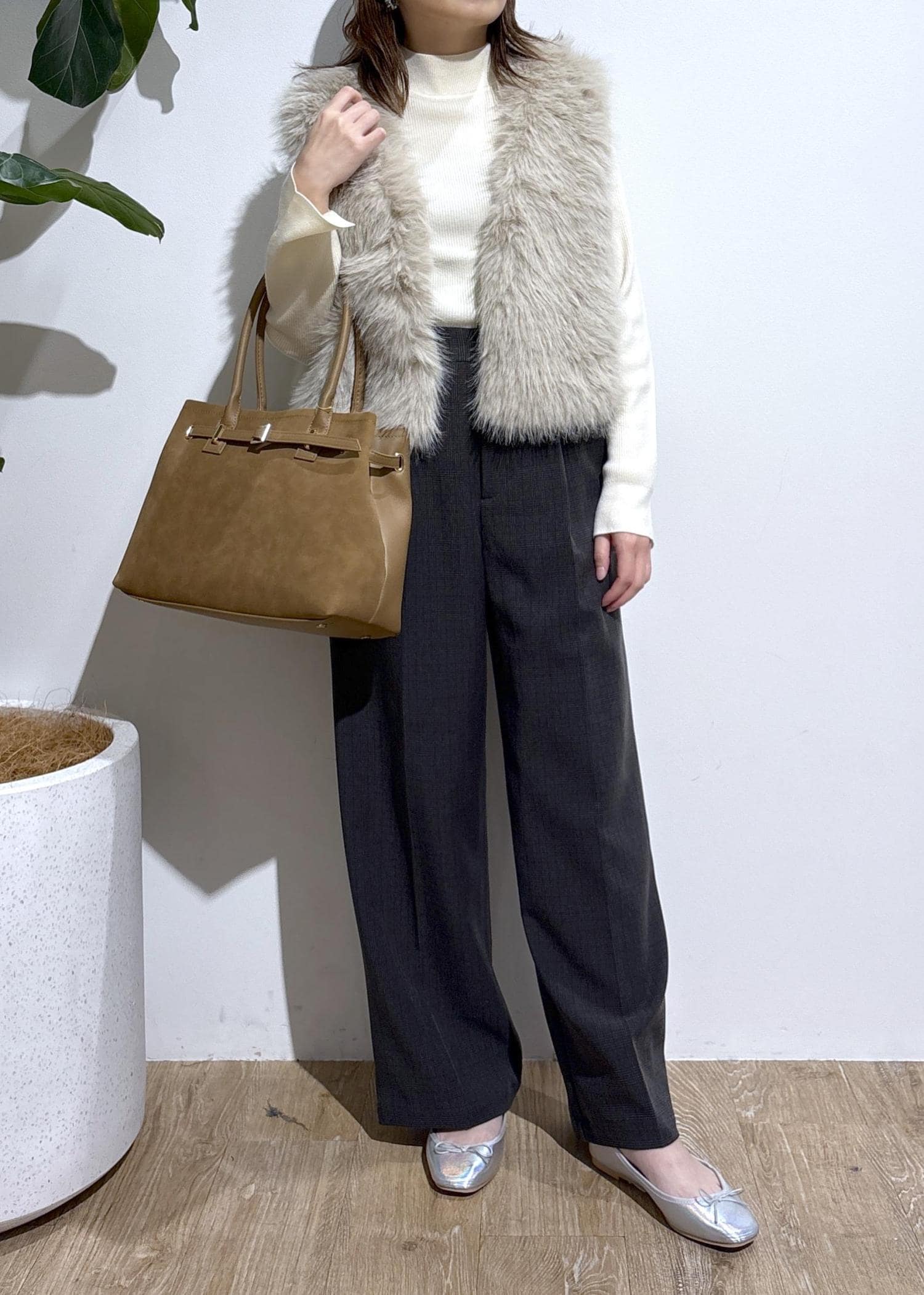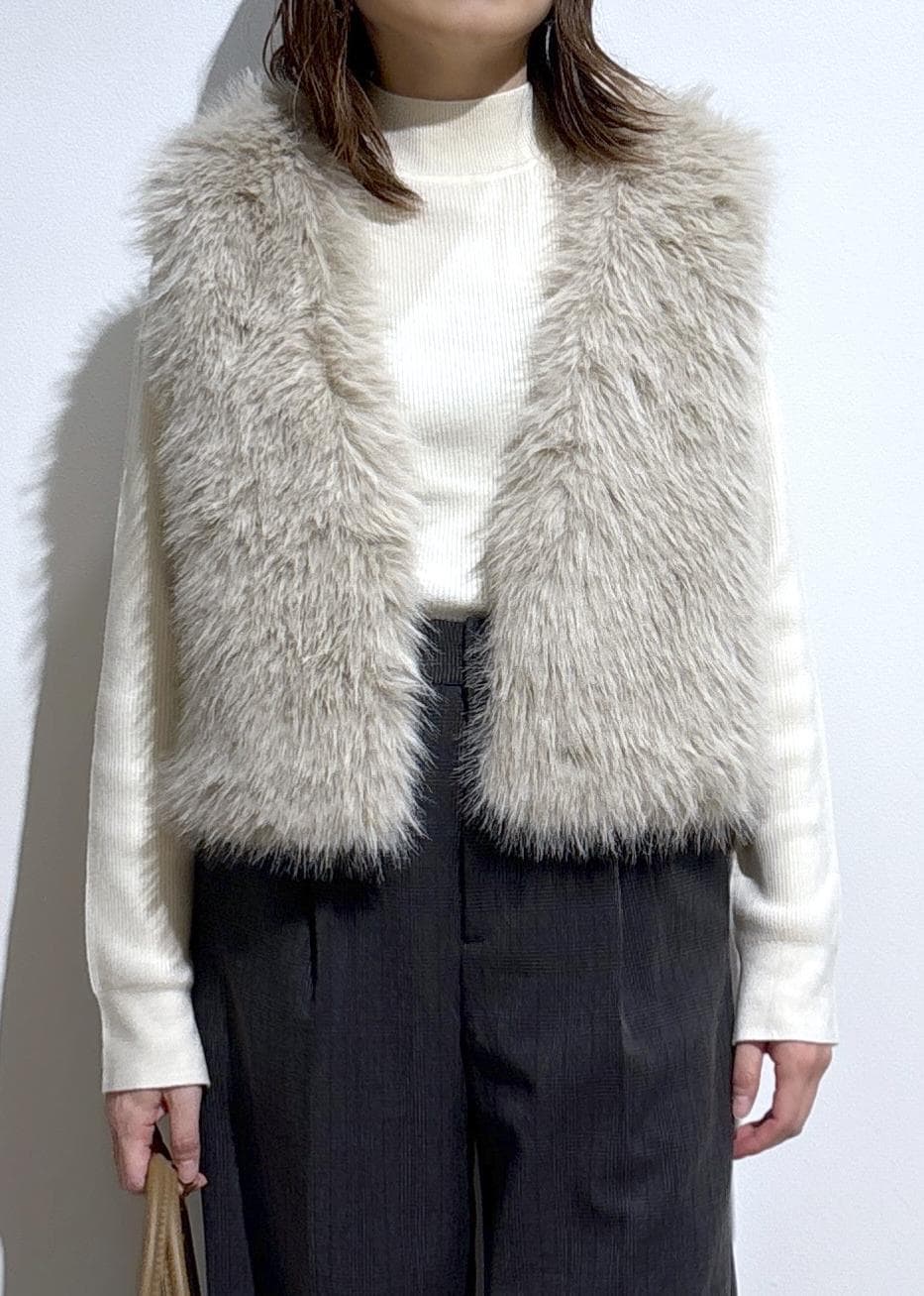 ふわふわのフェイクファー素材のベストを使って、大人きれいめコーデにしてみました♩