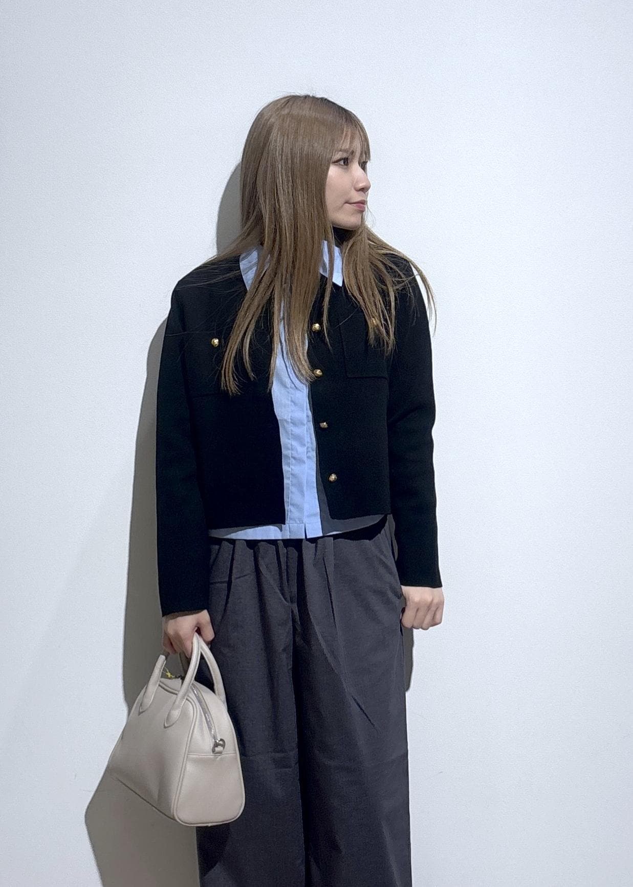 カーディガンはもちろん、ボタンを閉めてプルオーバーや肩掛けなど着回し力抜群です! -
