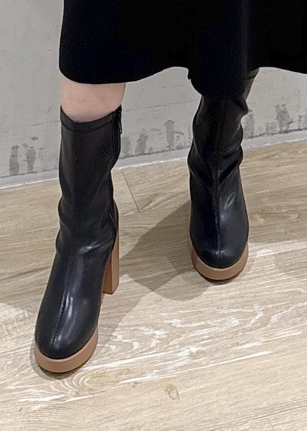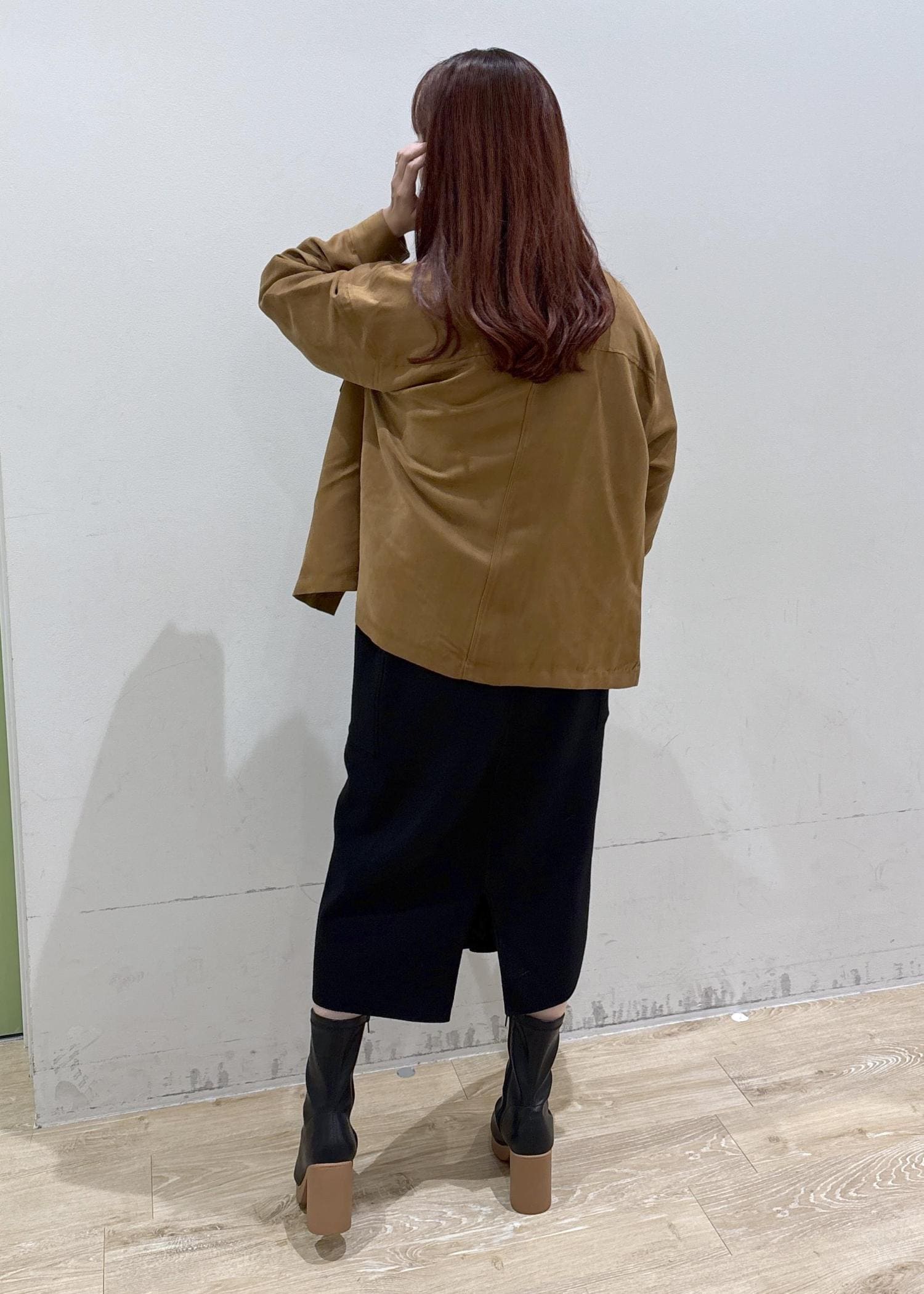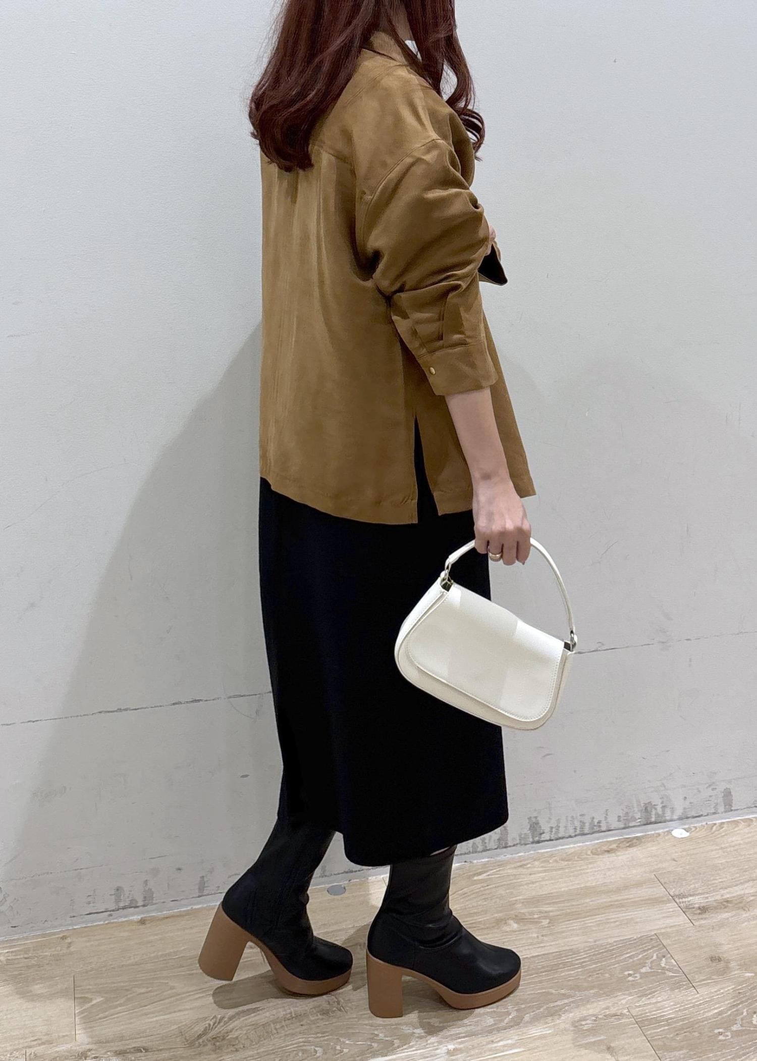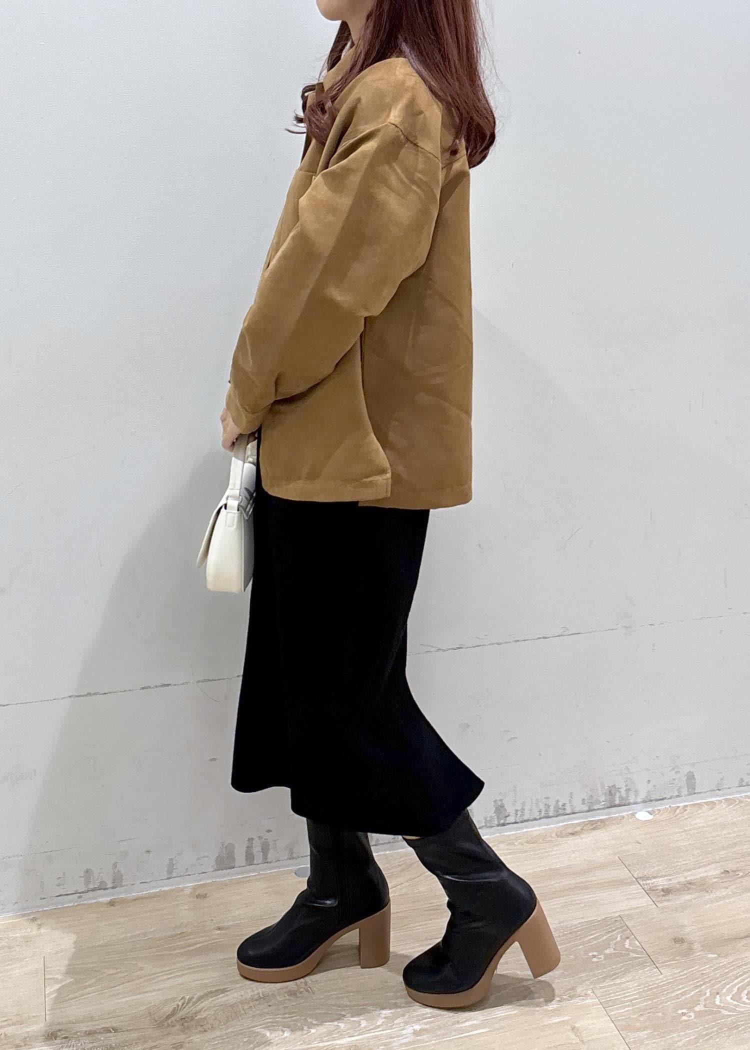 足元はヒールブーツでスッと縦ラインを強調してスタイルアップを意識しました。