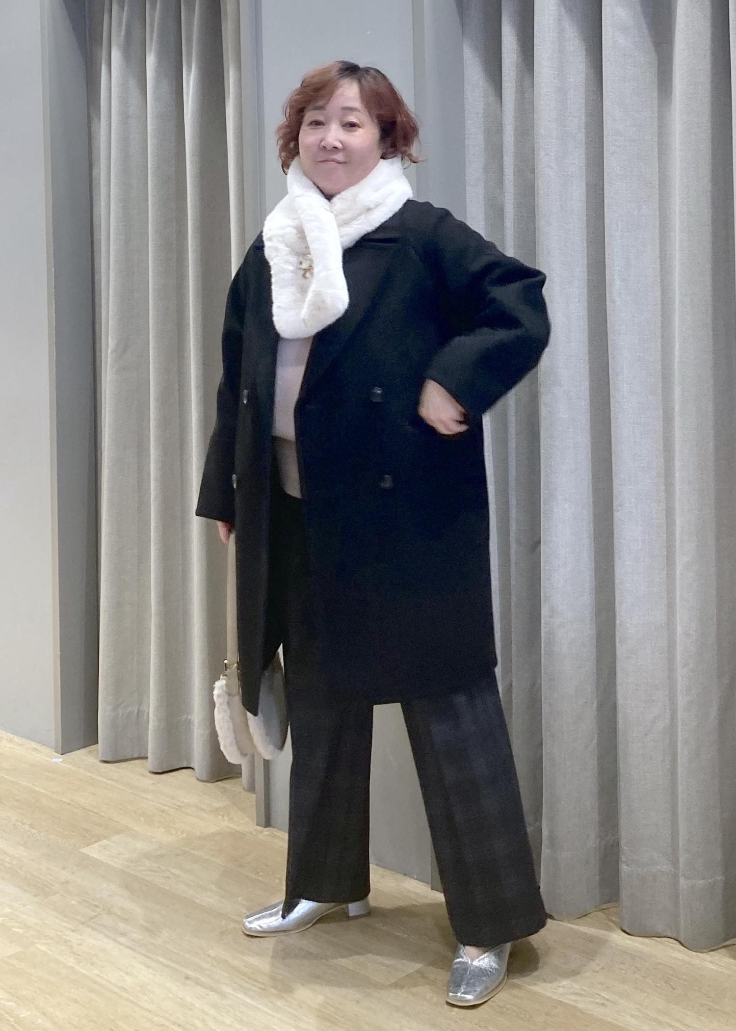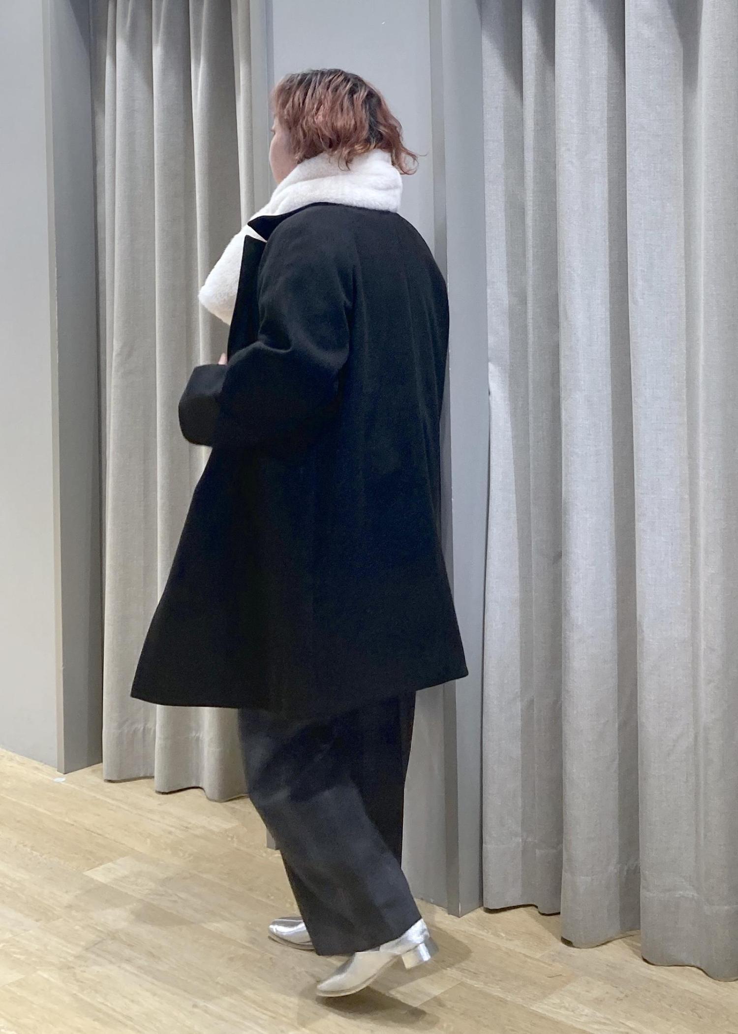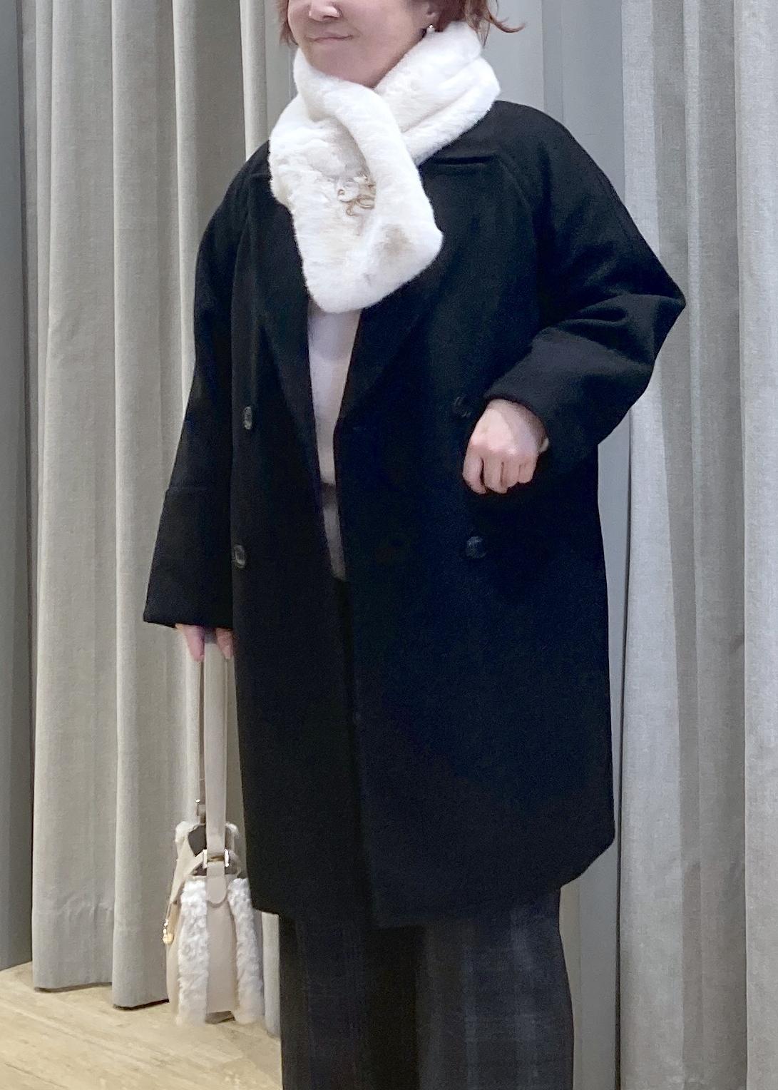 ティペットを付ければふわっと可愛げも出て、寒い日も気軽に出かけたくなる組み合わせです。