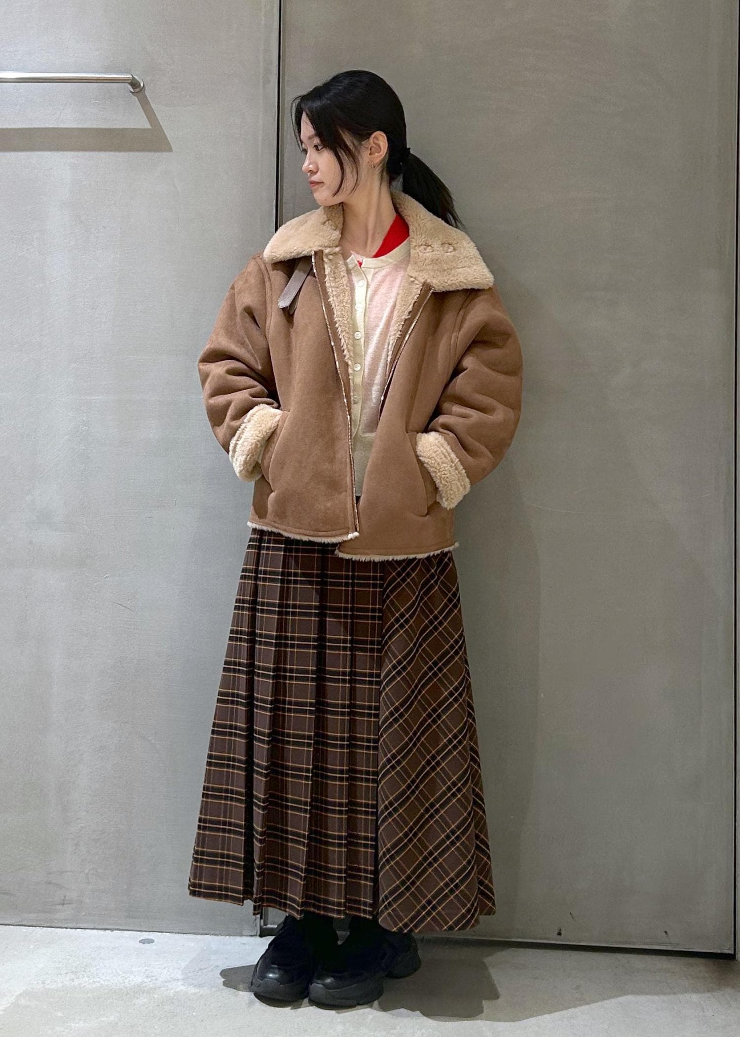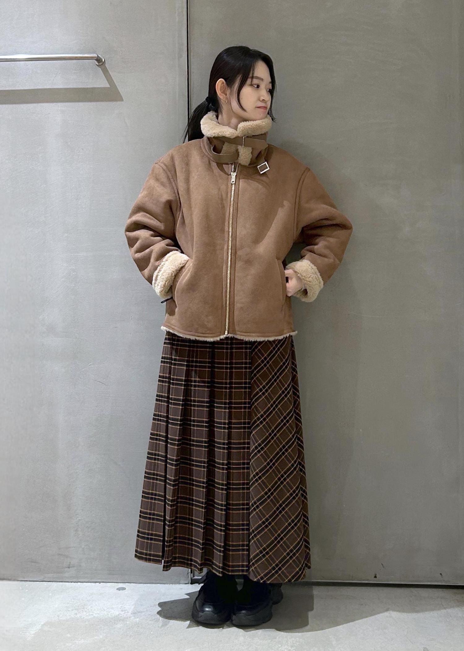 ムートンは羽織りで着ても全部閉めて襟を立てても◎
