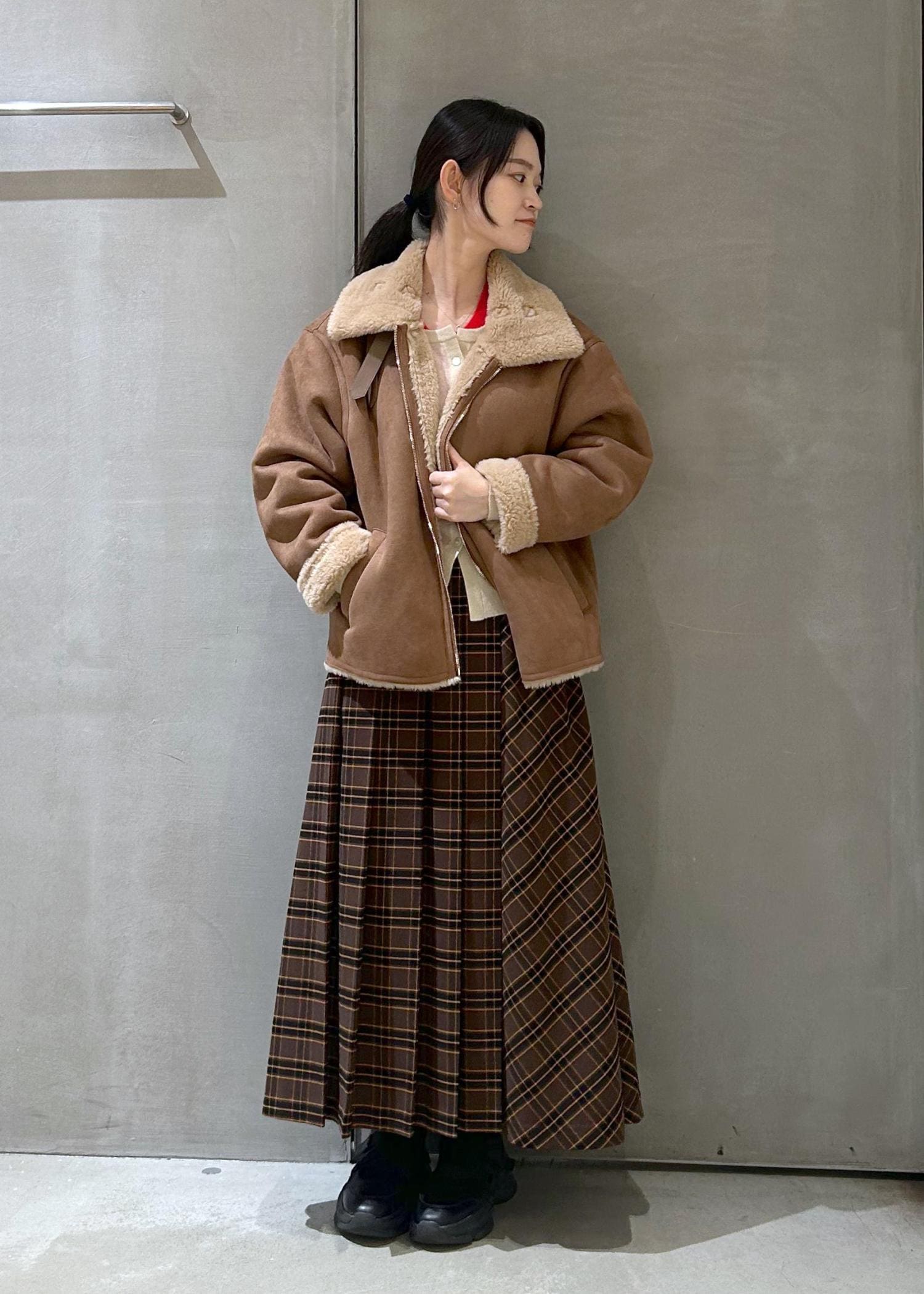 LE CERCLE par ropéフェイクムートンブルゾンダークブラウン系 / F¥15,400レビューフェイクムートンですが内側がボアになっていて柔らかく、1枚でとても防寒性があります!