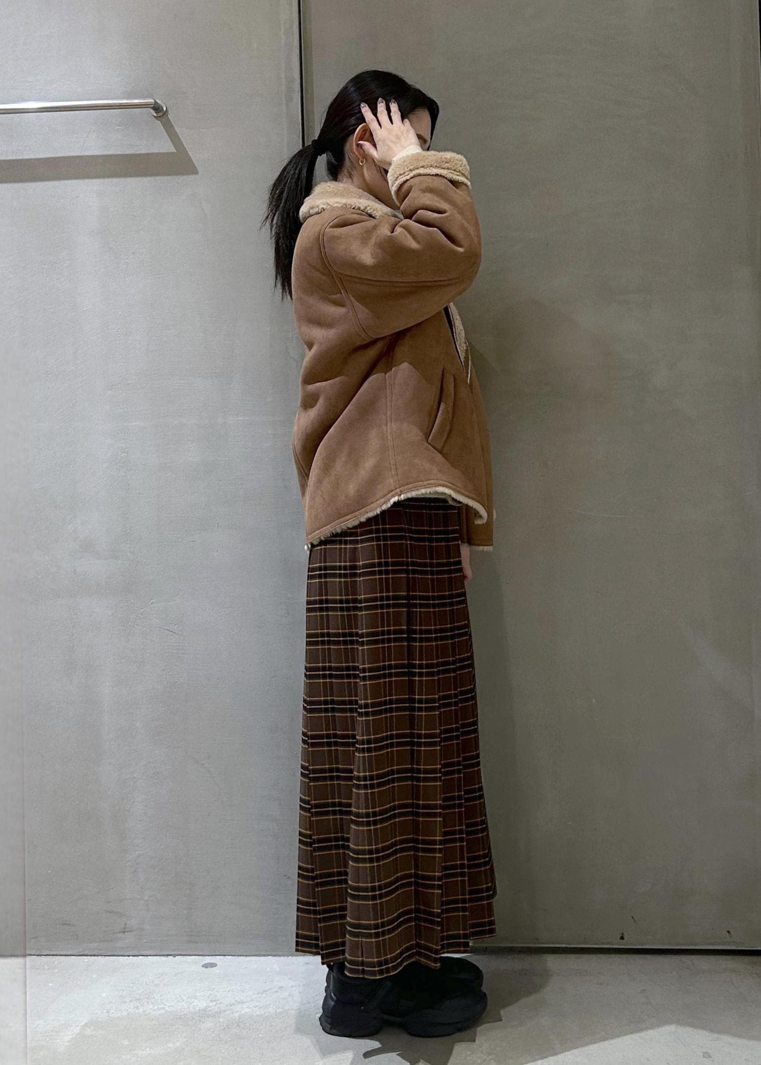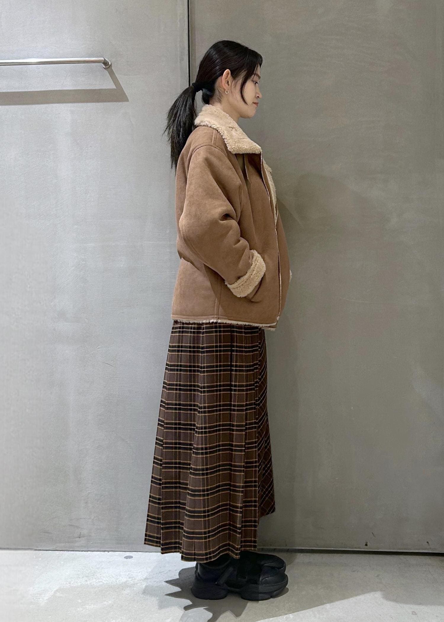 チェック柄のロングスカートで合わせました。