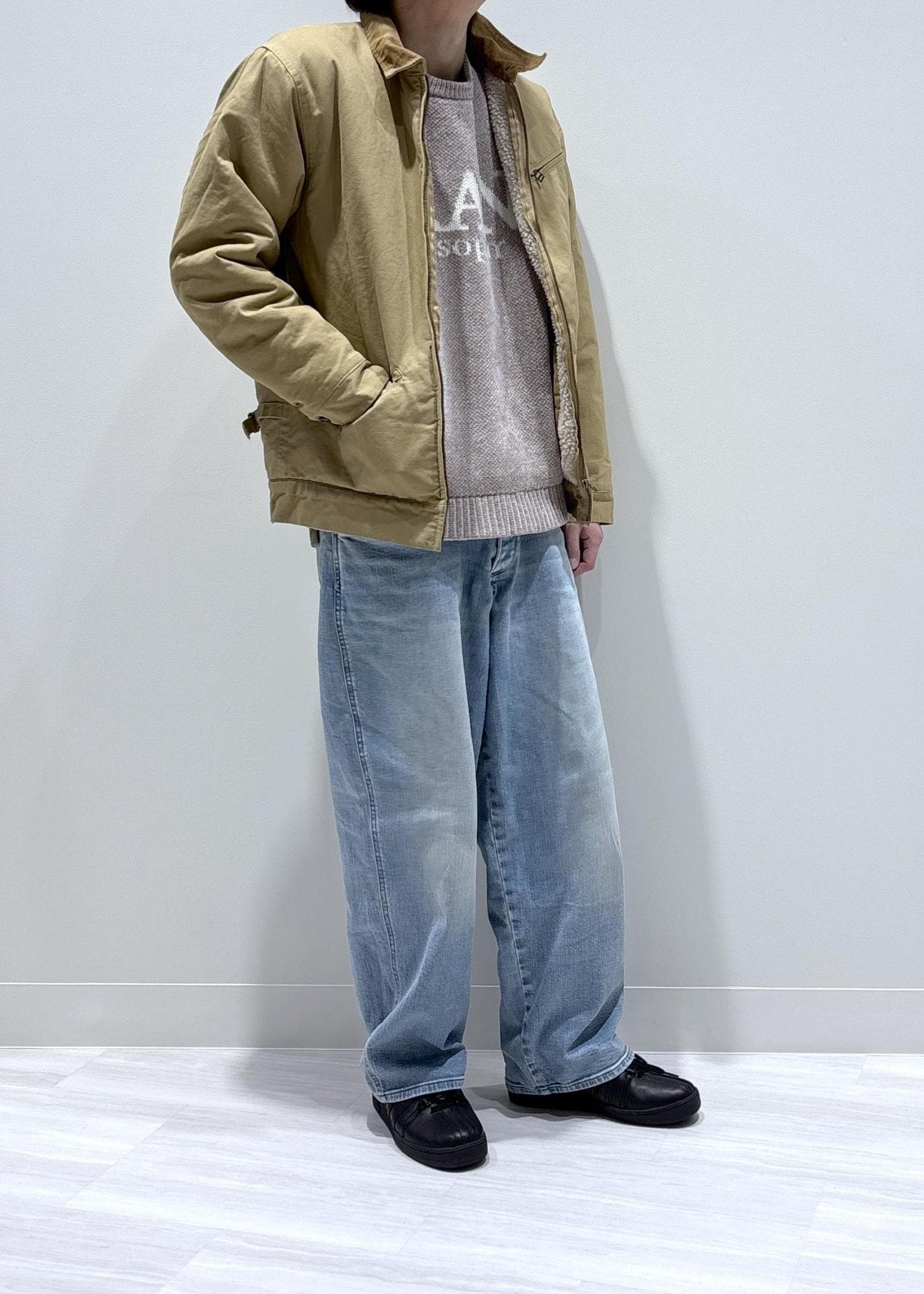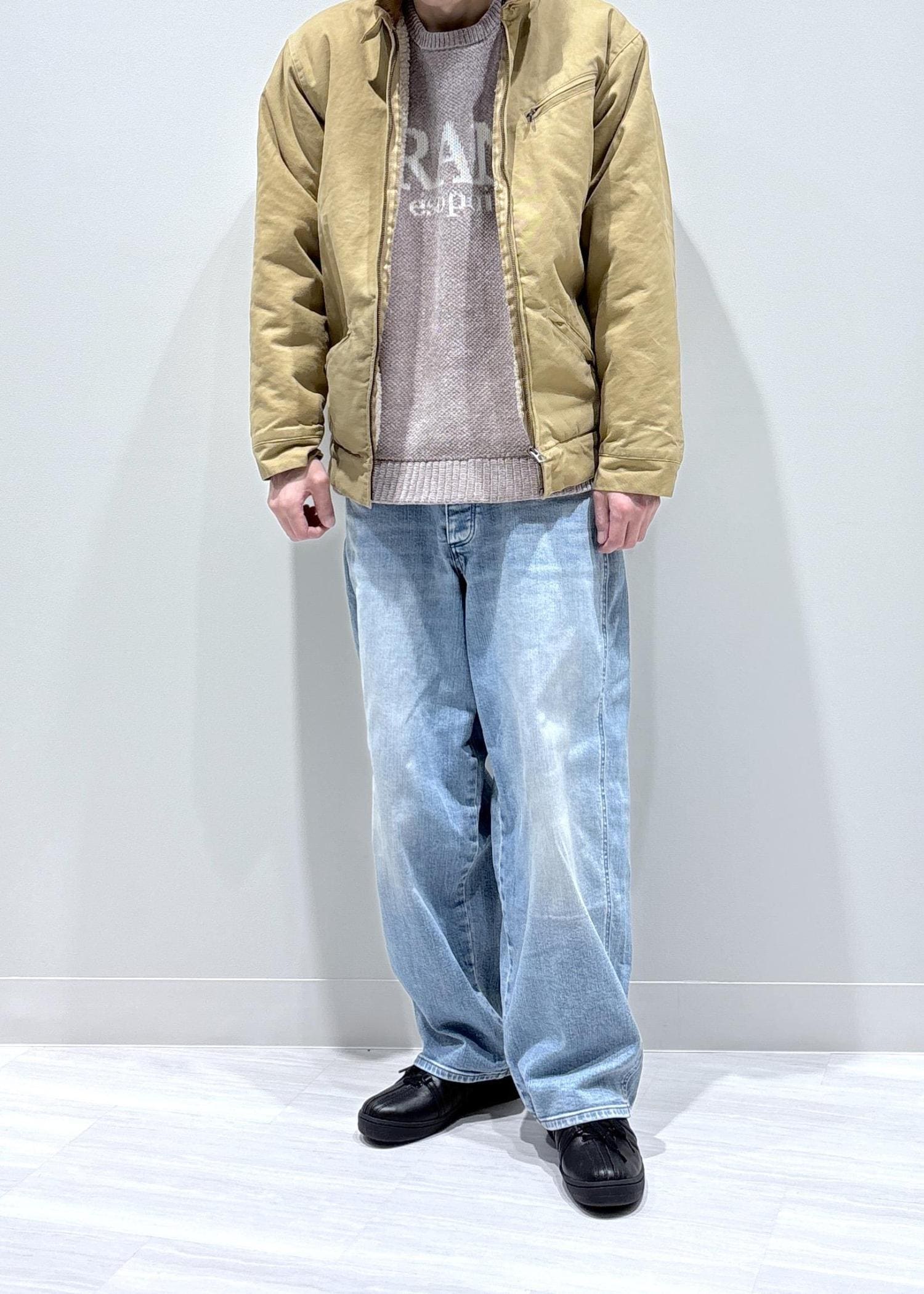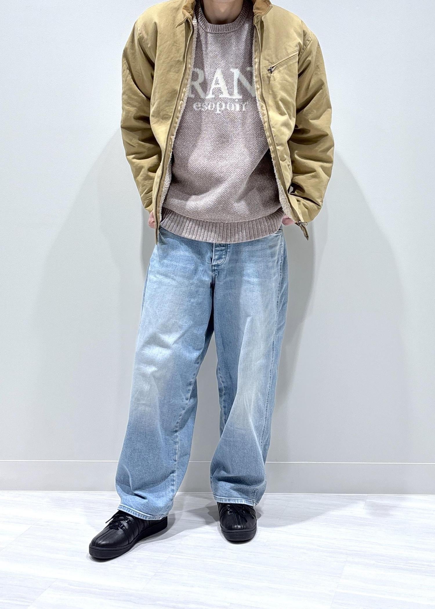 今回は中にモールニット、ボトムスはワイドデニムを合わせました。
