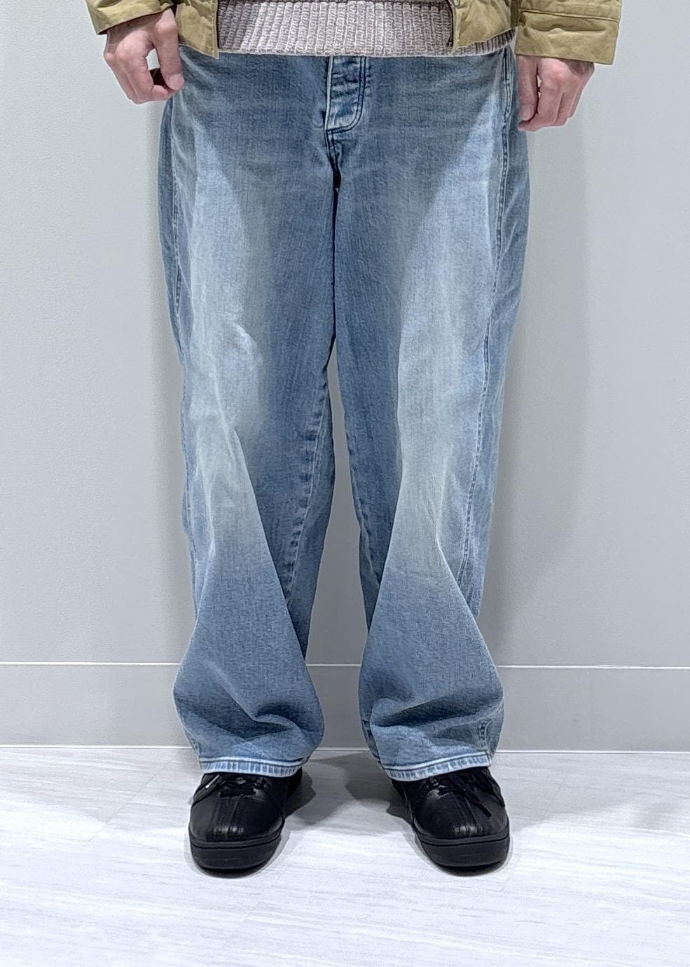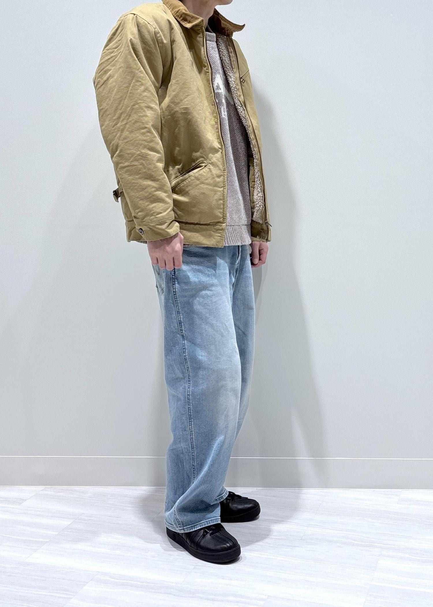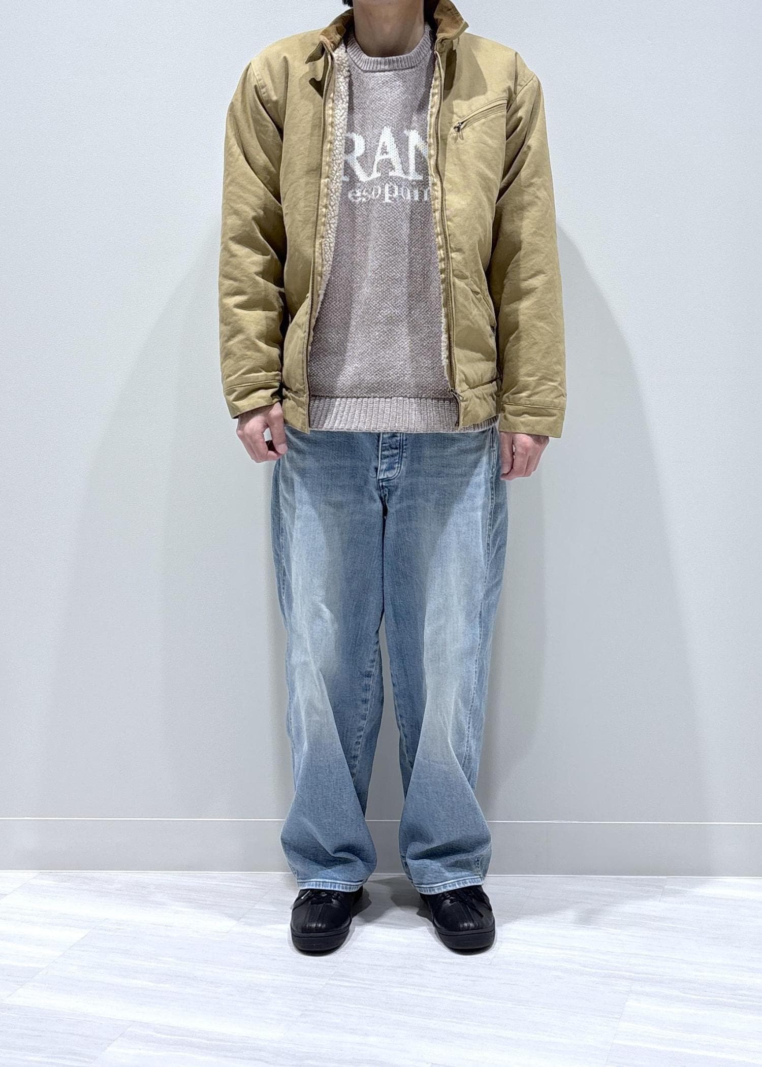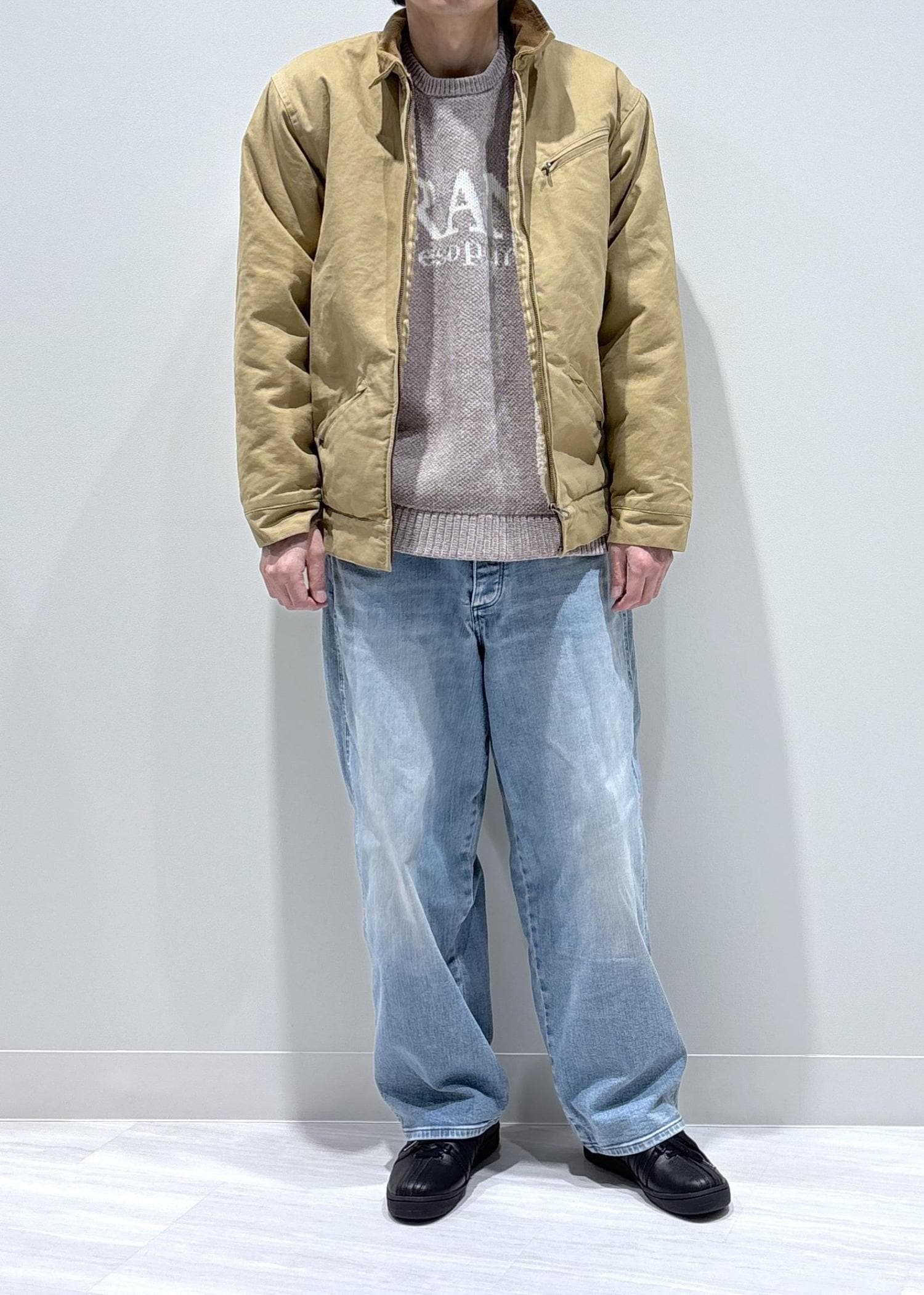 今回は中にモールニット、ボトムスはワイドデニムを合わせました。