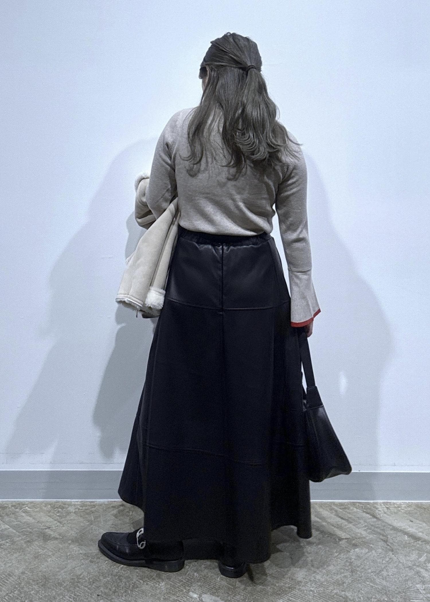 気回し抜群のフレアスリーブニットプルオーバーと高みえ抜群スカートと合わせて大人フェミニンに!