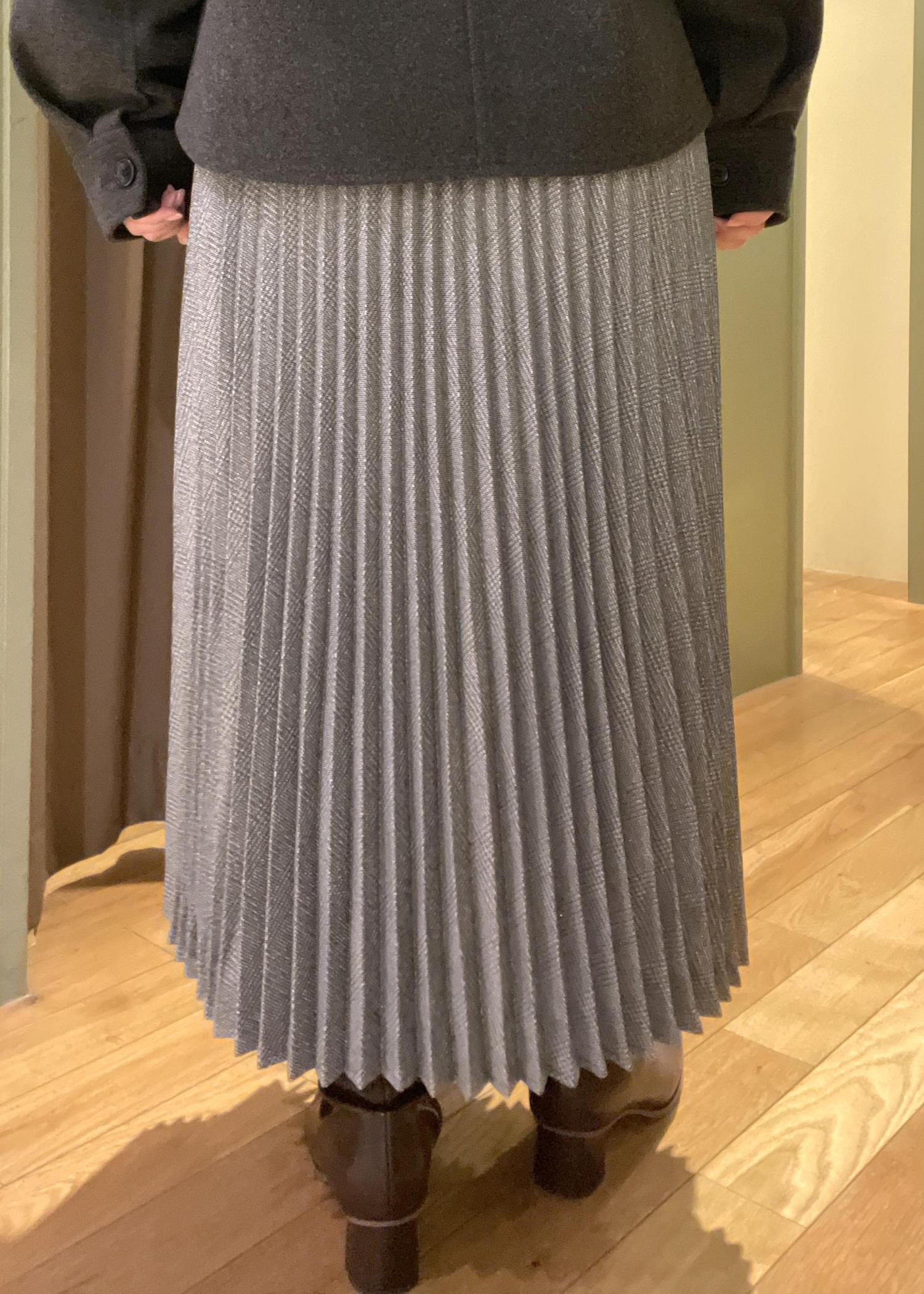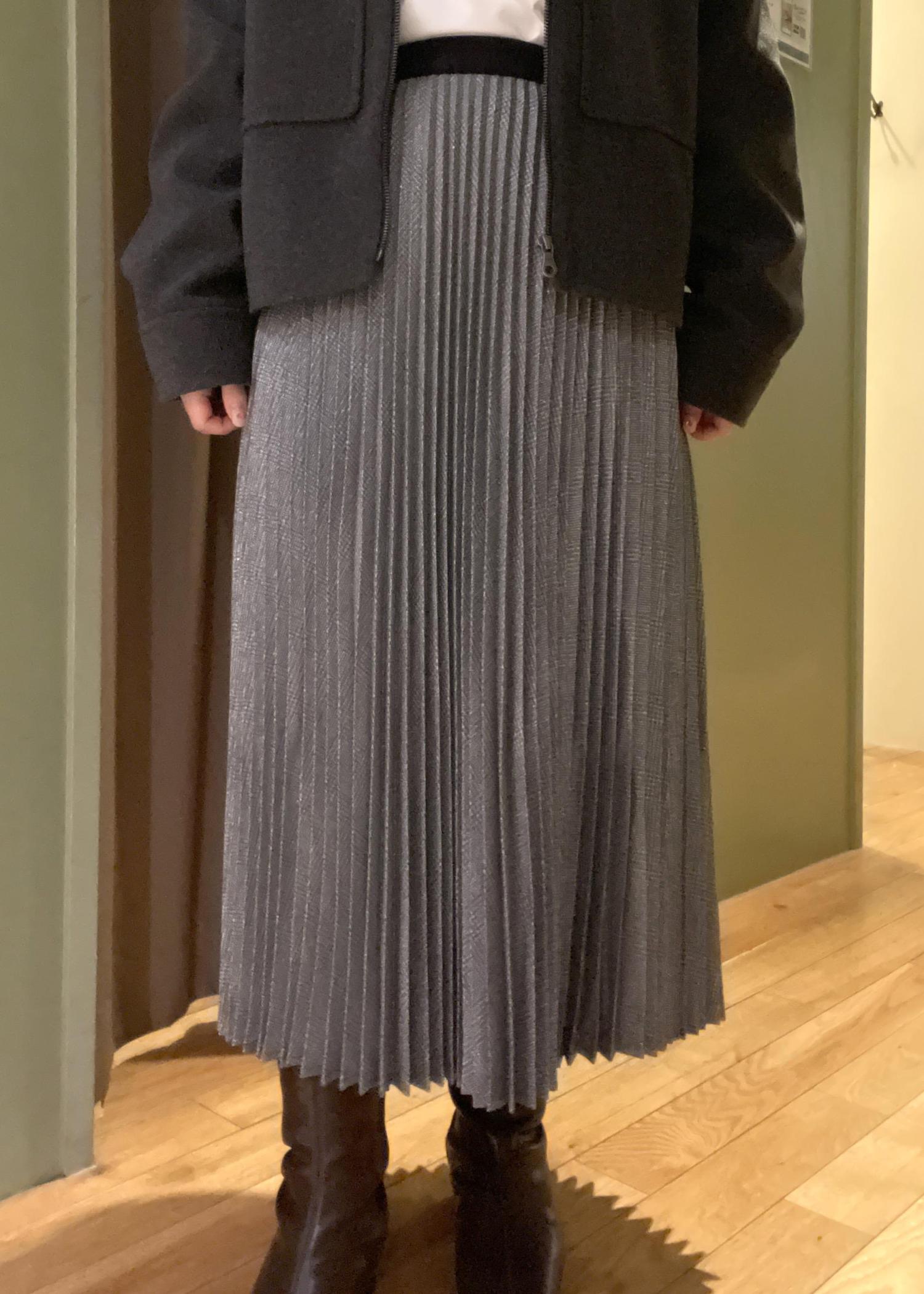 スカートの【ラメチェックプリーツスカート】はラメ糸を使用したグレンチェック柄の生地にプリーツ加工を施した素材になっており、動くとさりげなくラメがキラッと光る可愛らしいスカートです!!
