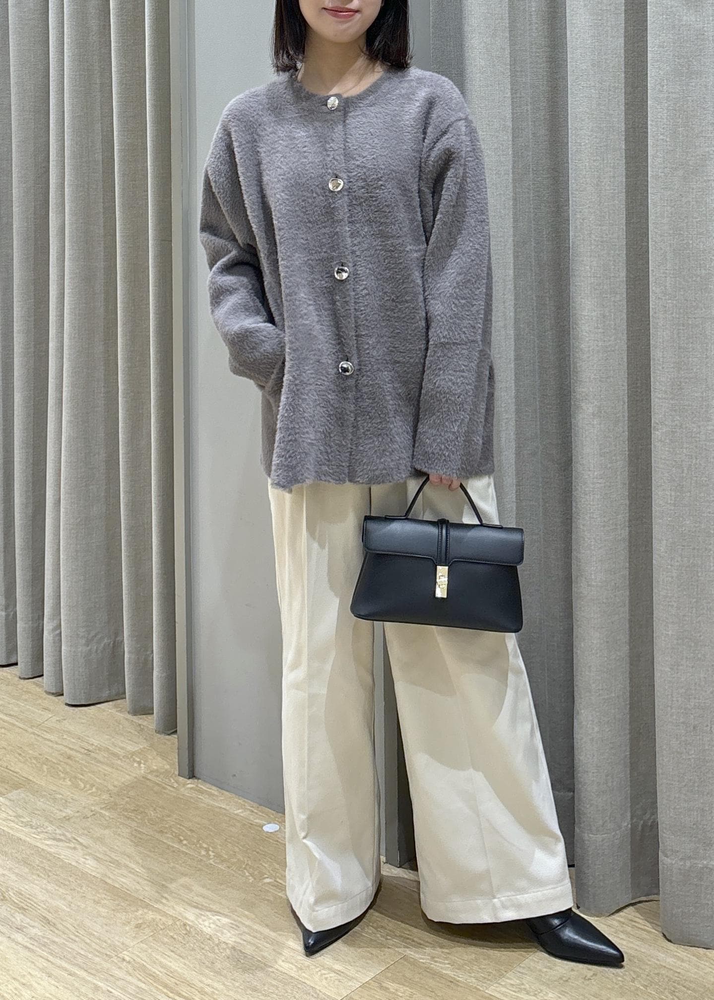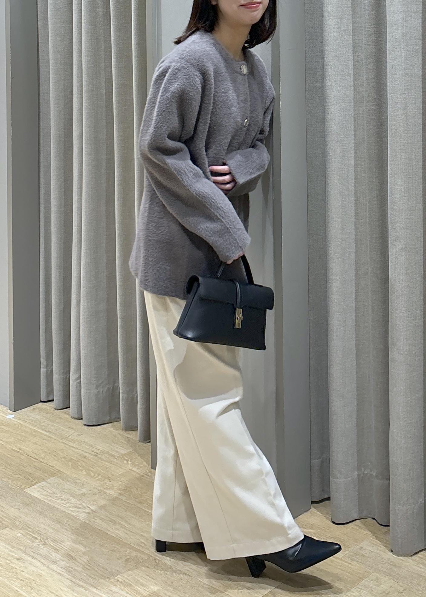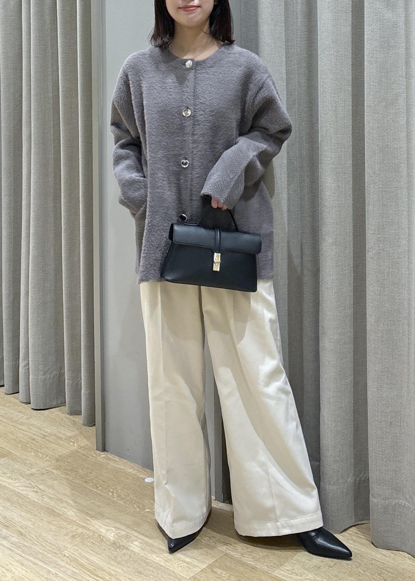 ミニフェザーニットコート×タックワイドパンツ