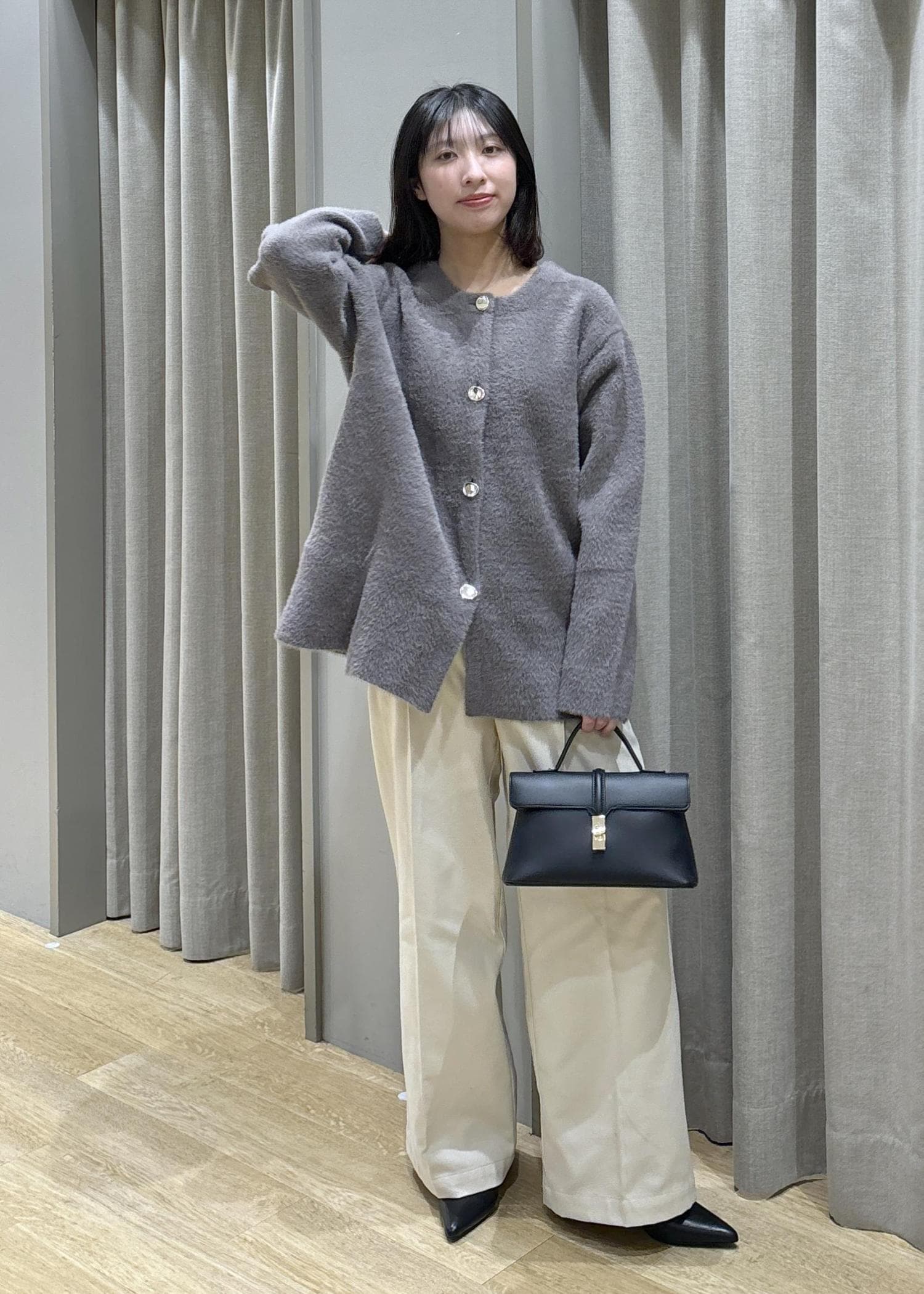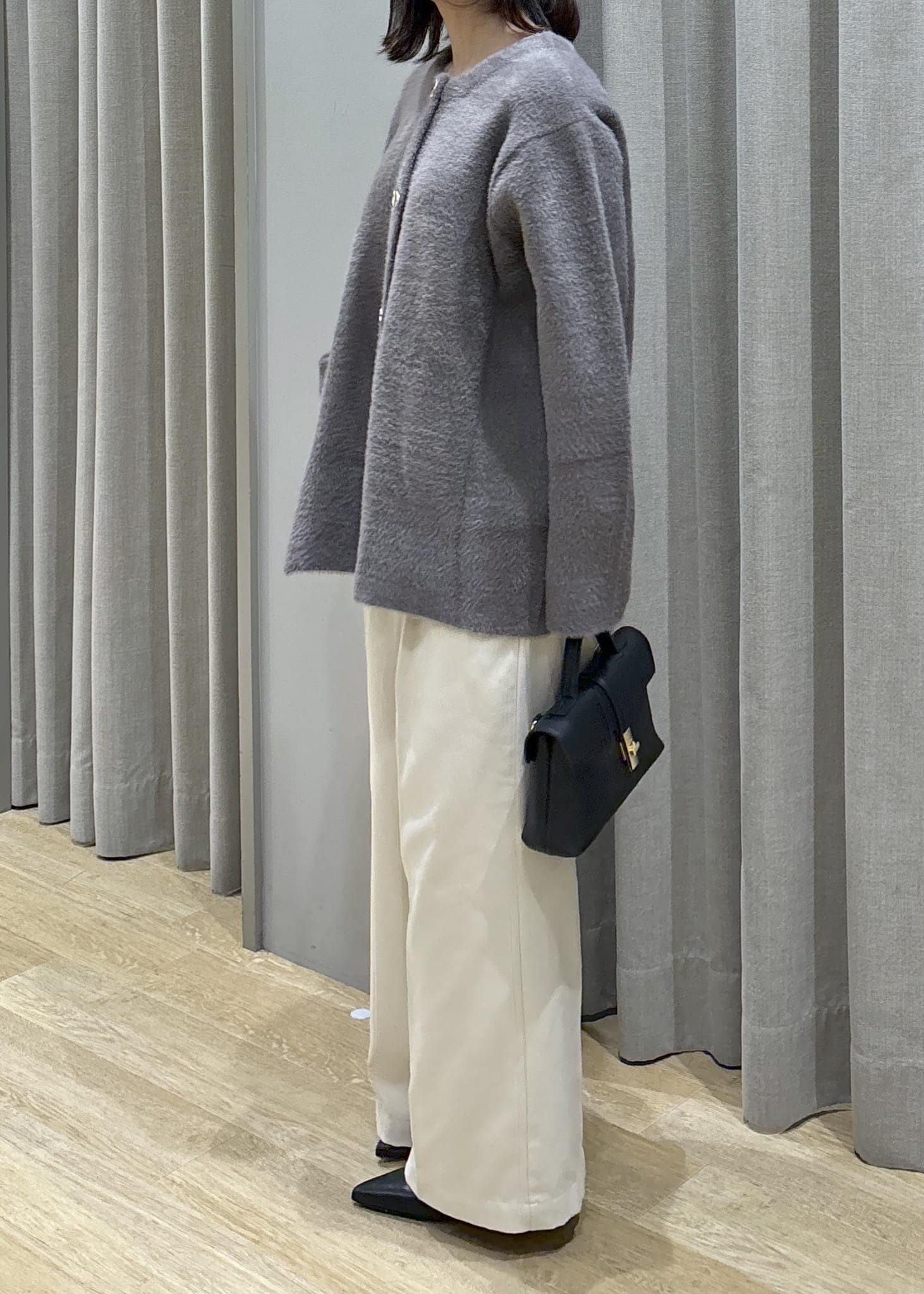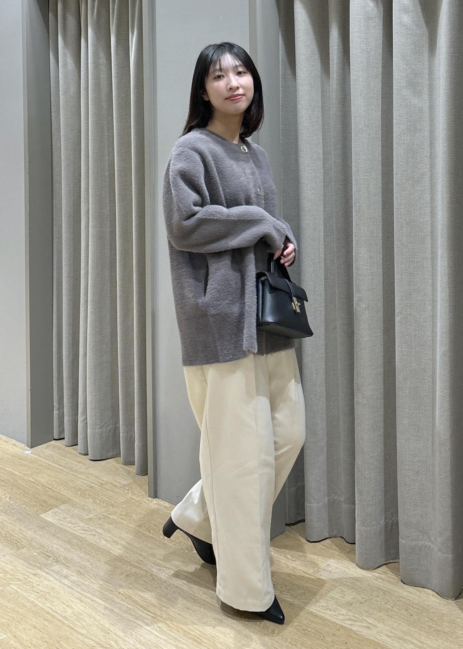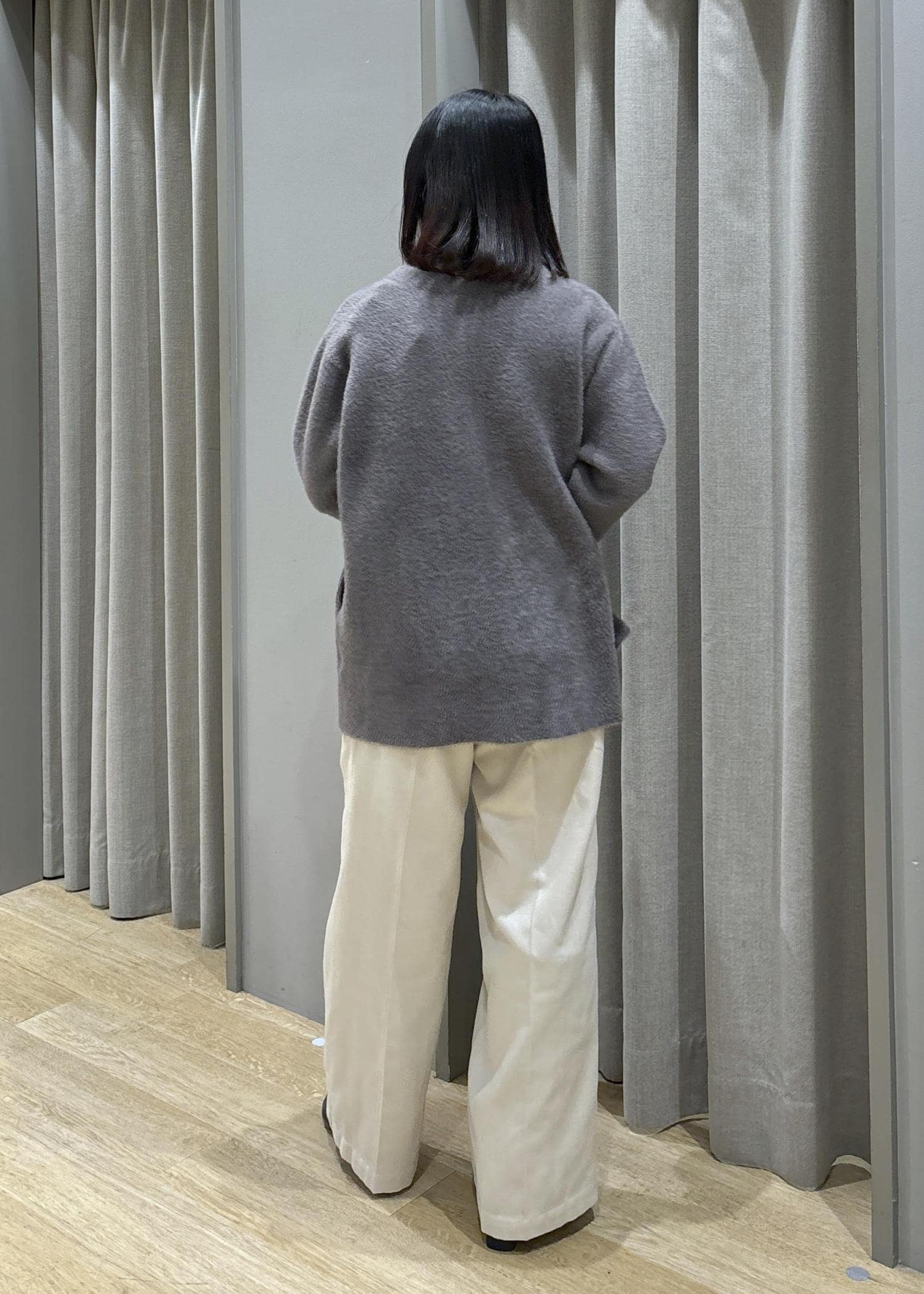 ミニフェザーニットコート×タックワイドパンツ