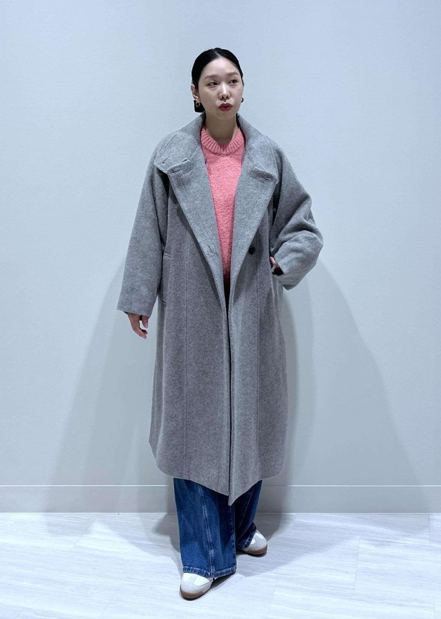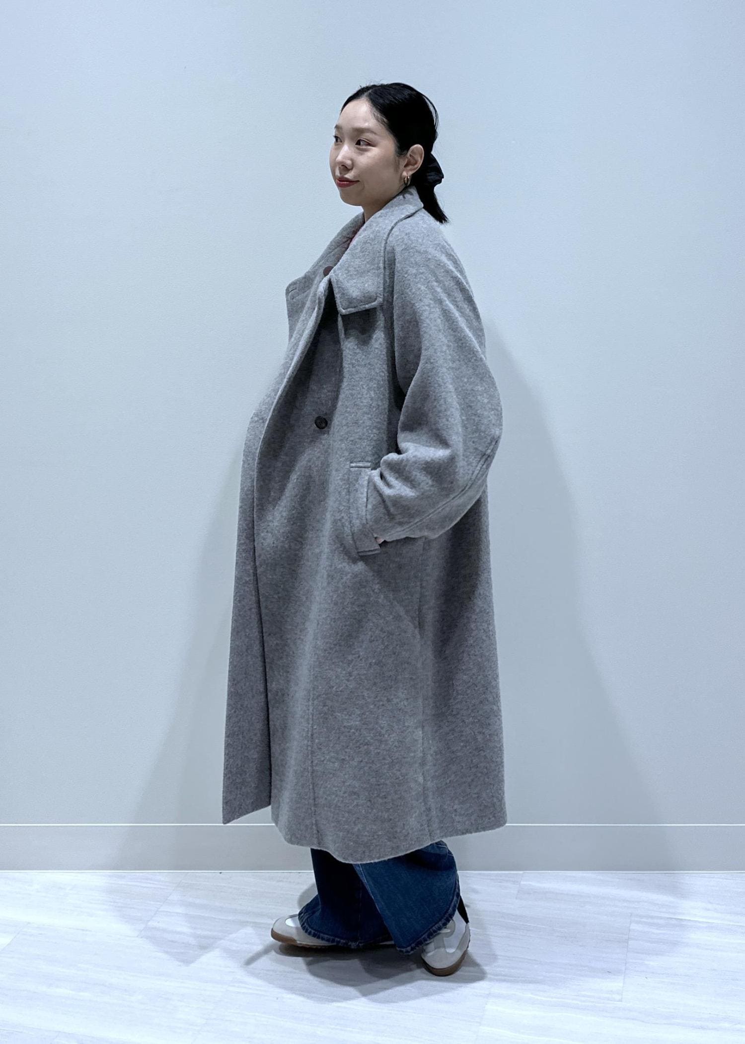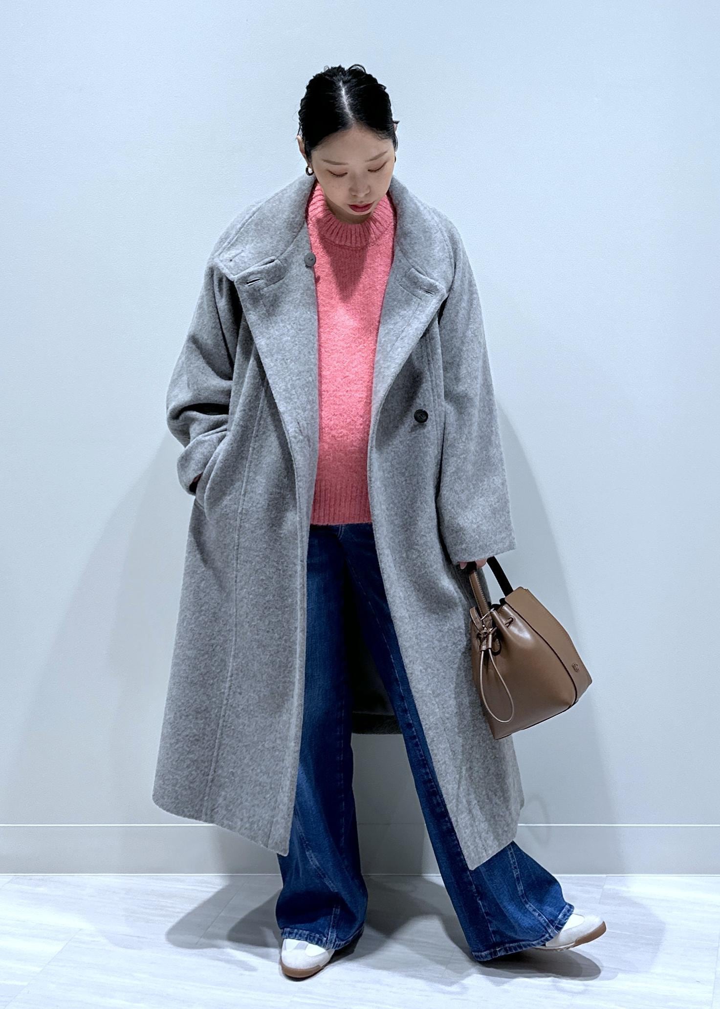 中に厚みのあるニットを着ても楽に着用していただけます。また、ロングコートの中でもとっても軽い素材で、ロングの重さもなくストレスフリーでおすすめです! -