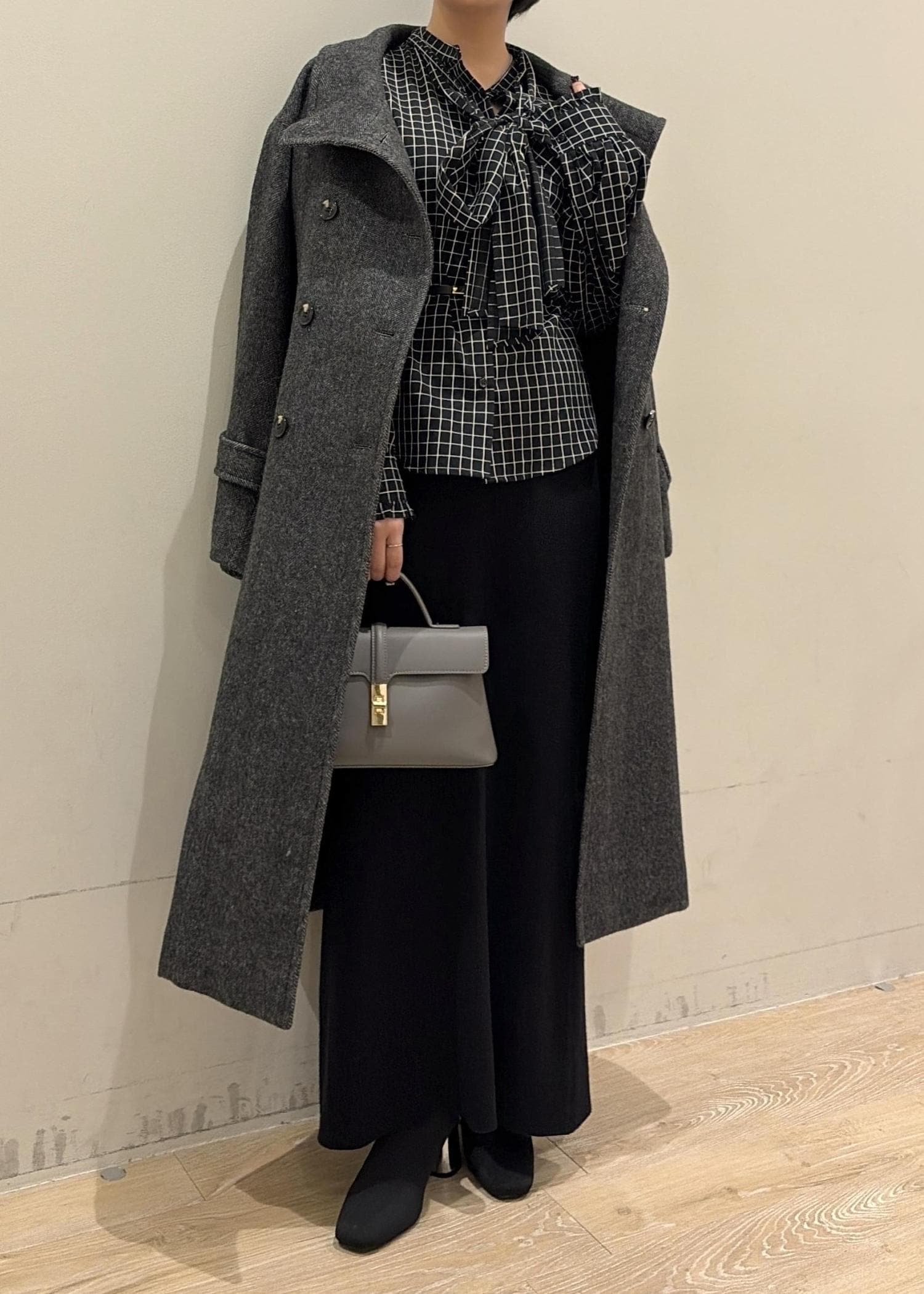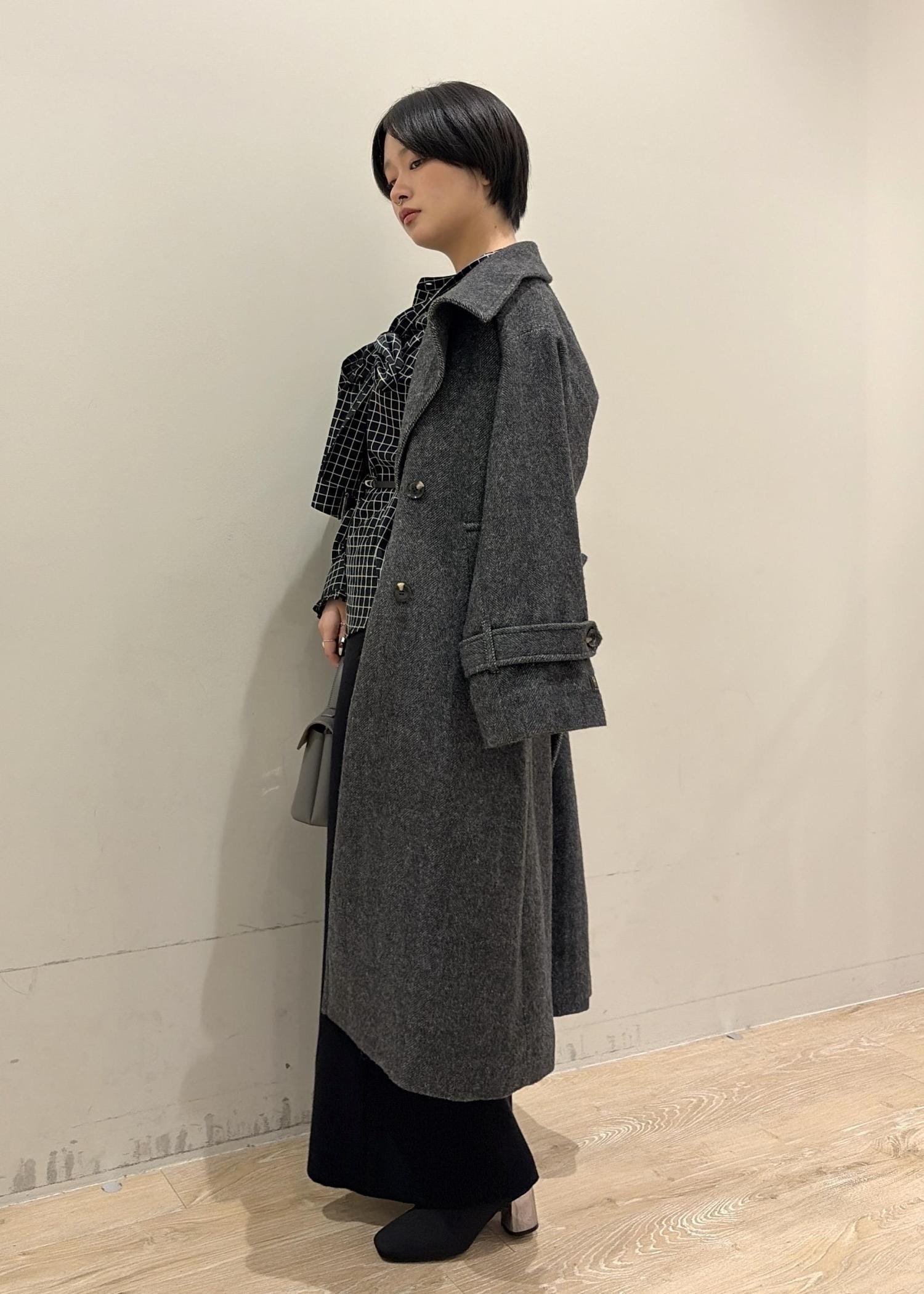 ロングコートで縦ラインを強調してスタイルアップしながら