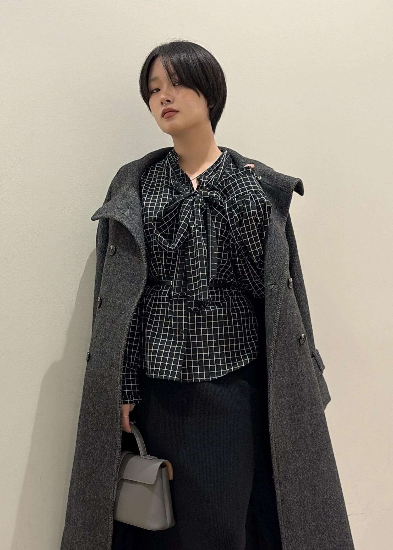 細かいチェックがモード感と知的な印象を演出してくれます! -