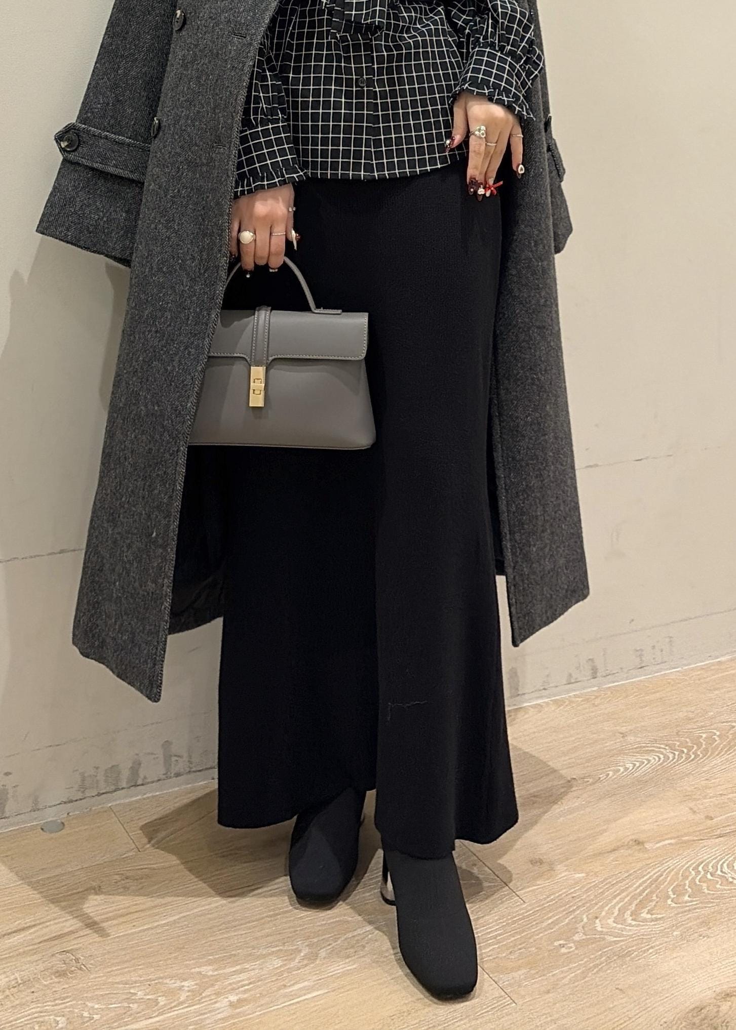 深みのあるグレーとブラックを重ねた洗練オールブラックコーデです!