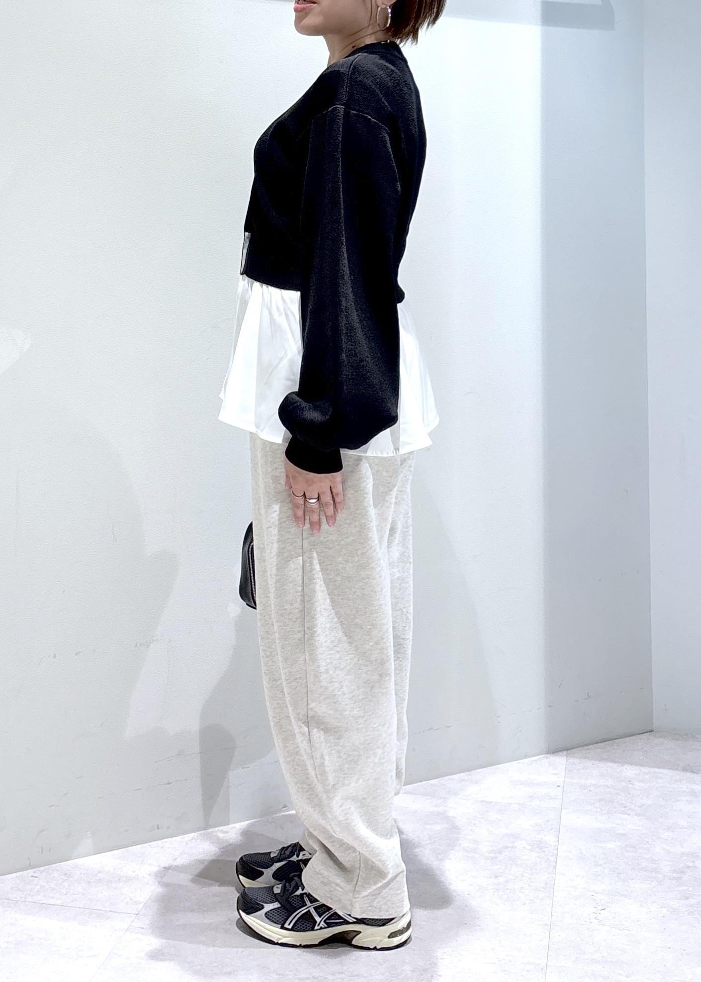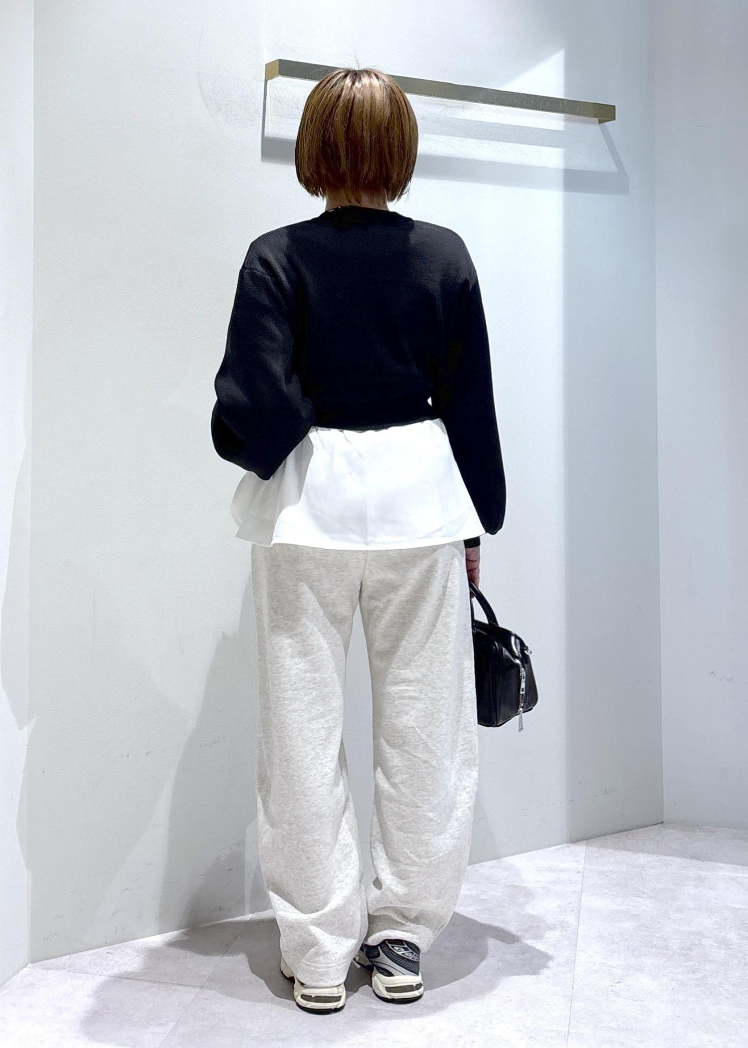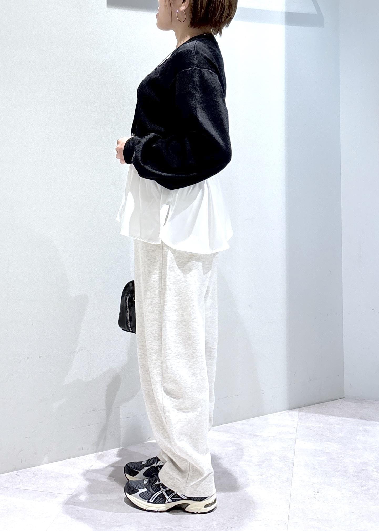カーブのかかったシルエットなので、低身長の私でもスッキリ見えできるスウェットです!