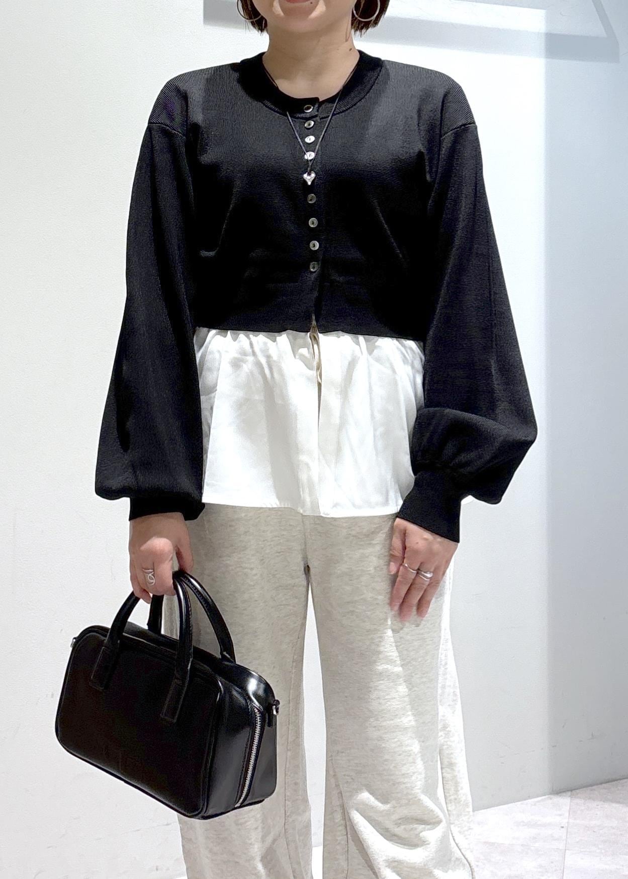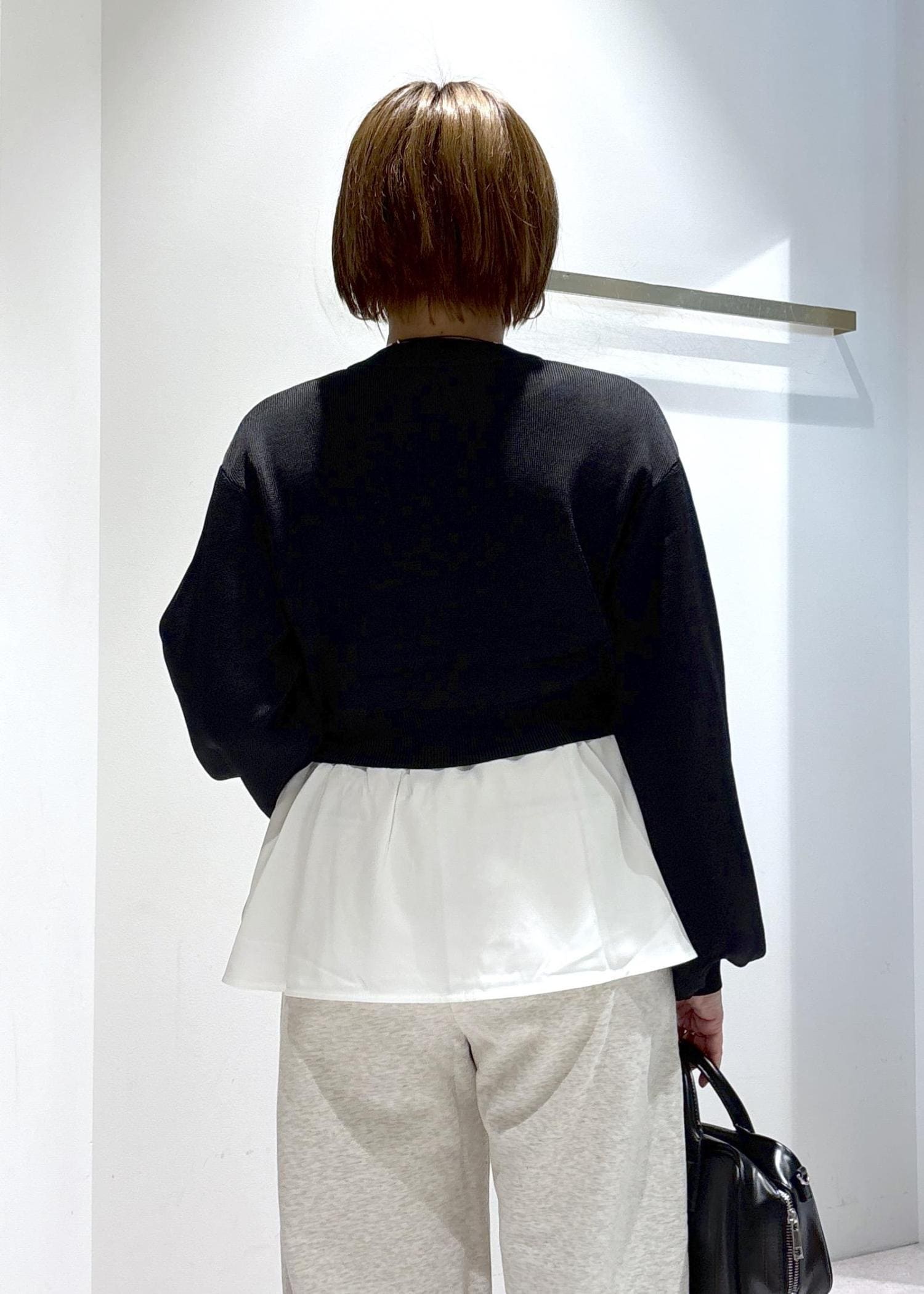 ADAM ET ROPÉ FEMME【サステナブル】フレアヘムシャツコンビカーディガンブラック / F¥11,220レビュー▼サイズ感