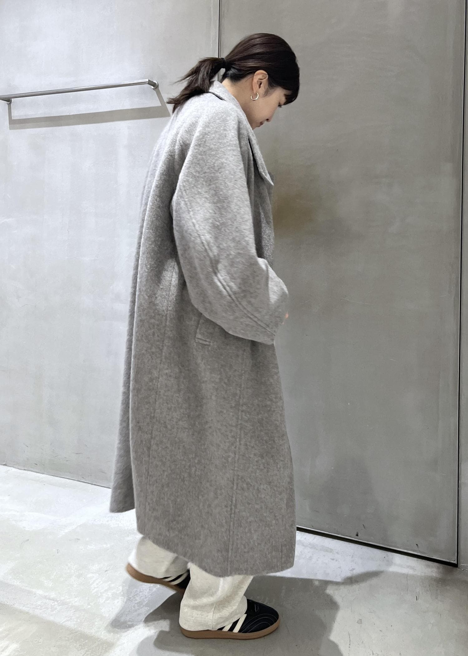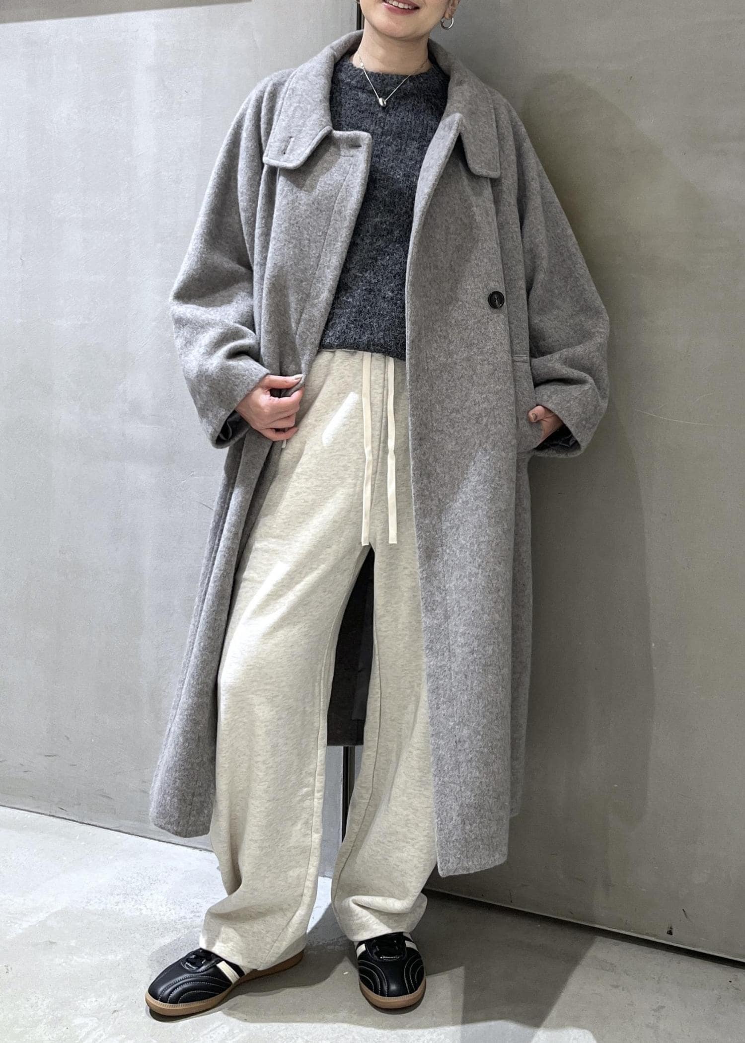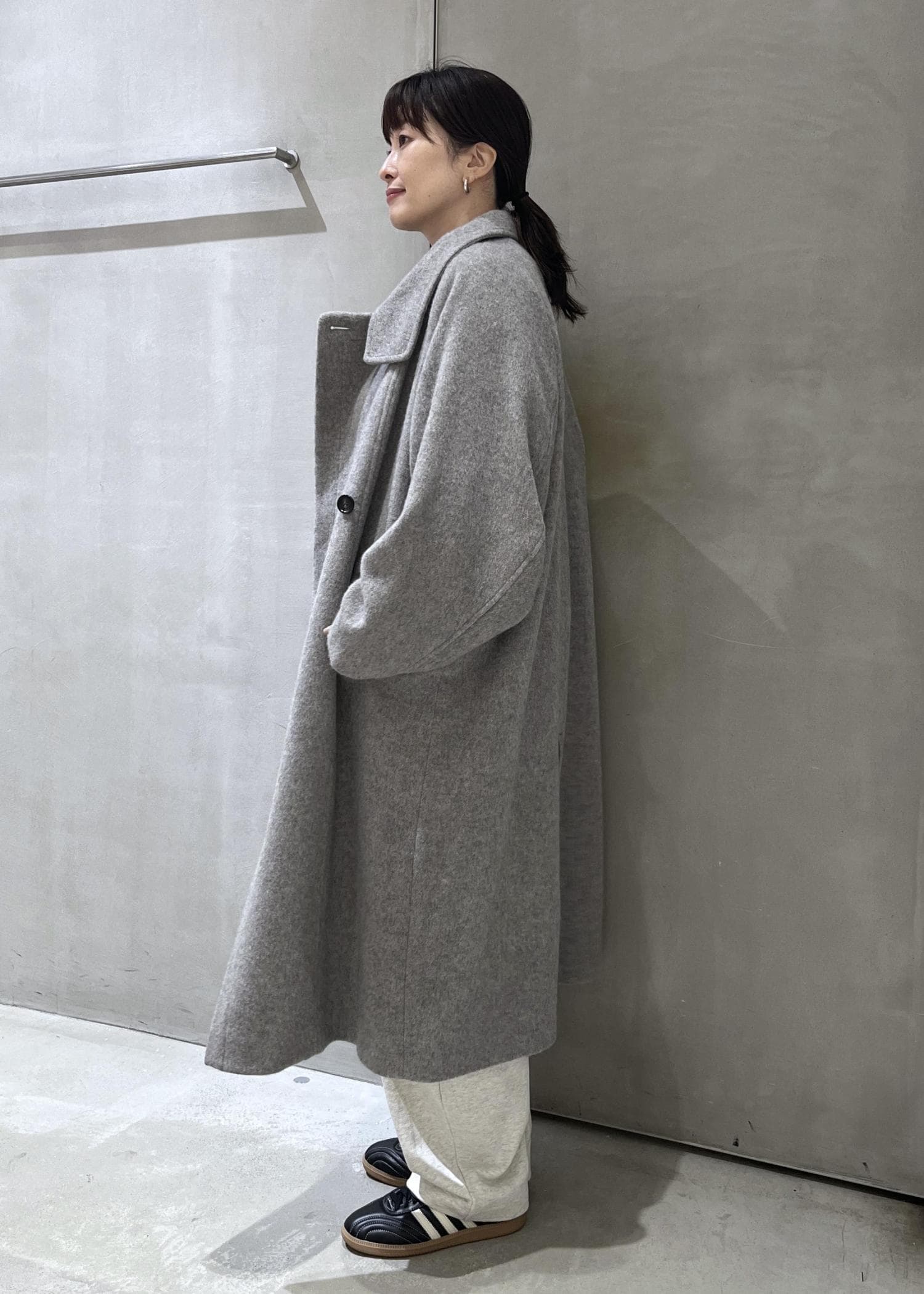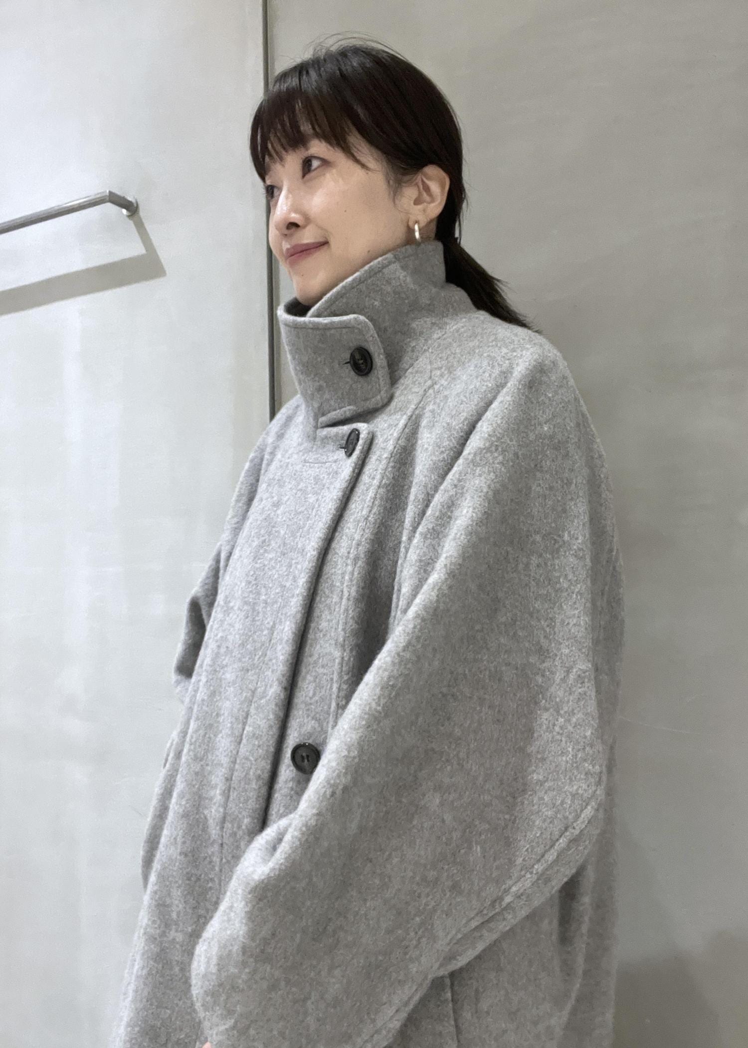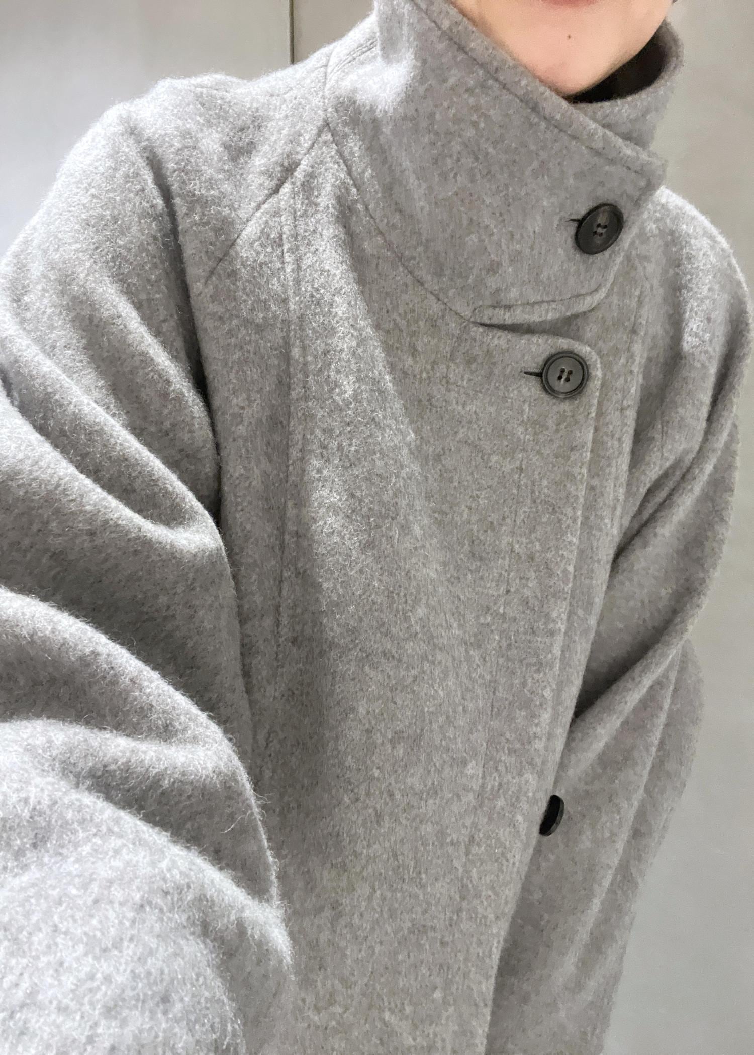 LE CERCLE par ropé尾州スタンドカラーロングコートグレー / F¥38,500レビュー繊維の産地、尾州の生地を使用したロングコート。ふんわりとした微起毛(シャギー)素材で、とにかく軽い!ロングコートとは思えない軽さで、ゆったりめの着用感なので、ストレスフリーな着心地です。スタンドカラーですが、袖のラインが丸みがあってスタイリッシュ過ぎないデザインも○です。