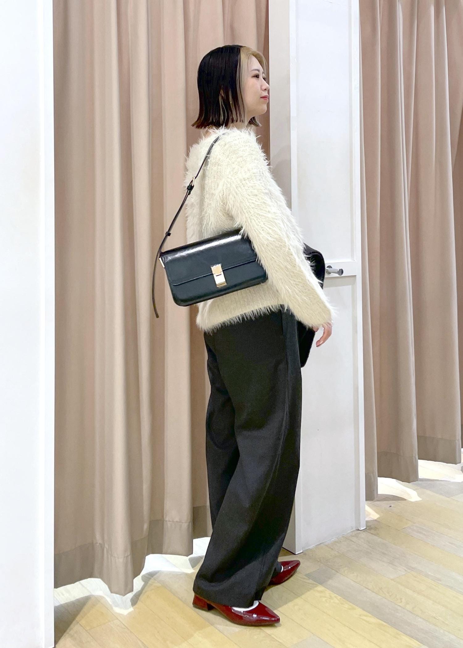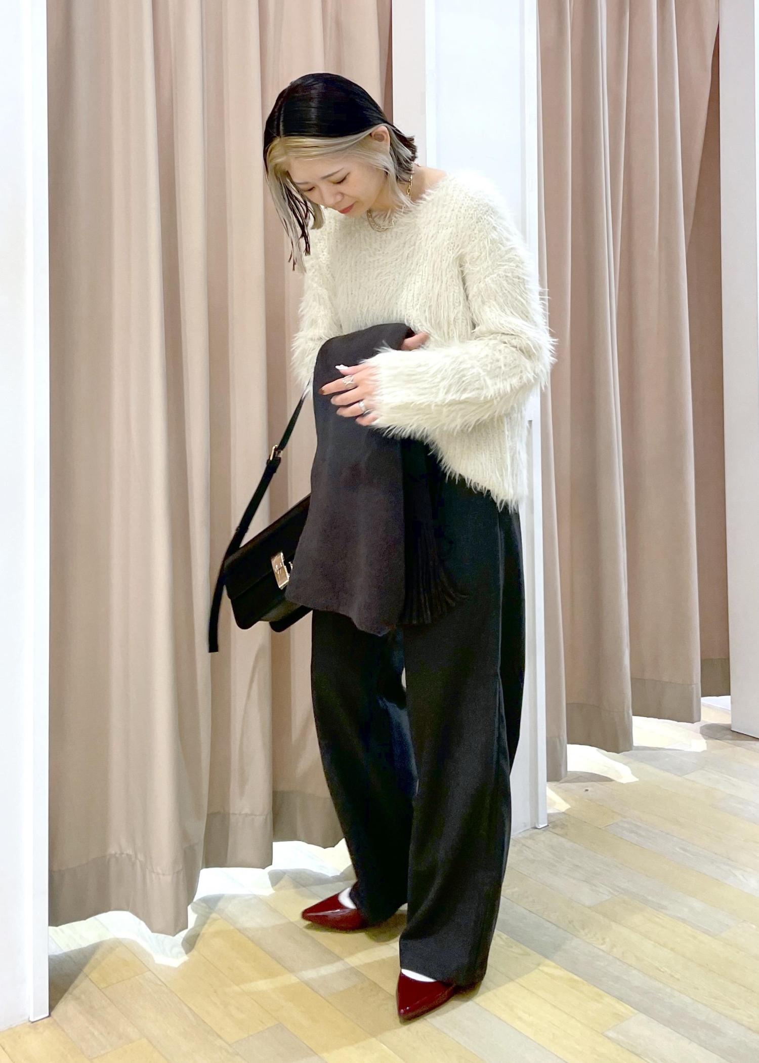 存在感のあるシャギーニットに、ワイドパンツを合わせた大人なコーデです。