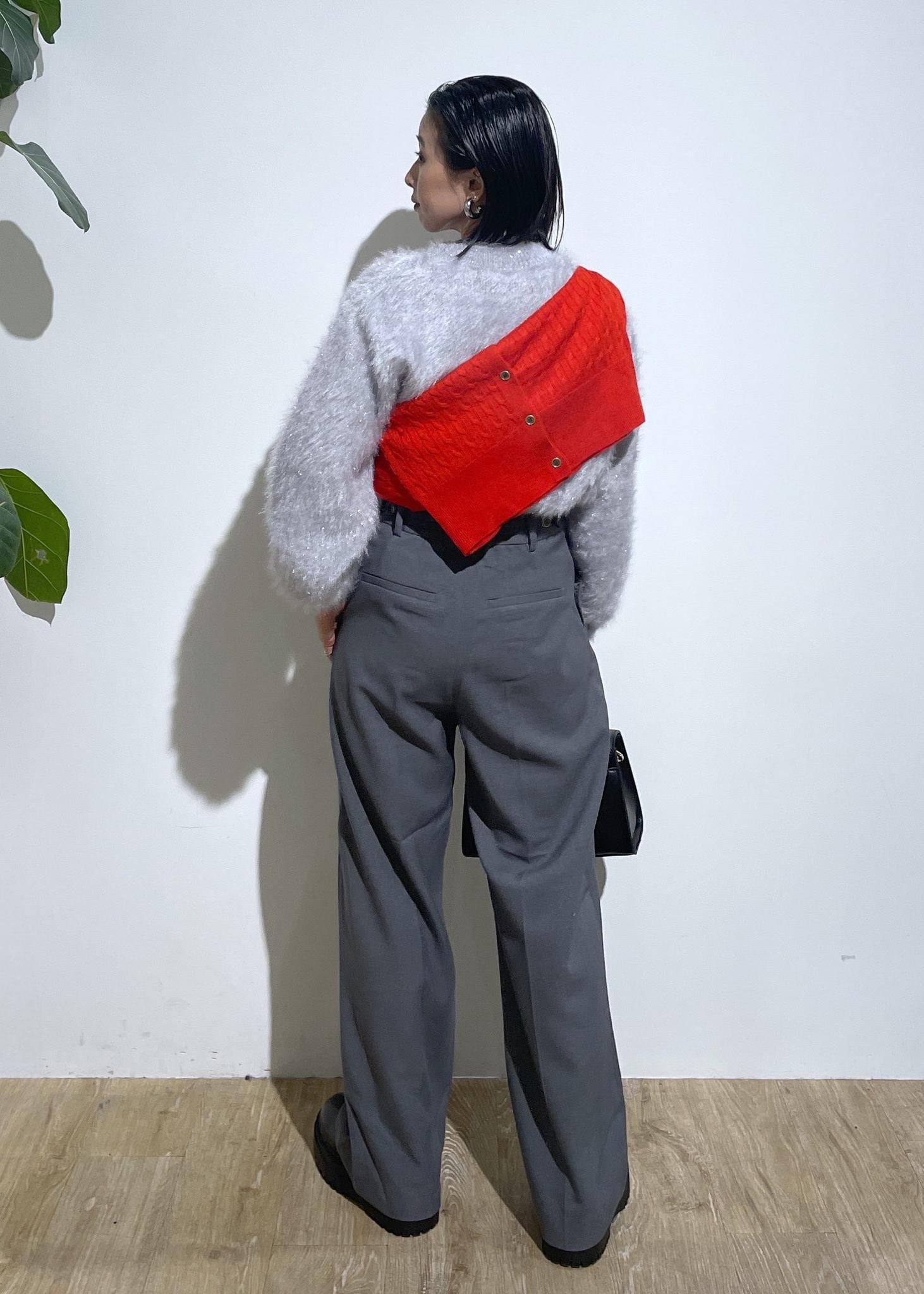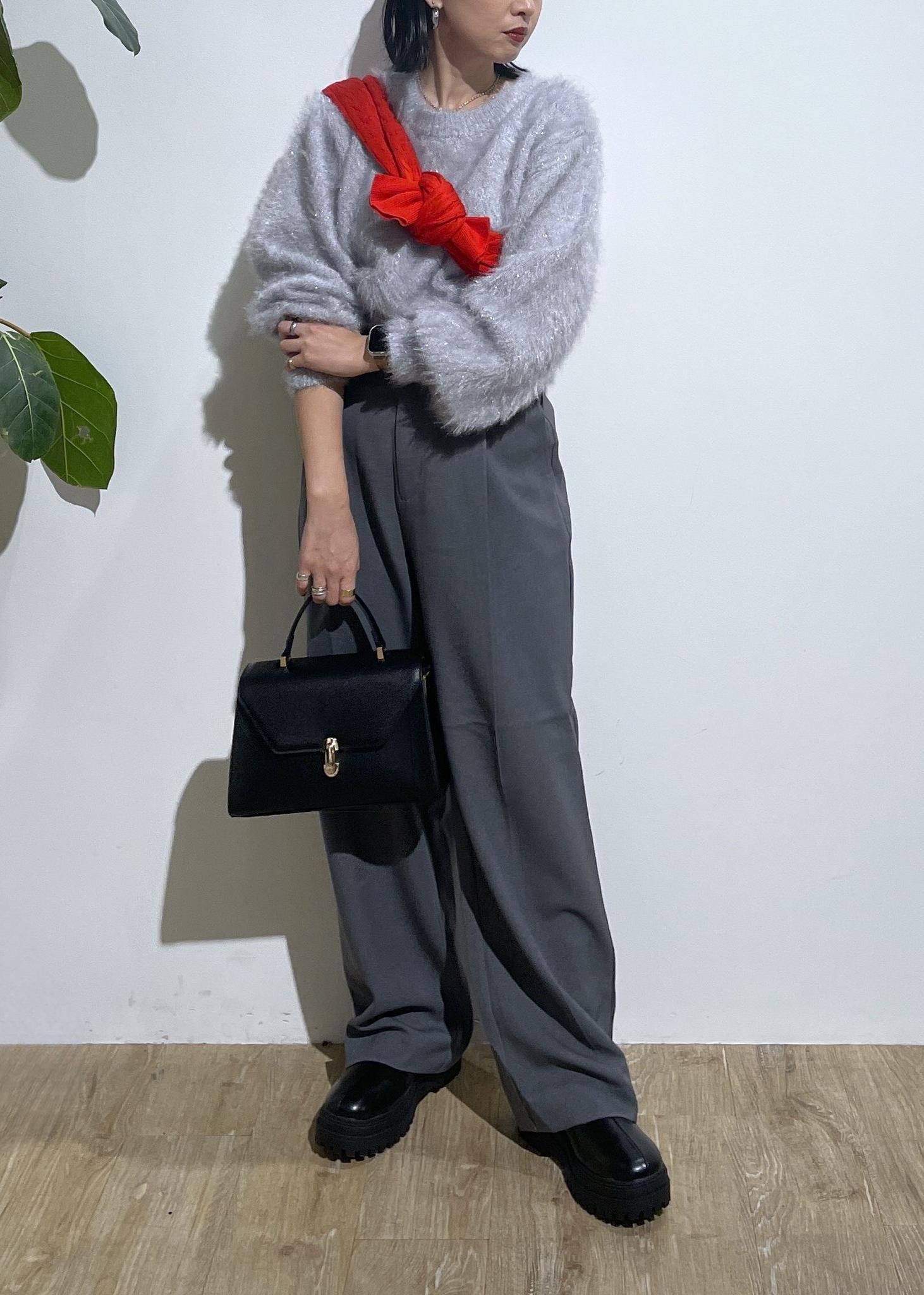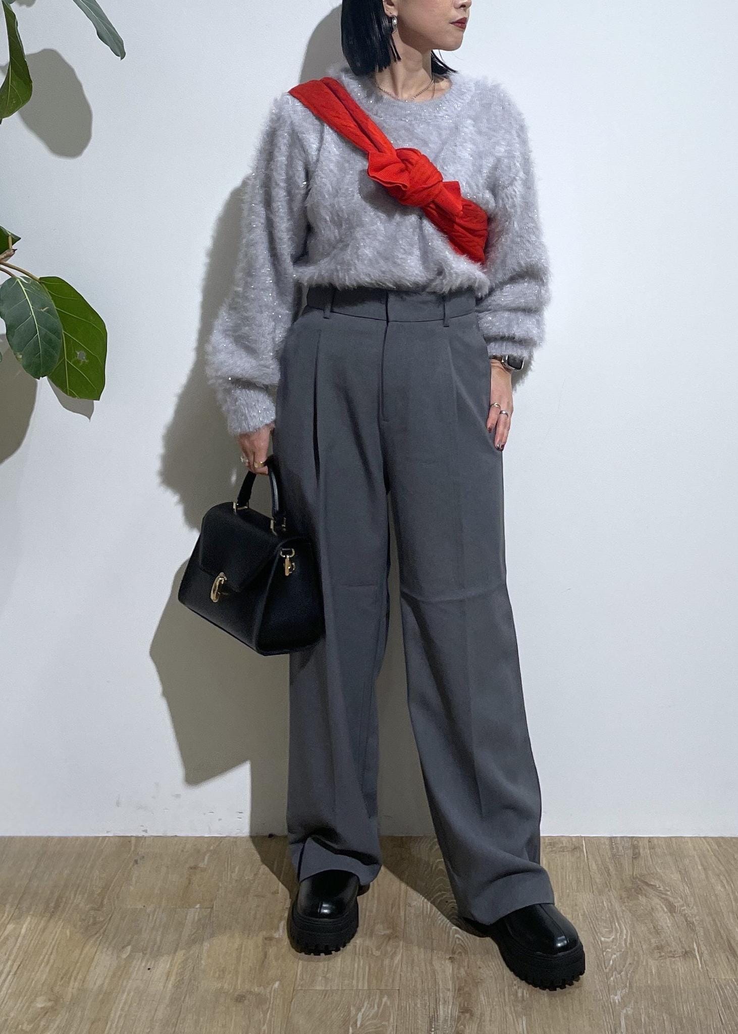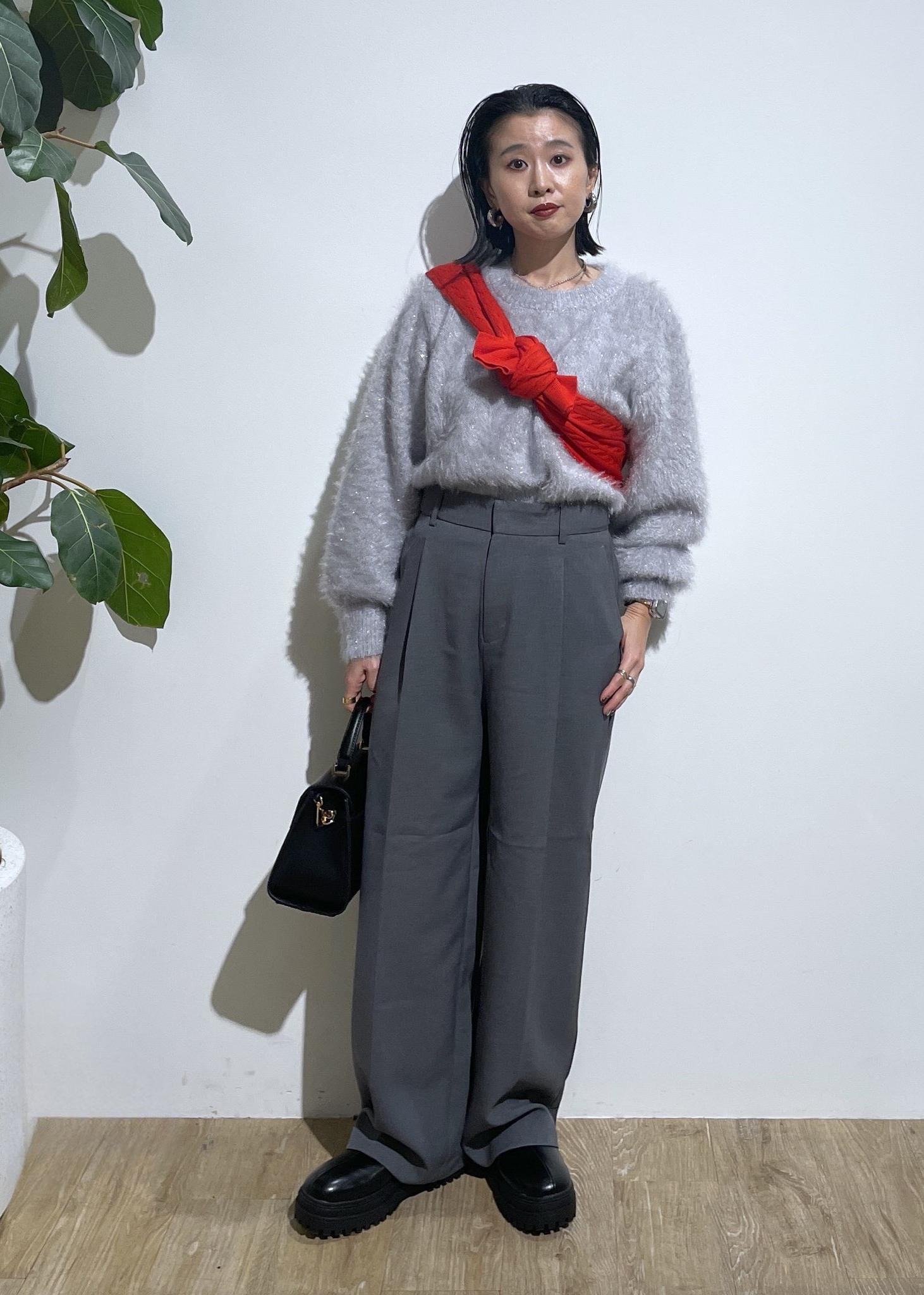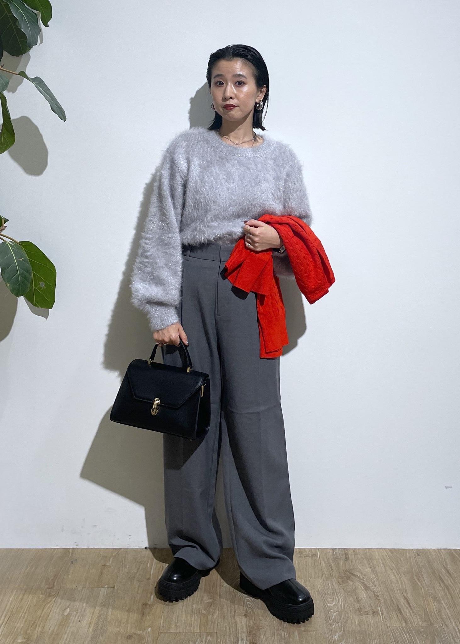 パンツ、スカートどちらでも合わせやすく足が細見えします。 -