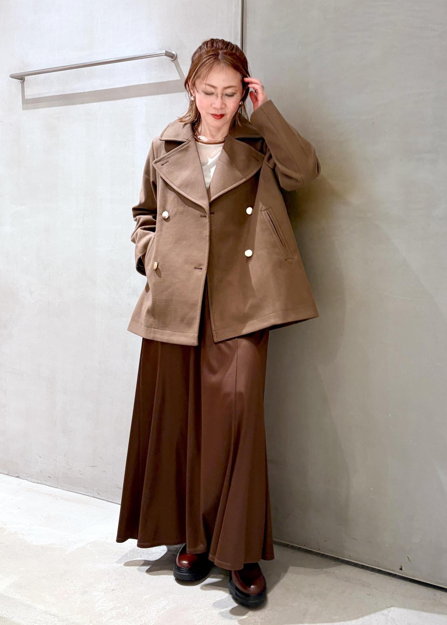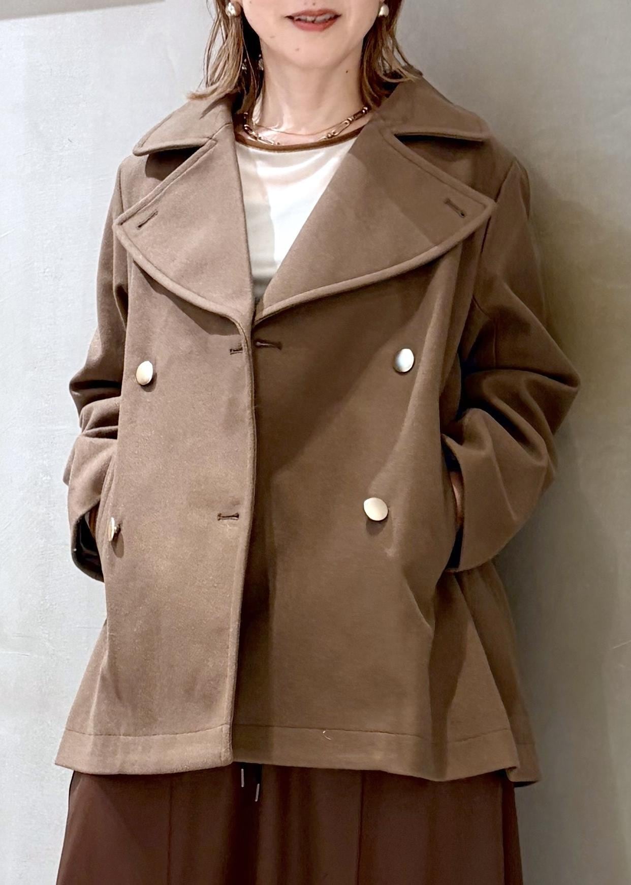 LE CERCLE par ropéウールライクダブルテーラードミドル丈コートキャメル / F¥10,010レビュー毛羽立ちの少ない生地で、軽い作りです。メタルボタンがポイントで、華やかな印象。
